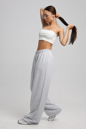 Вам точно понравятся наши спортивные штаны, если Вы ищете удобную и стильную одежду для занятий спортом, танцами или просто для повседневного ношения. Изготовленные из трикотажного материала, они легкие и приятные на ощупь, что делает их идеальными. Благодаря такому составу они прекрасно держат форму, не скатываются и не теряют цвет после стирки. Джоггеры с высокой посадкой и резинкой на поясе обеспечивают максимальный комфорт и свободу движений, что делает их отличным выбором для тренировок или просто для отдыха дома. Брюки имеют свободный крой и кулиску внизу штанин, что добавляет им современный оверсайз стиль. Они отлично подходят как для взрослых женщин, так и для девушек-подростков высокого и невысокого роста. Эти популярные и трендовые спортивки станут отличным выбором для школьной физкультуры, занятий в спортзале или прогулок на свежем воздухе. Они отлично впишутся в ваш гардероб и помогут создать крутой и красивый образ под любое настроение - от походов в зал до занятий хип-хопом, фитнесом или йогой.