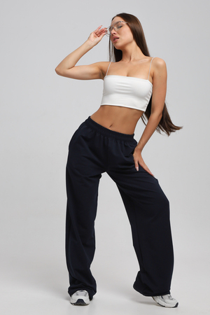 Вам точно понравятся наши спортивные штаны, если Вы ищете удобную и стильную одежду для занятий спортом, танцами или просто для повседневного ношения. Изготовленные из трикотажного материала, они легкие и приятные на ощупь, что делает их идеальными. Благодаря такому составу они прекрасно держат форму, не скатываются и не теряют цвет после стирки. Джоггеры с высокой посадкой и резинкой на поясе обеспечивают максимальный комфорт и свободу движений, что делает их отличным выбором для тренировок или просто для отдыха дома. Брюки имеют свободный крой и кулиску внизу штанин, что добавляет им современный оверсайз стиль. Они отлично подходят как для взрослых женщин, так и для девушек-подростков высокого и невысокого роста. Эти популярные и трендовые спортивки станут отличным выбором для школьной физкультуры, занятий в спортзале или прогулок на свежем воздухе. Они отлично впишутся в ваш гардероб и помогут создать крутой и красивый образ под любое настроение - от походов в зал до занятий хип-хопом, фитнесом или йогой.