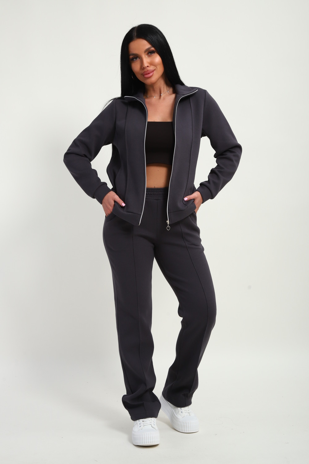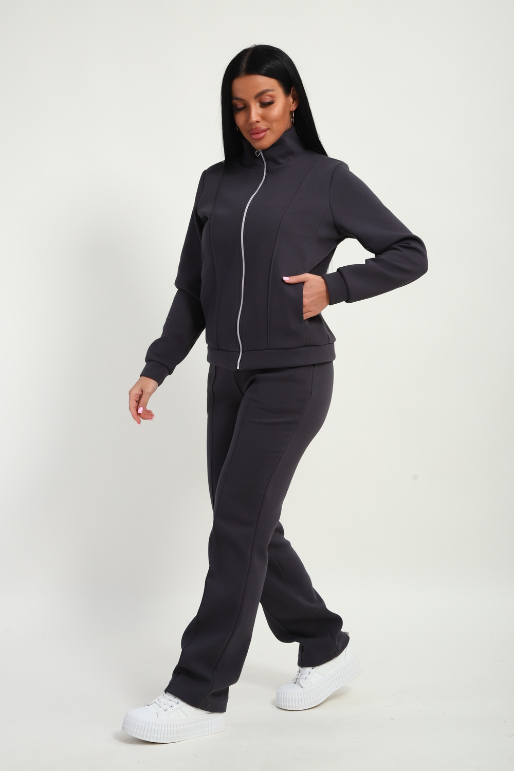 Спортивный костюм женский. Толстовка на молнии с воротником стойка и удобными карманами в рельефе и декоративной стрелкой по передней части толстовки и брюк. А также комфортные брюки на резинке прямого кроя с боковыми карманами отлично дополняют друг друга. Трикотажный костюм, приятный к телу, подарит Вам уют и тепло в прохладную погоду. Актуальные расцветки позволяют не остаться незамеченной. Костюм женский не сковывает движений, сохраняет тепло, удобен в носке и хорошо смотрится с обувью в спортивном стиле. Универсален и практичен, можно носить по отдельности. Костюм имеет большую размерную сетку: с 46р по 60 р. Идеально подойдет для женщин и девушек как домашний костюм, так и для прогулок, тренировок, активного отдыха, для поездок и путешествий, для улицы и дачи.