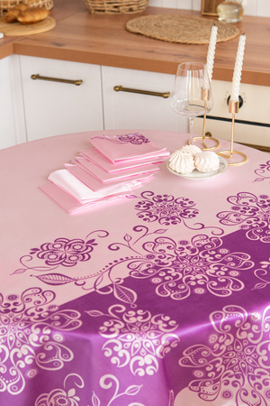Столовые наборы, известные также под названием «столовое белье» делают интерьер по-домашнему уютным, неповторимым и привлекательным. Столовые наборы станут отличным подарком для любой хозяйки, поскольку ни одно по-настоящему торжественное мероприятие не обходится без красивой скатерти и стильных салфеток. Оттенки ткани представлены в двух вариантах: теплый оттенок, холодный оттенок
