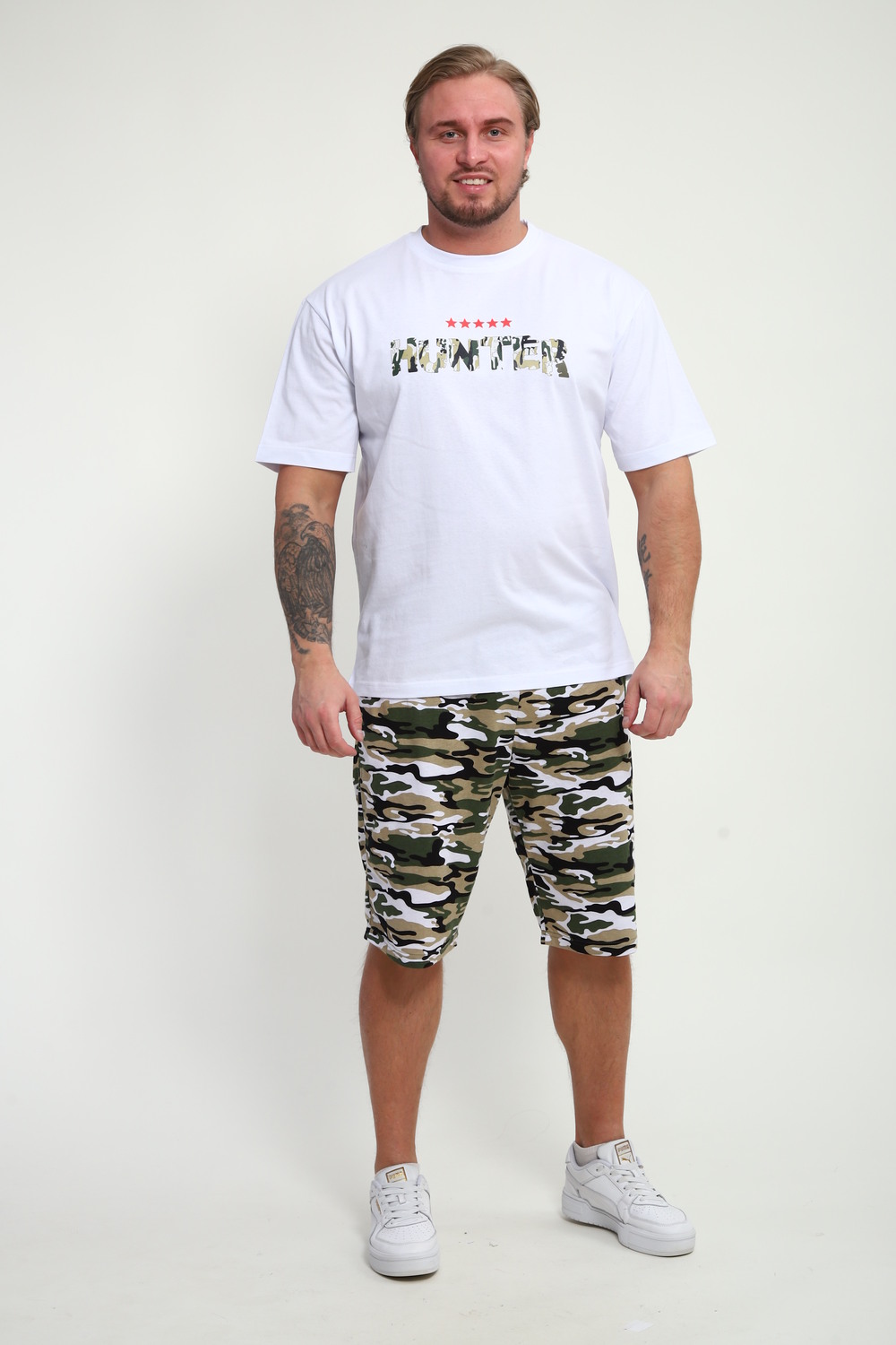 Мужской домашний костюм "Супер стар" от JEXY - это идеальный выбор для мужчин, ценящих комфорт и стиль. Этот стильный спортивный комплект, состоящий из белой футболки с веселым прикольным юморным принтом "Я супер стар" и шорт, сшит из 100% хлопка, что делает его невероятно мягким и приятным к телу. Прямой покрой и средняя посадка обеспечивают свободу движений, а короткие рукава футболки и шорты, идеально подходят для теплой погоды. Яркий принт "Я Супер стар" добавляет домашнему костюму индивидуальности, делая его отличным выбором для повседневной носки весной и летом. Костюм "Я Супер стар" - это отличный подарок для любимых мужчин (сыну, брату, мужу, парню, папе, дедушке, другу) на любой праздник, будь то 23 февраля, День защитника отечества или День всех влюбленных, или День рождения.