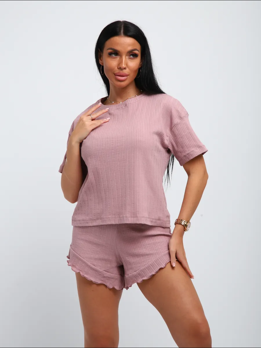 Летний костюм женский с шортами домашний - хит этого сезона. Костюм домашний женский летний выполнен из легкого, тонкого, но прочного трикотажного полотна, в составе которого 95% хлопок. Повседневное изделие включает в себя шорты и футболку. Мягкая хлопковая ткань костюма приятна к телу, позволяет коже дышать, не деформируется и не сковывает движения. Шорты свободные без карманов имеют, широкую резинку, которая не давит на живот, что позволяет чувствовать себя комфортно. Базовая футболочка свободного кроя имеет среднюю длину и короткий рукав. Пижама женская с шортами прямого кроя настолько универсальная, что можно использовать как в качестве домашней одежды, так и для активного отдыха. Благодаря своему фасону костюм подходит дамам всех возрастов. Широкая размерная сетка позволит подобрать модный образ для женщин больших размеров, полных, высоких и невысоких, среднего роста. Порадуй себя, подруг и любимую хорошим подарком на 8 марта! Порадуй себя, бабушку и маму подарком.