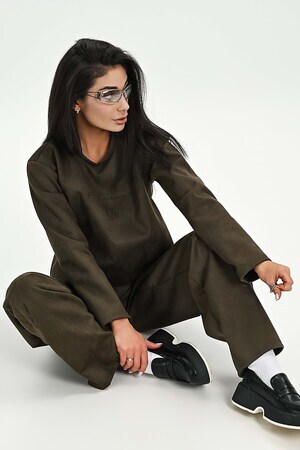 Этот стильный свитшот из искусственной замши станет незаменимой вещью в вашем гардеробе. Благодаря свободному оверсайз покрою он обеспечит максимальный комфорт в течение дня, а мягкая фактура материала подарит приятные тактильные ощущения. Свитшот прекрасно подойдет для повседневной носки, а также станет отличным выбором для будущих мам, благодаря удобному крою, который адаптируется к изменениям фигуры.