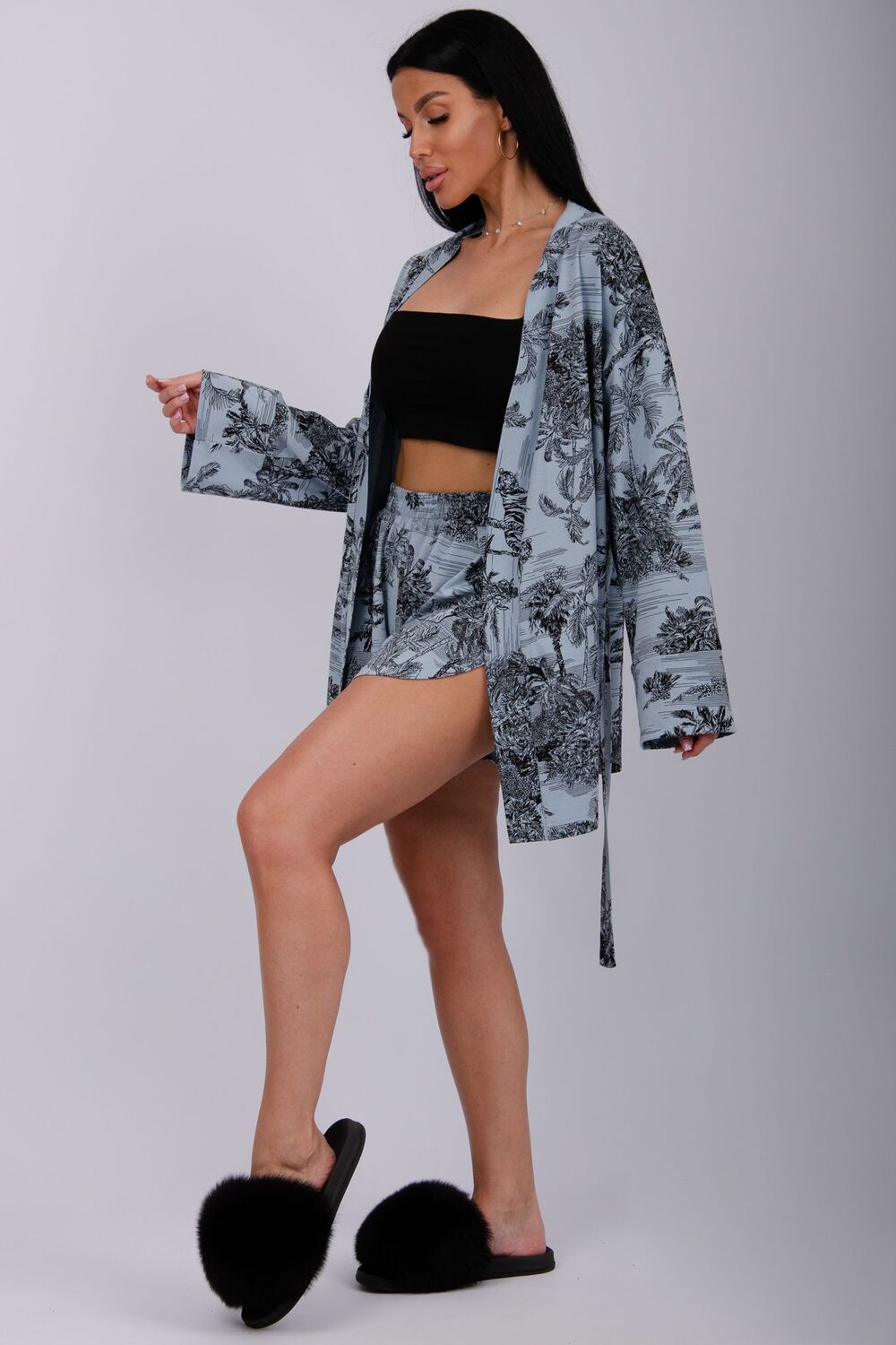 Супер стильный костюм в пижамном стиле - шорты и кимоно халат на поясе для женщин, подойдет для сна и отдыха, подойдет для сна и отдыха и зимой, и летом. А также станет прекрасным акцентом в базовом гардеробе и подойдет для создания расслабленного весеннего оверсайз образа на вечер или пижамную вечеринку. Мягкая приятная к телу струящаяся ткань и свободный силуэт обеспечивает комфорт во время вашего путешествия на море или отдыха. Наш комплект из 2-х предметов подчеркнет женственность и сексуальность.