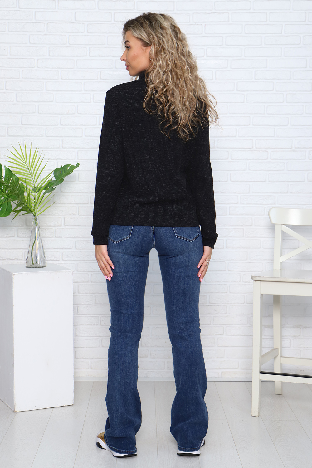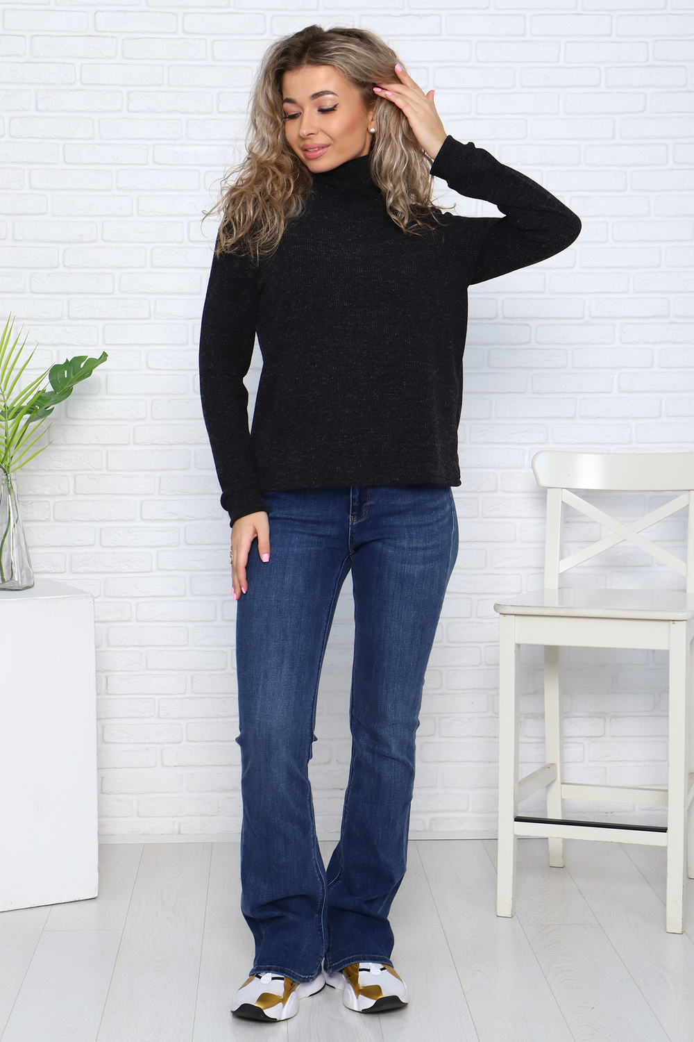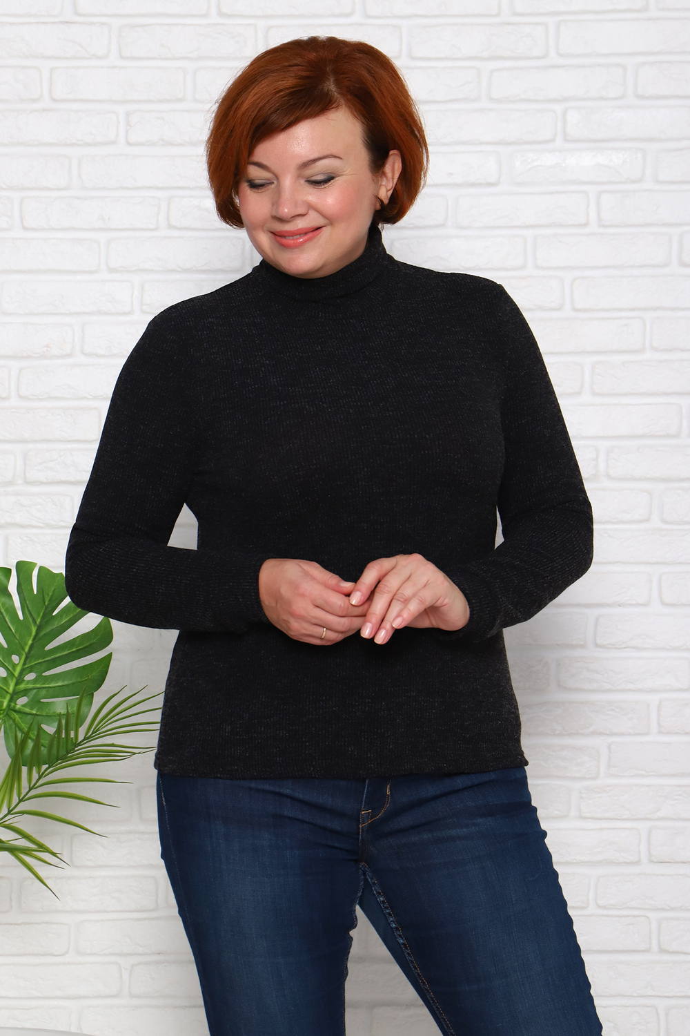 Водолазка женская с втачным длинным рукавом на манжете и высоким воротником — стойка.