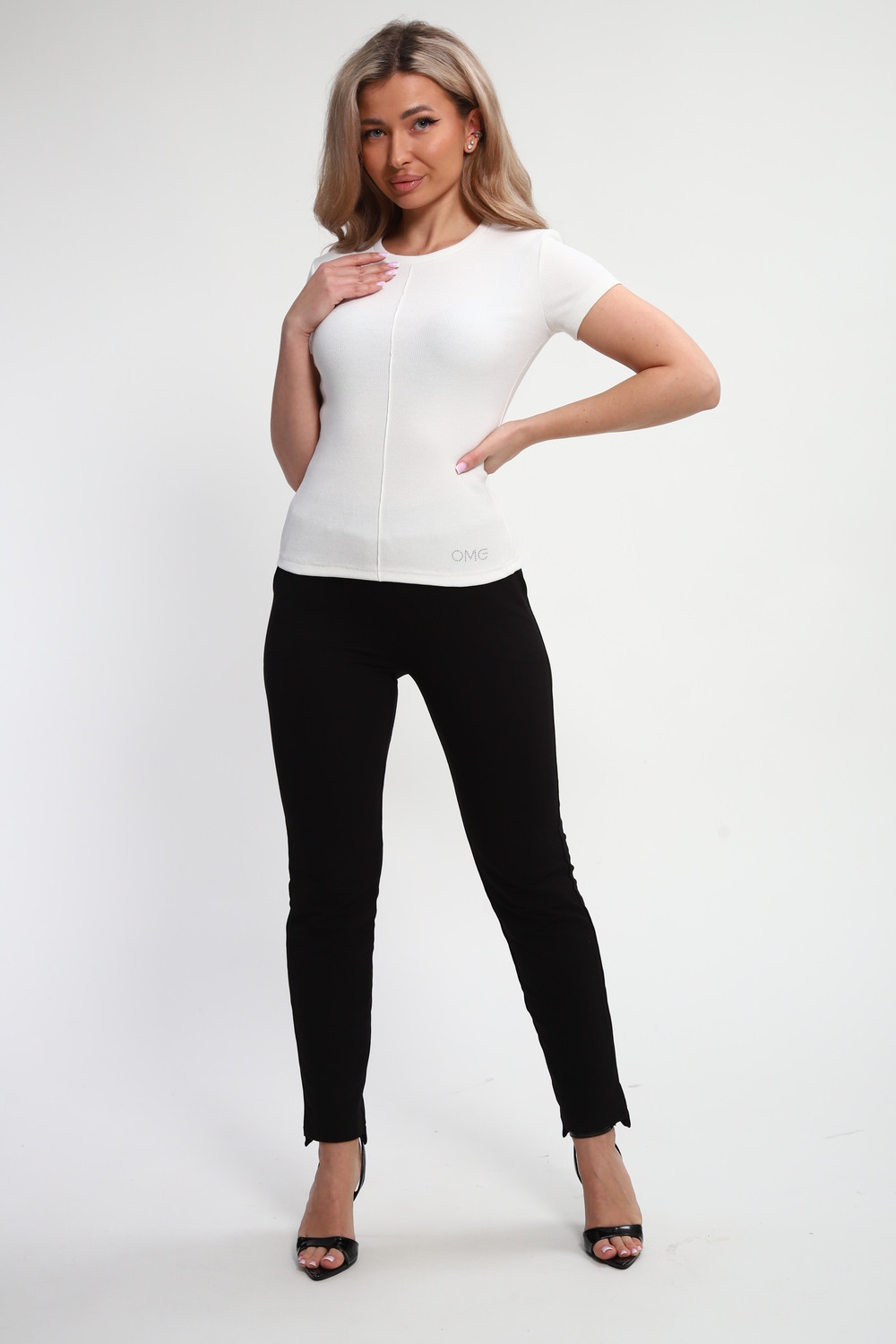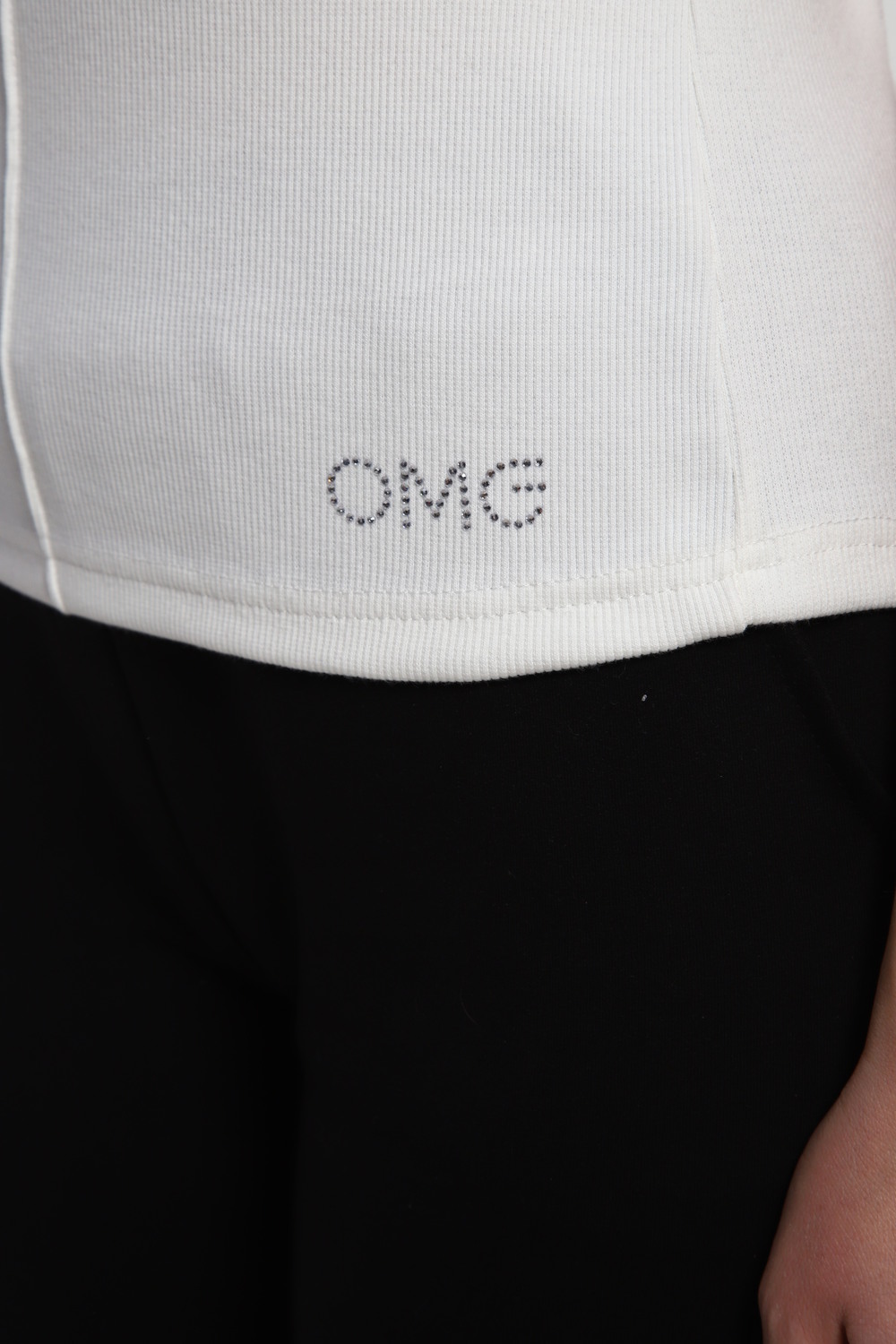 Откройте для себя идеальную вещь для женских образов. Блестящая футболка от нашего бренда OMG. Воплощение современного стиля — стразы эффектно переливается и притягивает взгляды.