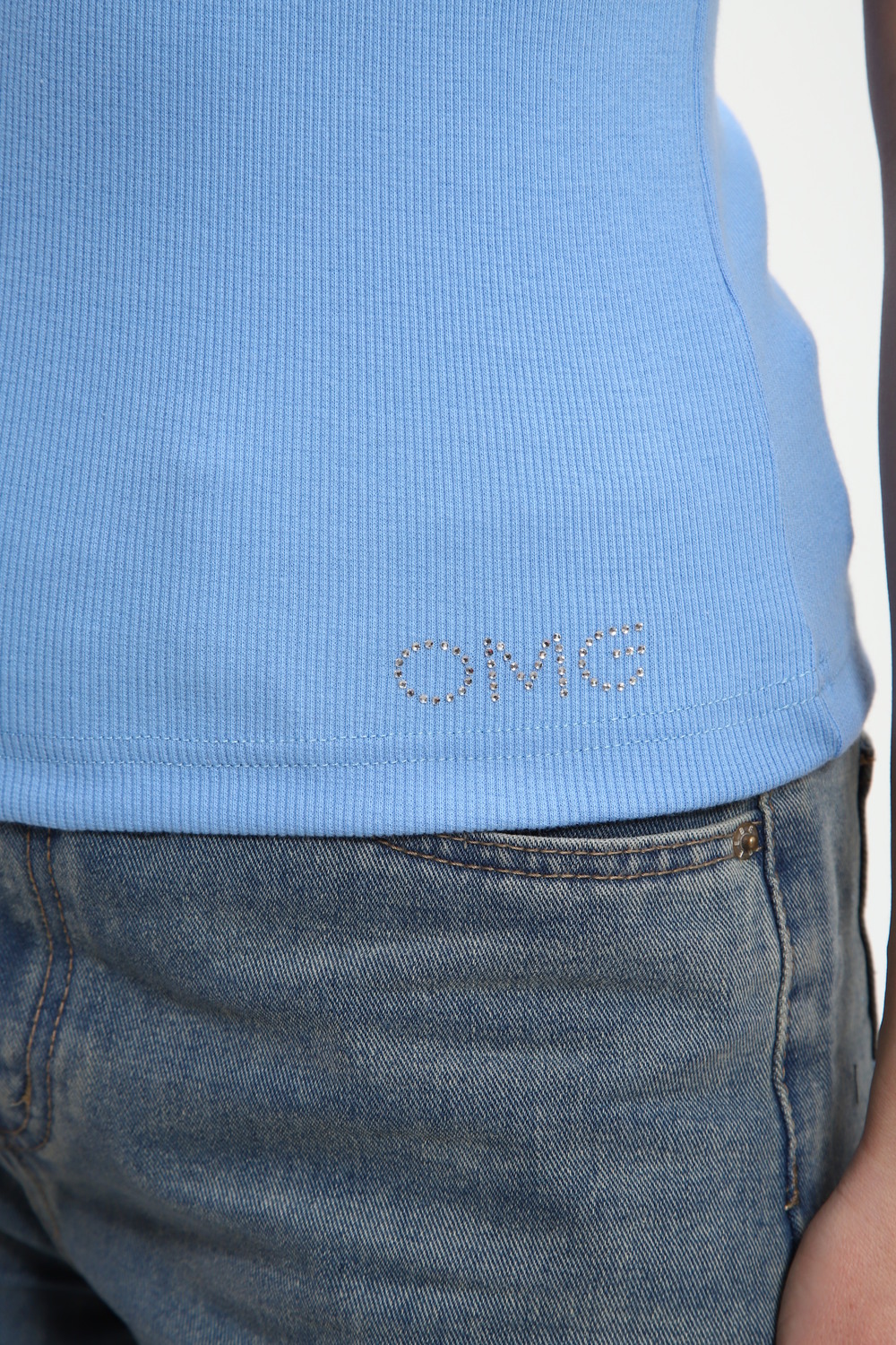 Откройте для себя идеальную вещь для женских образов. Блестящая футболка от нашего бренда OMG. Воплощение современного стиля — стразы эффектно переливается и притягивает взгляды.