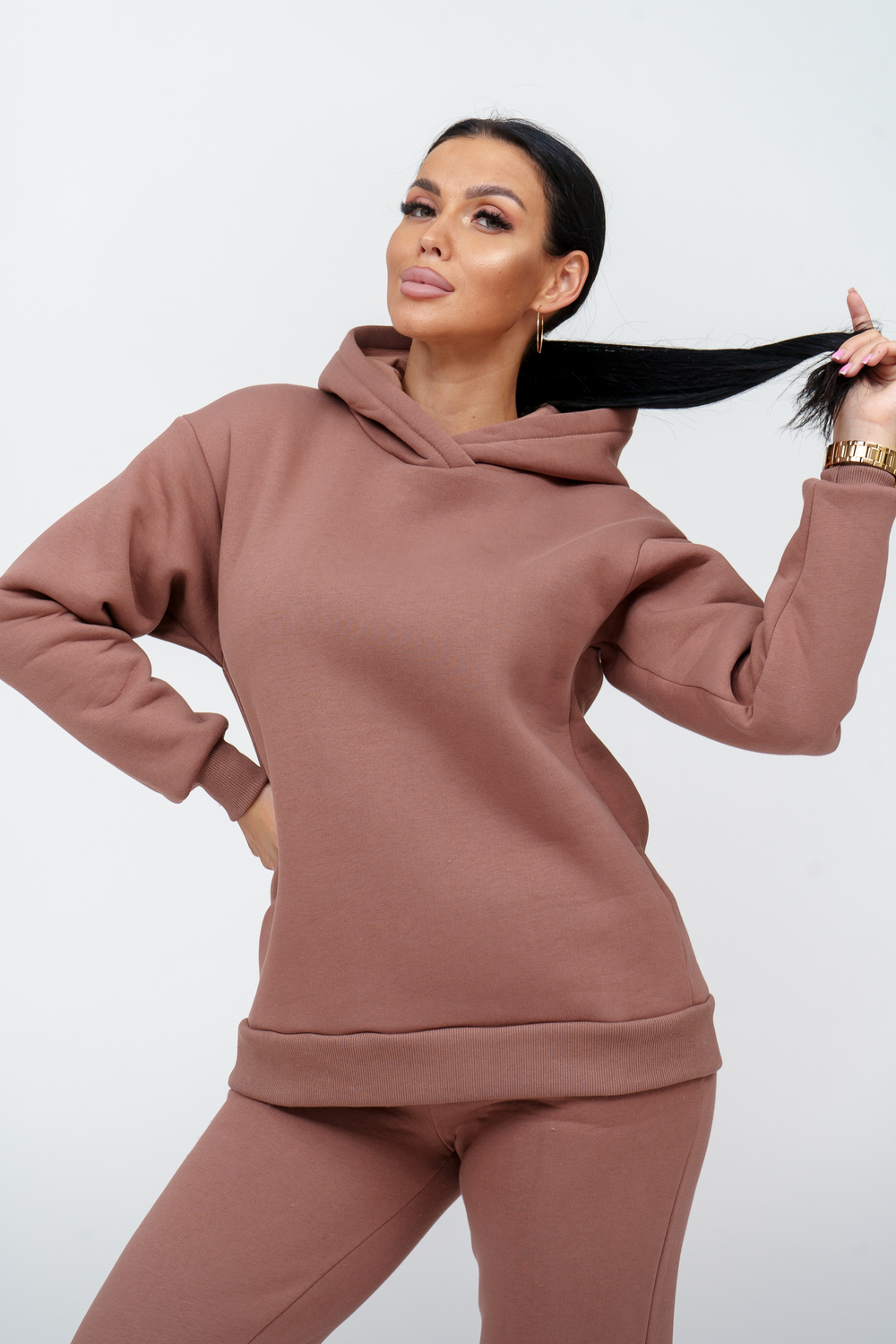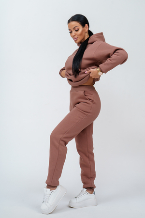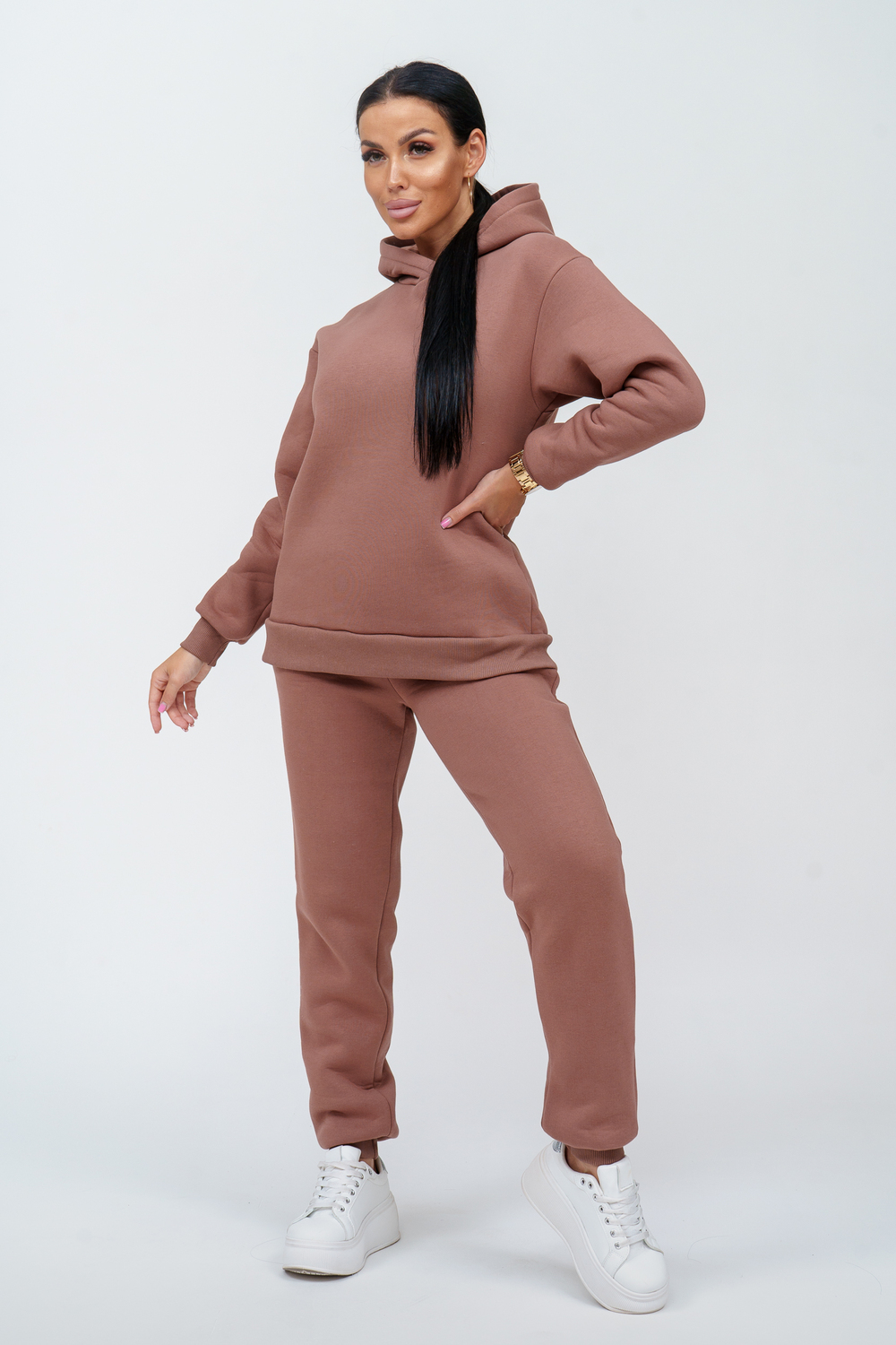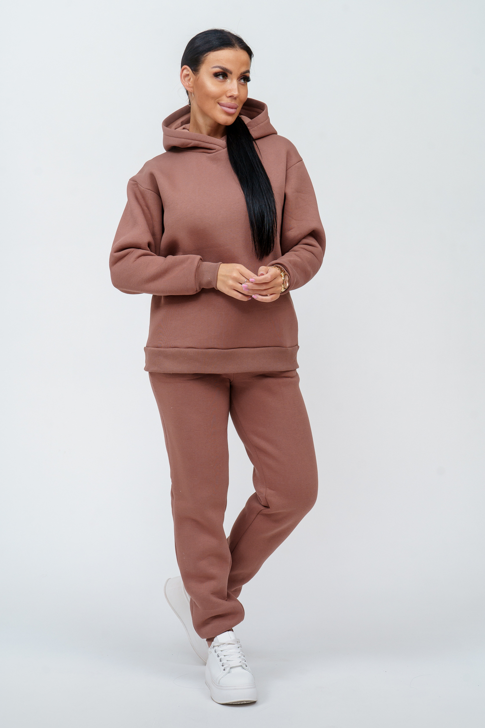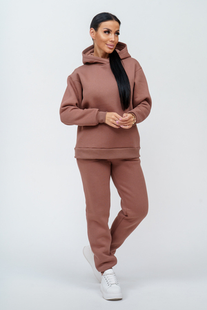 Костюм женский. Куртка со спущенным рукавом на манжете и двойным капюшоном. Брюки на притачном поясе с резинкой, по низу изделия манжета.