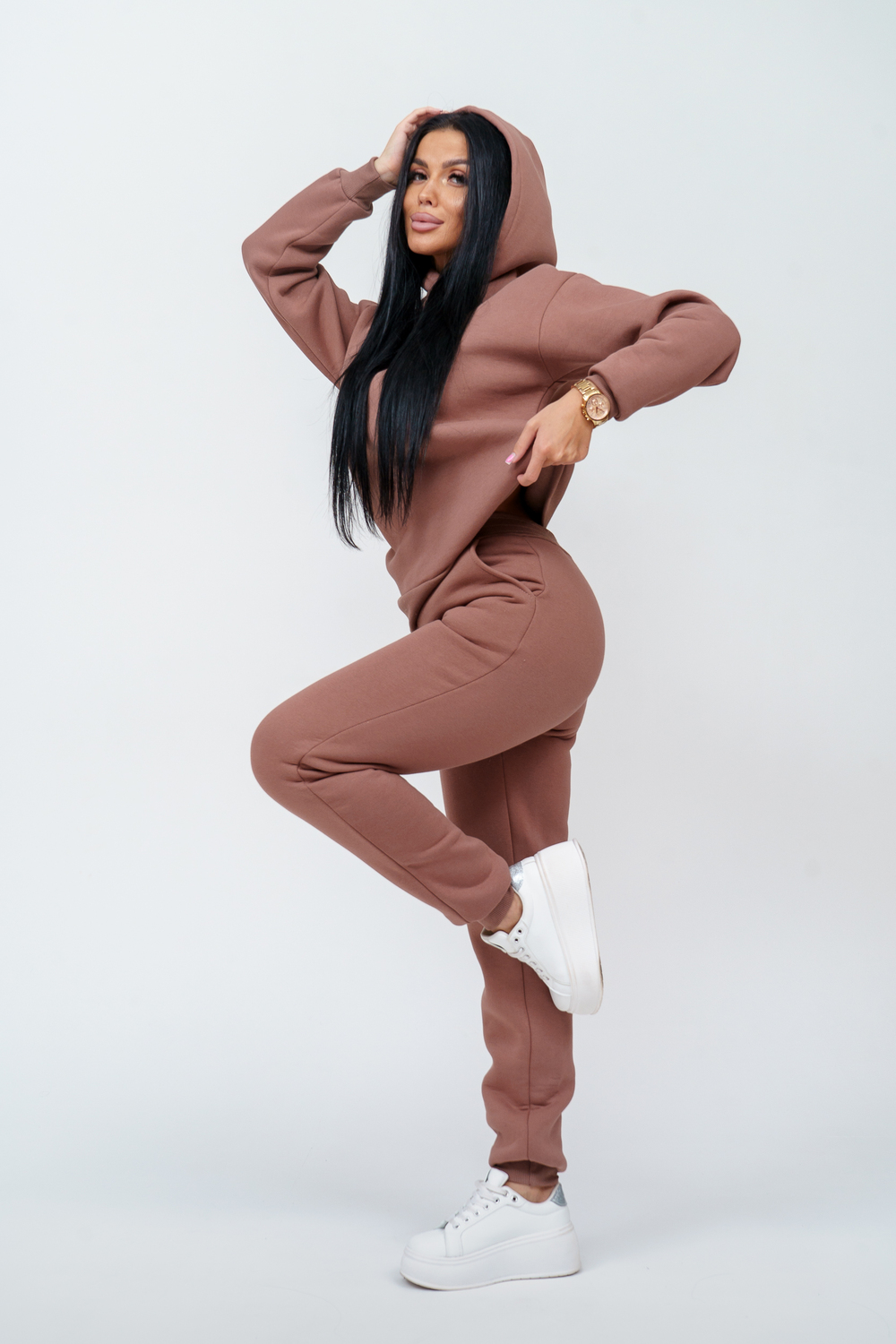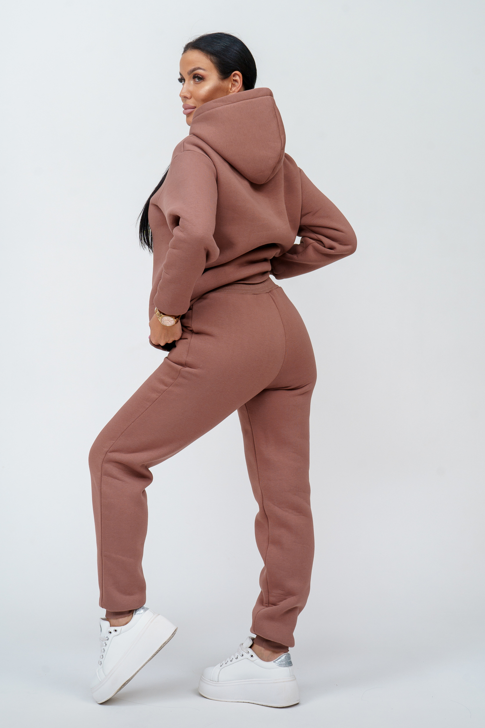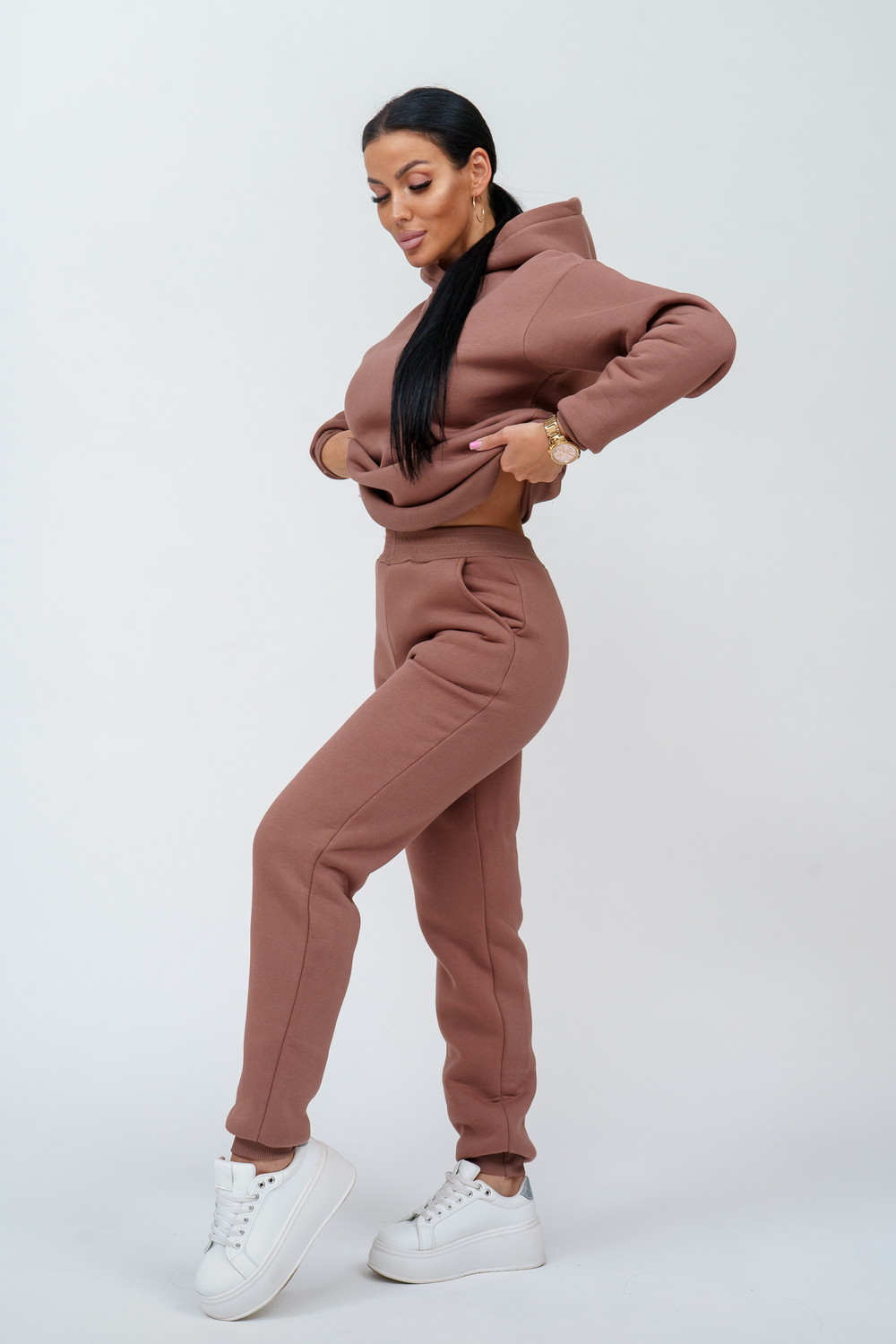 Костюм женский. Куртка со спущенным рукавом на манжете и двойным капюшоном. Брюки на притачном поясе с резинкой, по низу изделия манжета.