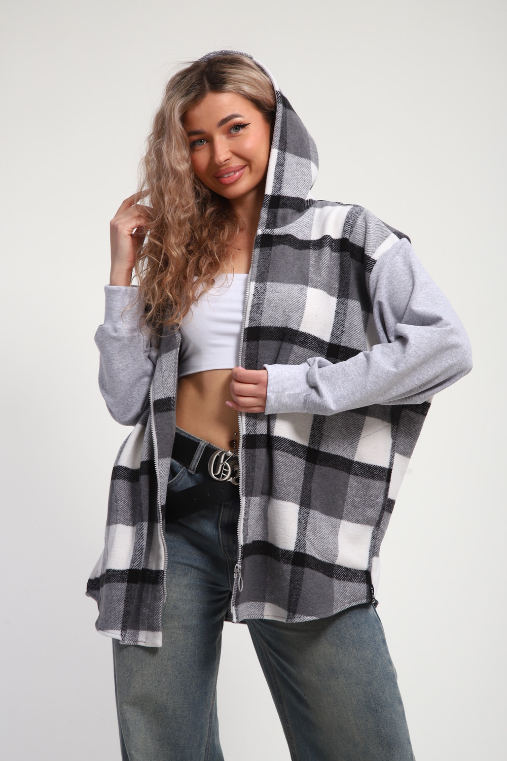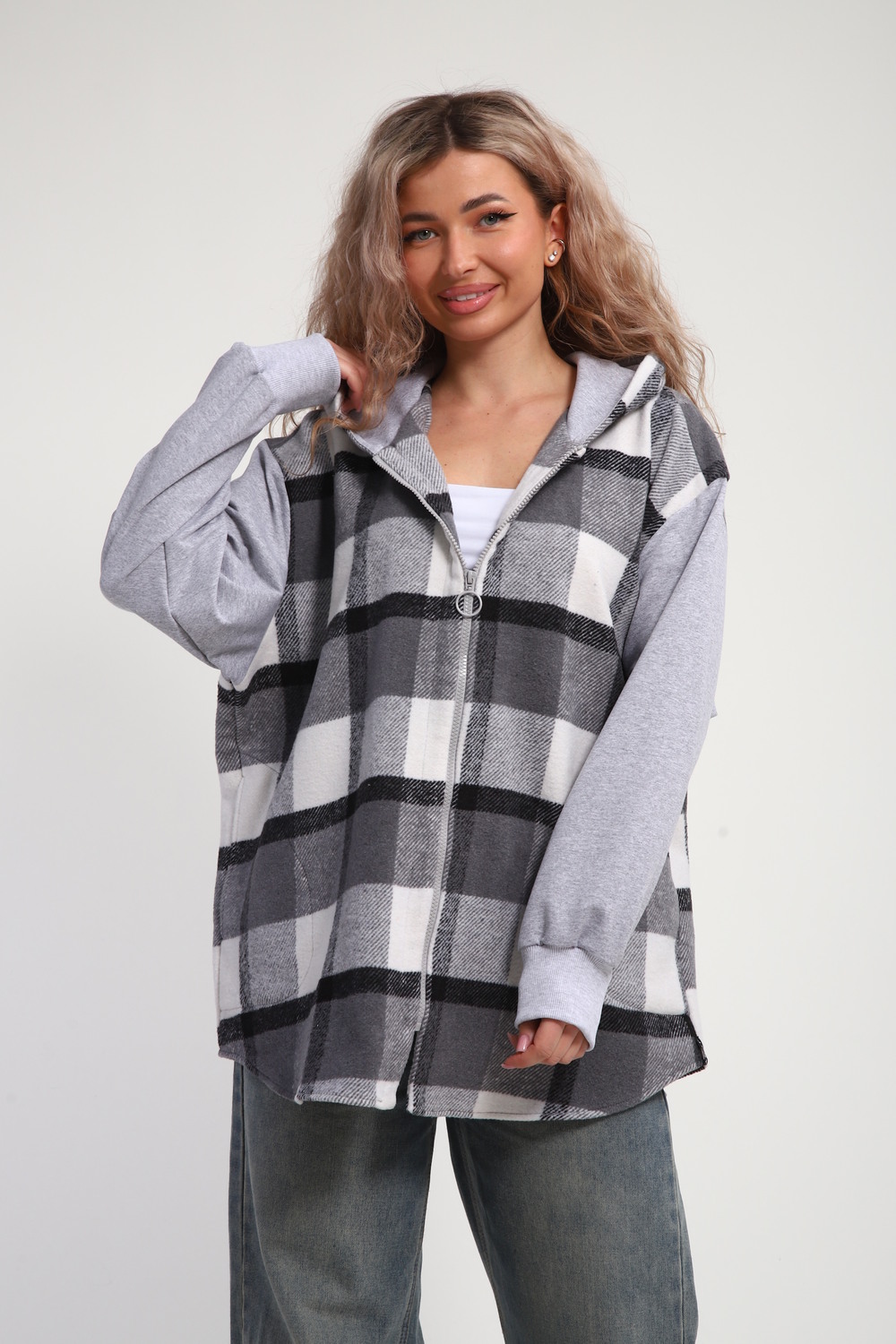 Уникальная модель утепленной рубашки-толстовки на молнии позволит носить её вместо куртки весной и летом. Благодаря своему широкому оверсайз крою она прекрасно подойдет для похода в институт или школу, для беременных и кормящих мам, а также для тех, кто любит свободный и комфортный стиль. Модный принт в клетку добавит нотку оригинальности вашему образу, а капюшон защитит от ветра и холода. Oversize клетчатая рубашка с длинными рукавами и накладными карманами – это практичный и стильный вариант как для офиса, так и для повседневной носки.