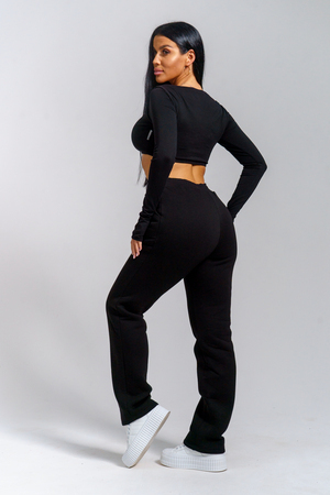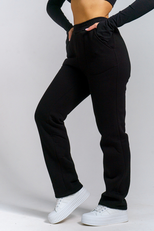 Женские брюки прямого силуэта из футерного полотна с начесом — теплые и удобные для повседневной носки. Модель оснащена практичными карманами и эластичным поясом из кашкорсе, который обеспечивает комфорт и идеальную посадку. Отличный выбор для домашних дел, прогулок и активного отдыха в прохладную погоду. Идеальны для оптовых закупок — высокое качество тканей и пошива по выгодной цене!