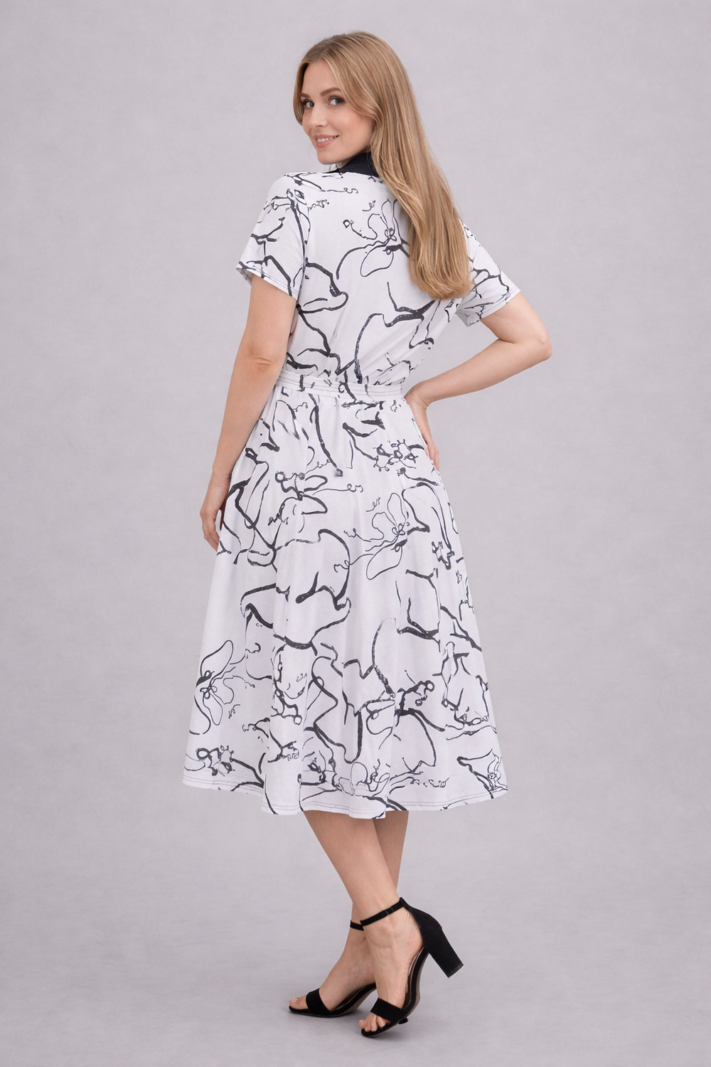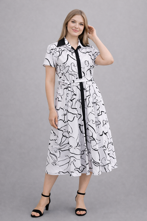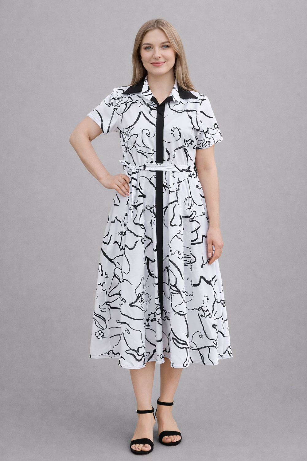 Элегантное платье миди с поясом — идеальный выбор для уверенного и стильного образа. Модель выполнена из мягкой и приятной к телу ткани, которая идеально держит форму и обеспечивает комфорт на весь день. Пояс на талии подчеркивает фигуру и придает силуэту женственность.