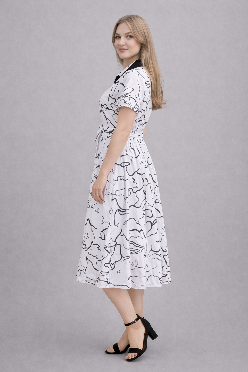 Это платье идеально подходит для офиса, прогулок, деловых встреч или особых случаев. Сочетается с каблуками, балетками или стильными кроссовками для более повседневного образа.