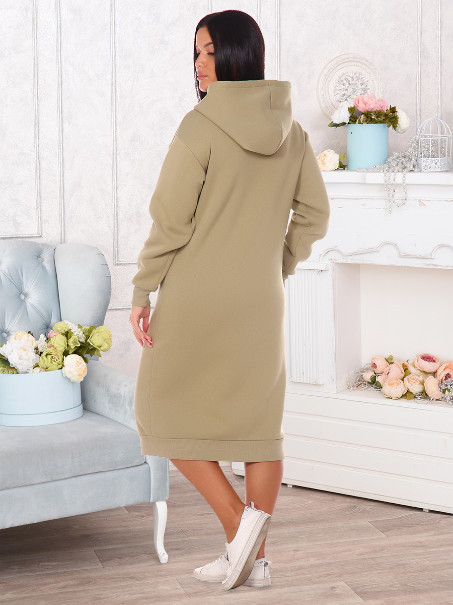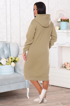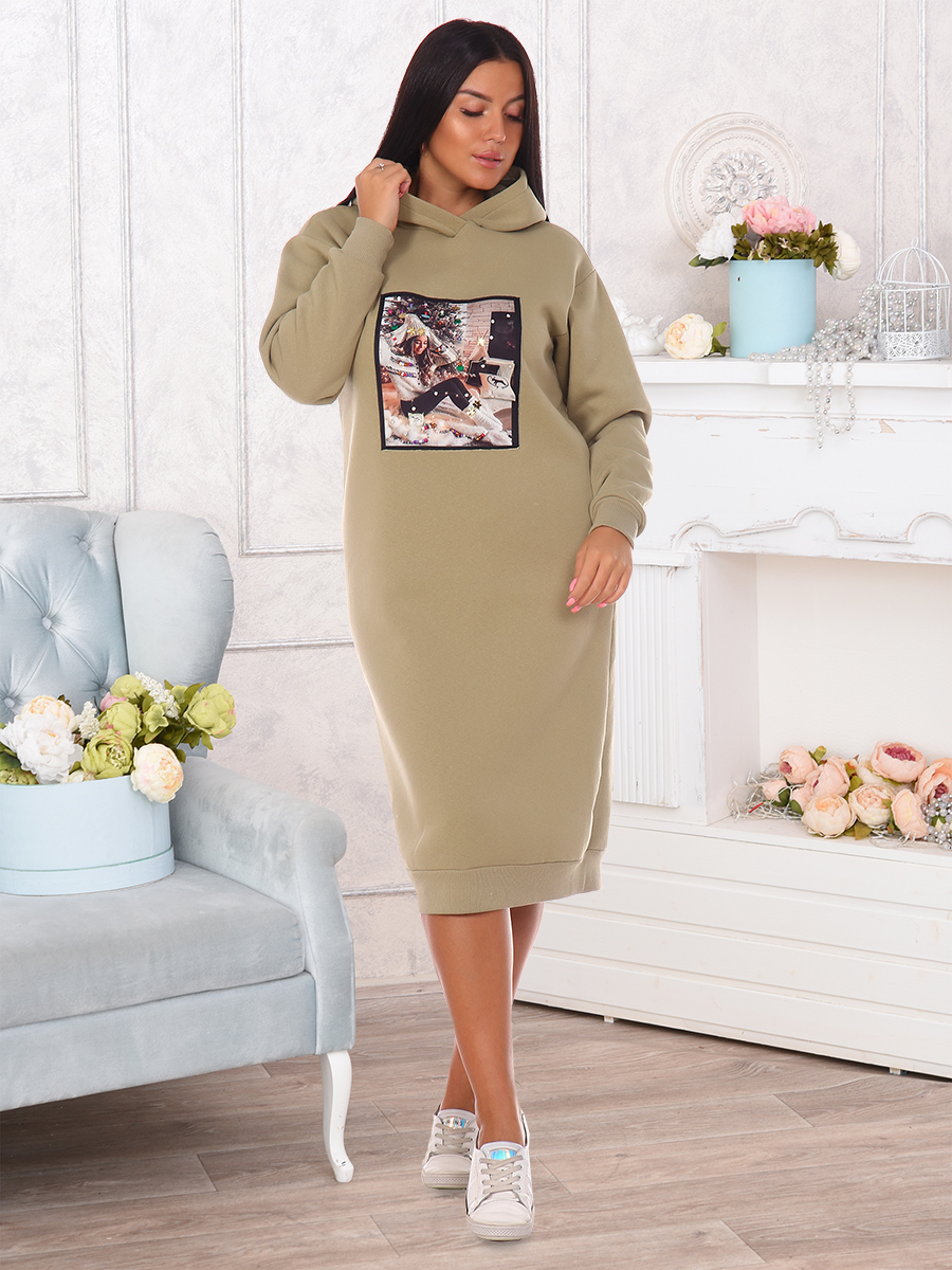 Платье женское утепленное с оригинальной нашивкой в технике 3D с двойным капюшоном. Манжеты и низ выполнены из кашкорсе.