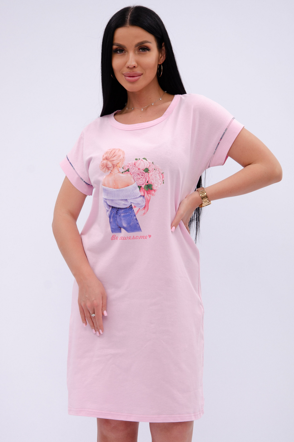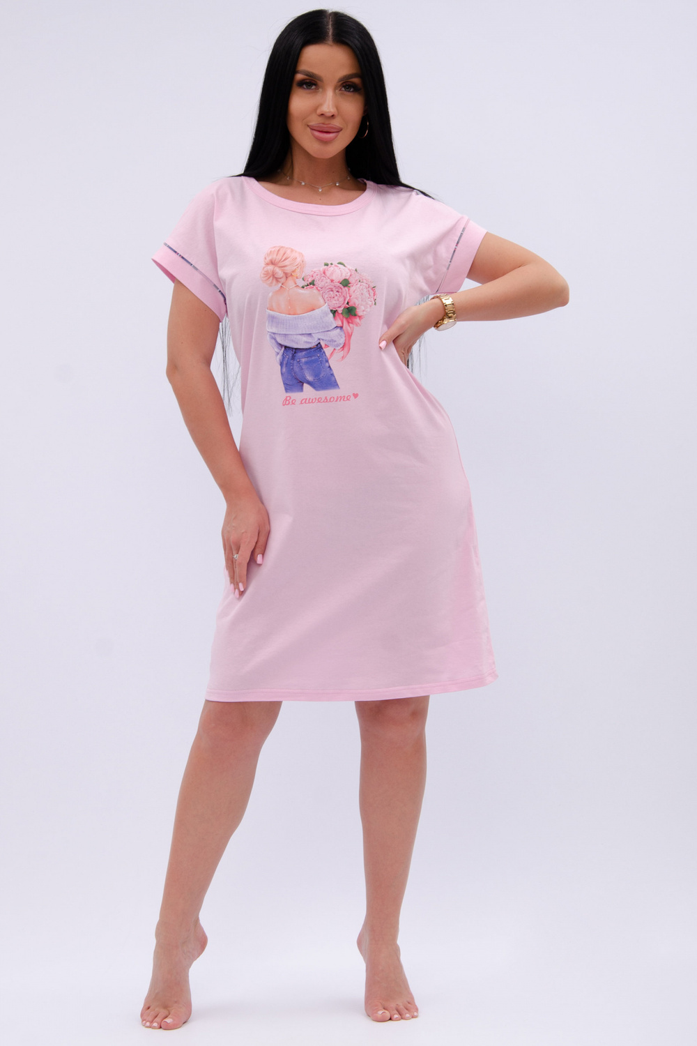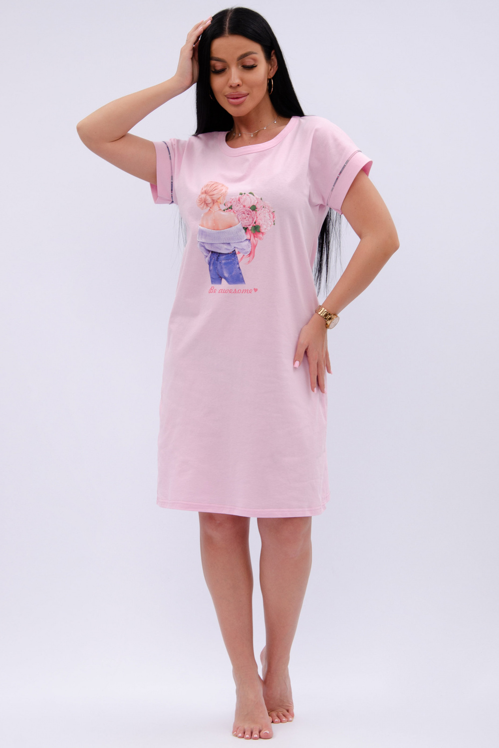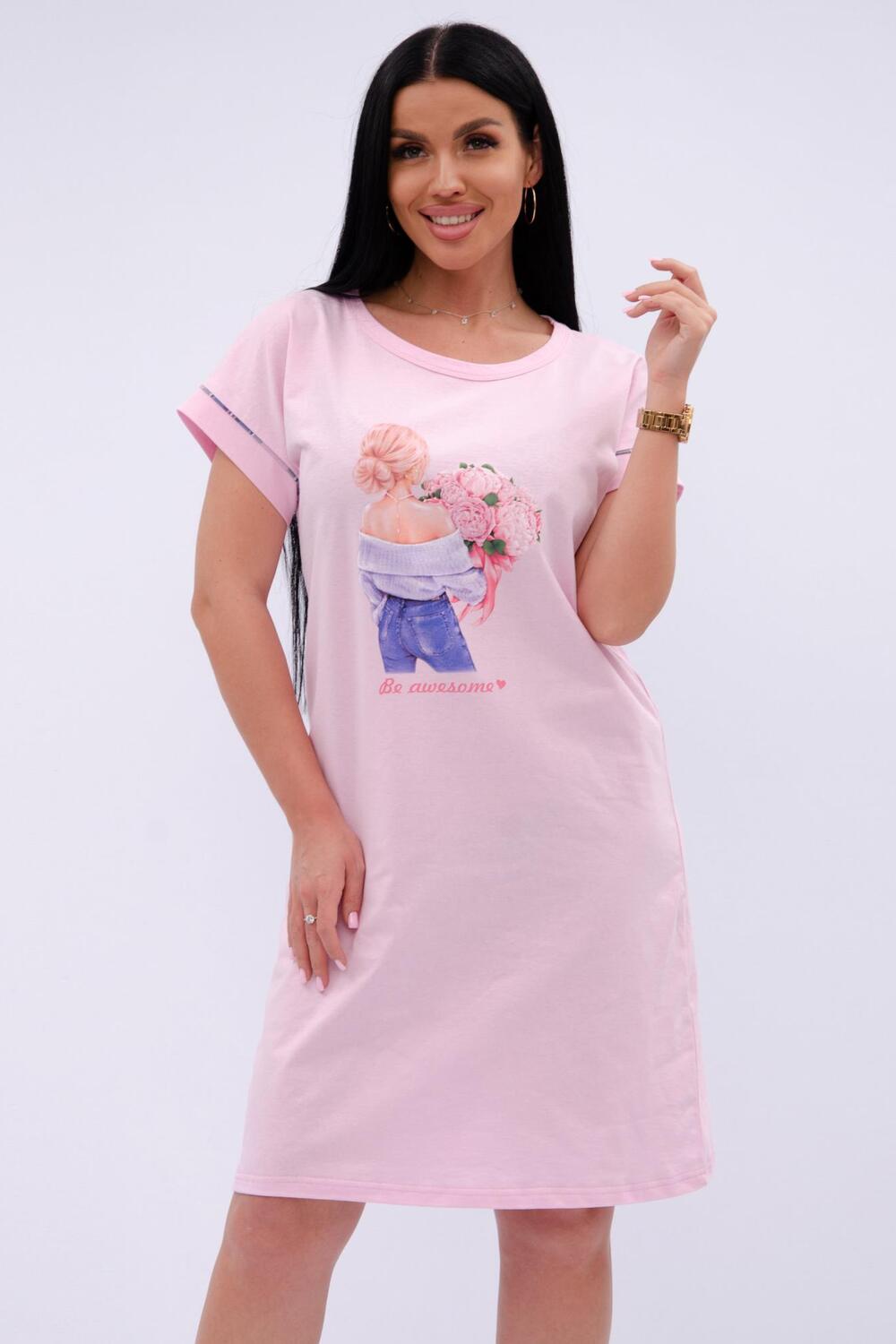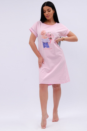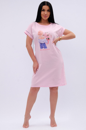 Трикотажная сорочка средней длины максимально комфортна, благодаря свободному и простому крою. Спинка и перед цельные, прямые без вытачек и швов. Хлопковая базовая сорочка с коротким рукавом украшена принтом, гипоаллергенна, позволяет коже дышать во время сна, всесезонная подойдет для любого времени года.