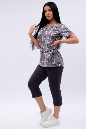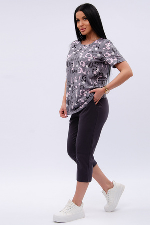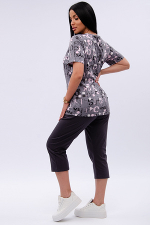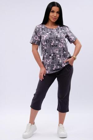 Женский костюм из футболки и бриджей — отличный выбор для дачного сезона и прогулок. Бриджи черного цвета из 100% хлопка обеспечивают комфорт и свободу движения, что особенно важно для активного отдыха на свежем воздухе или дома.