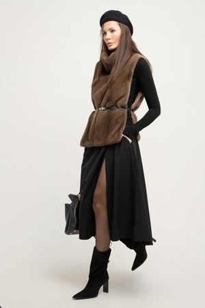 Юбка миди с летящей тканью и разрезом спереди станет прекрасным дополнением вашего гардероба. Модель выполнена в комфортном А-силуэте со средней посадкой, что обеспечивает удобство для повседневного ношения. Застежка на молнию облегчает надевание, а кокетка добавляет образу легкости и динамичности.