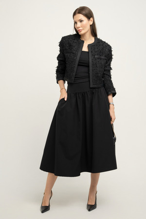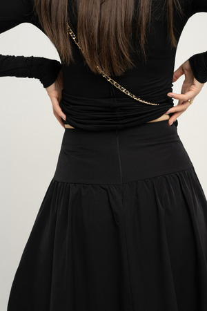 Черный цвет — это вечная классика, легко сочетающаяся с любыми оттенками и аксессуарами. Юбка идеально подходит для создания стильных и элегантных образов, будь то офисный дресс-код или особое мероприятие.