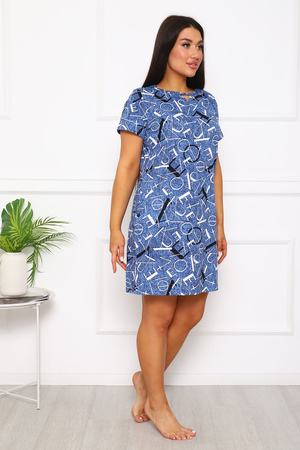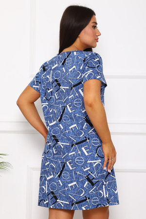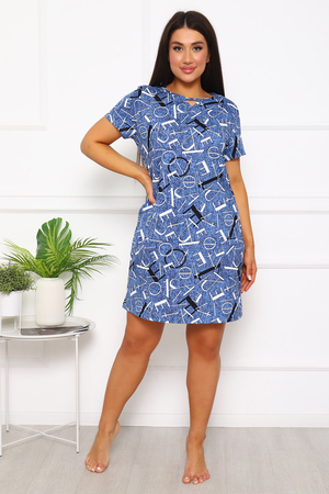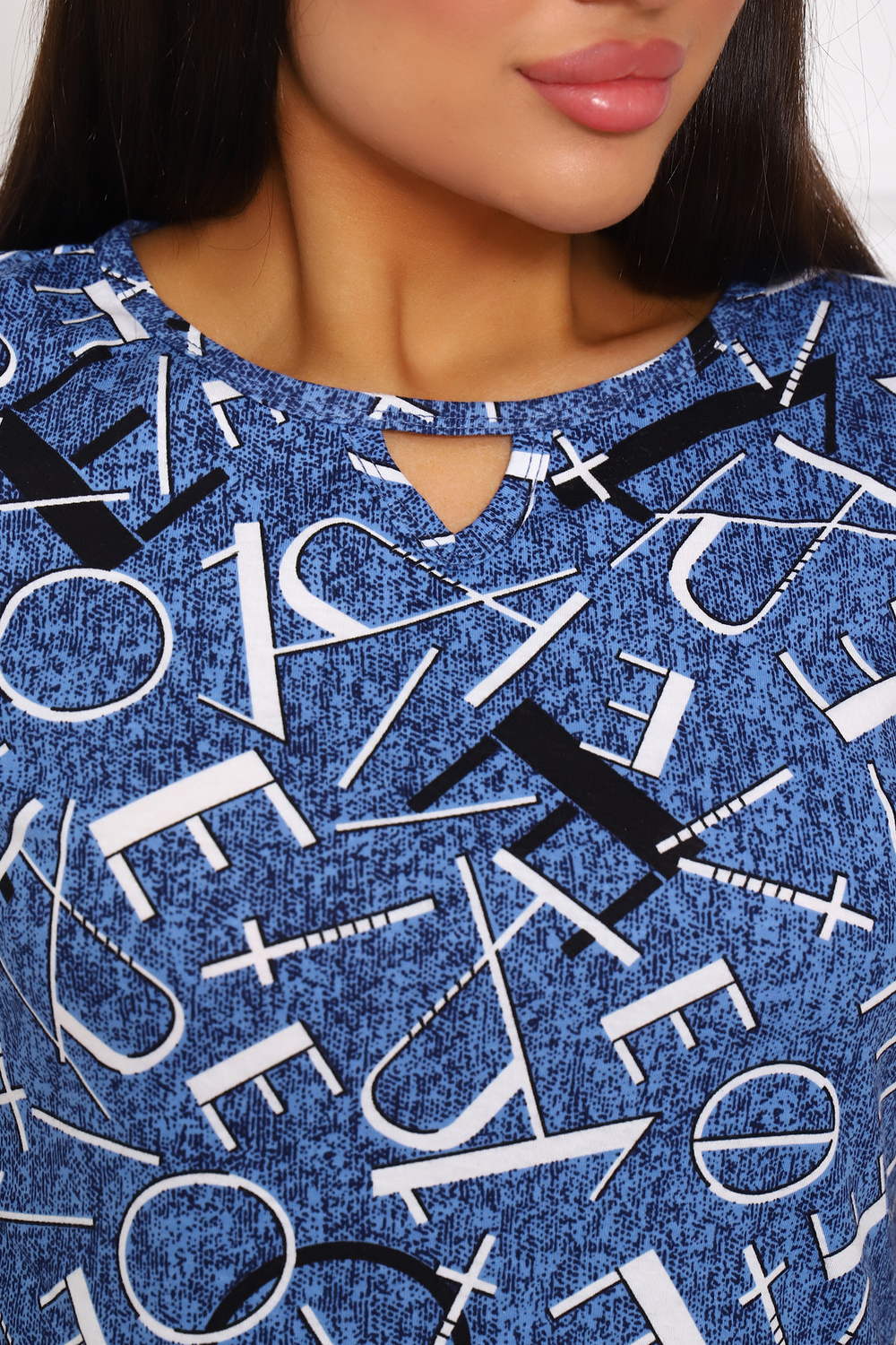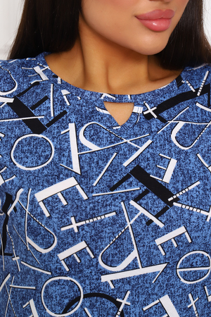 Туника женская прямого покроя. На горловине переда декоративный разрез. Вырез горловины в форме «лодочки». В боковом шве — карманы.