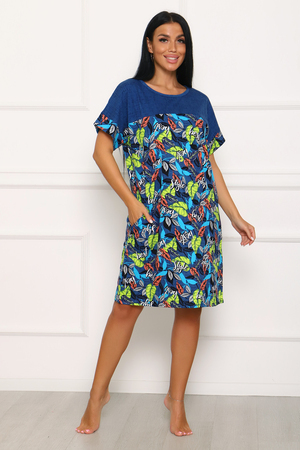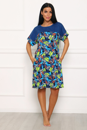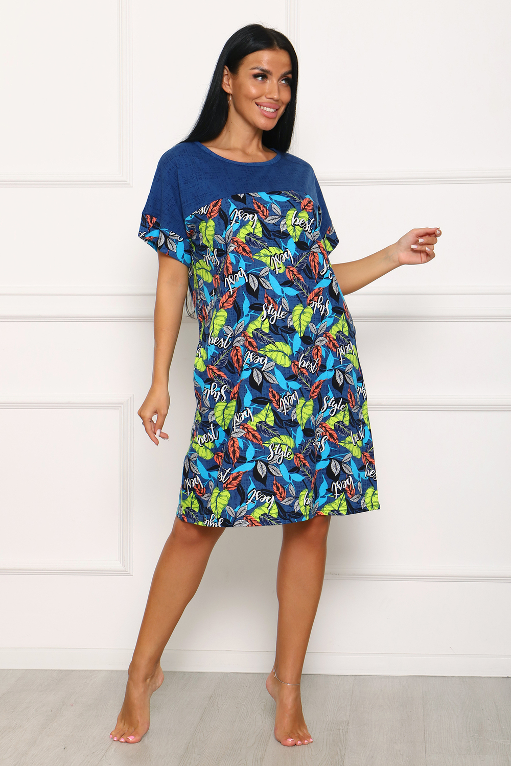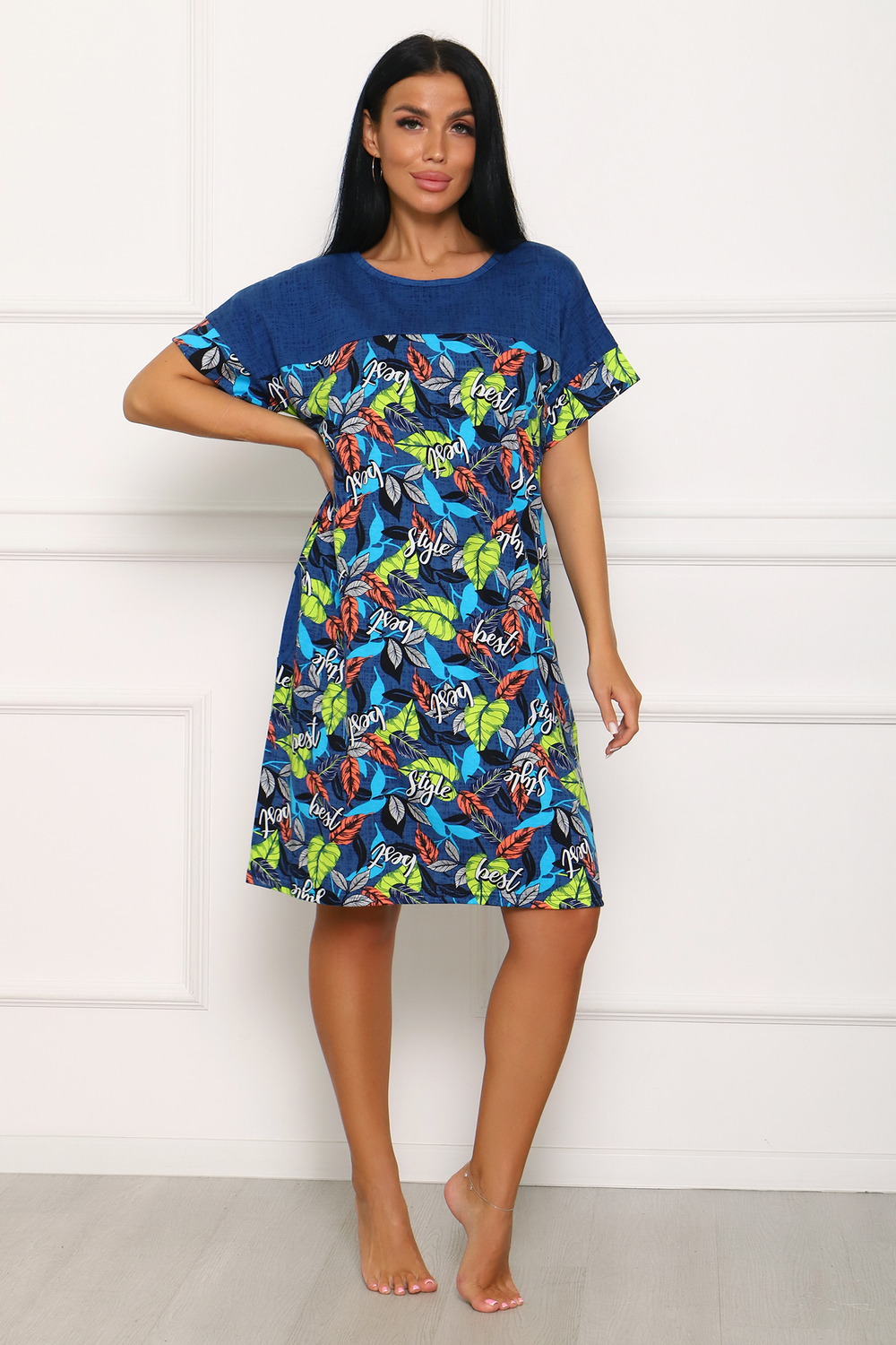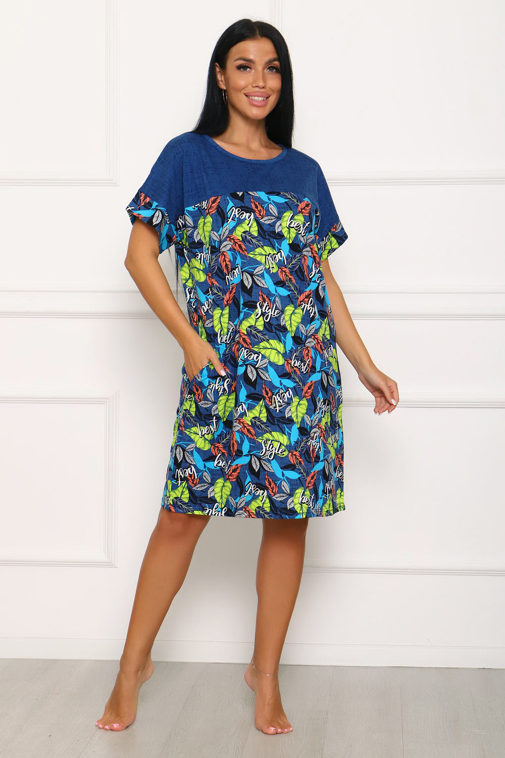 Стильная туника с контрастными кокетками. В боковых швах выполнены карманы, срезы рукавов обработаны манжетами.