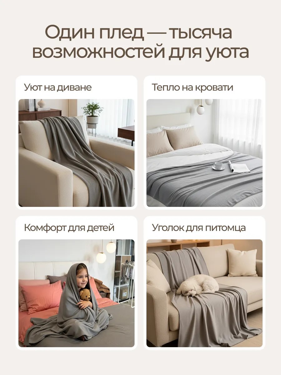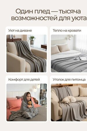 Создайте атмосферу уюта и тепла с этим мягким пледом 130х160, который идеально подойдет для любого интерьера. Он станет прекрасным подарком для ваших близких или стильным акцентом в доме. Этот однотонный плед прекрасно дополнит как диван, так и кровать, привнеся изысканный штрих в любой уголок вашего пространства. Состав изделия — 100% полиэстер, что обеспечивает прочность и лёгкость в уходе. Плед выполнен из флиса, который мягко согревает и приятно ощущается на коже, создавая комфорт в холодные вечера. Уход за изделием прост: достаточно постирать его в деликатном режиме, а благодаря особой ткани, глажка не требуется. Этот плед можно использовать как накидку на мебель или как стильный элемент текстильного декора вашей спальни. Благодаря универсальному дизайну, он идеально впишется в любой интерьер, придавая комнате уют и тепло. Не упустите шанс добавить в свой дом этот элемент комфорта. Подарите себе и близким тепло и уют с этим стильным пледом. Его современный дизайн и лёгкость в уходе сделают его незаменимым аксессуаром для вашего дома. Пусть каждый день будет наполнен гармонией и комфортом с этим прекрасным покрывалом, которое станет идеальным спутником для отдыха и расслабления.