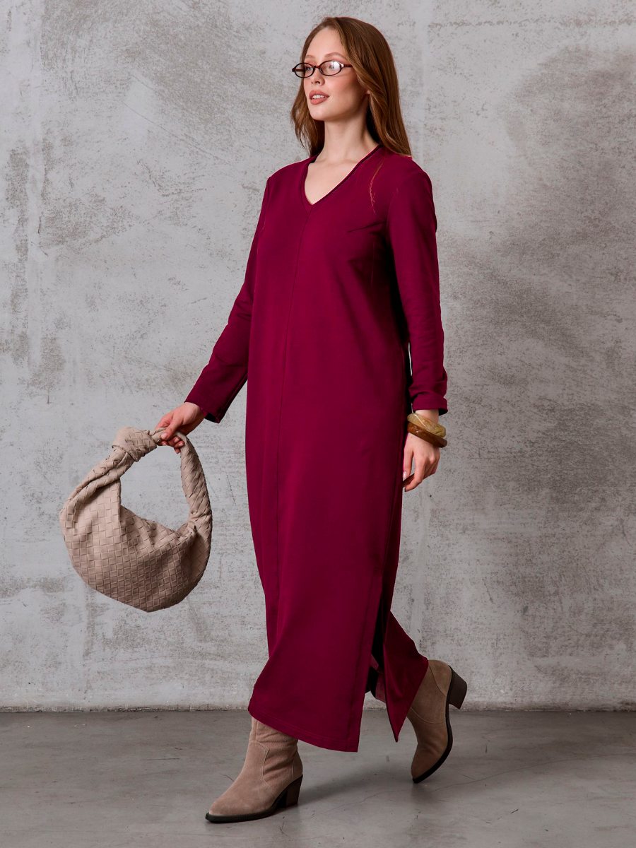 Женское длинное платье-футболка оверсайз - универсальная одежда, которая может быть как повседневным вариантом, так и стильным элементом образа. Оно идеально подойдет для дома и для прогулок на свежем воздухе. Свободное, оверсайз с длинным рукавом и с разрезом на ноге. Выполнено из дышащей хлопковой ткани. Прямой крой, удачно подчеркивает фигуру и скрывает все недостатки. Длина изделия макси. Для высоких девушек оно будет ниже колена, а для низких может стать платьем в пол. Независимо от возраста и стиля, оно подойдёт каждой женщине. Это и трикотажное базовое изделие и яркий трендовый наряд. Важно, что оно и удобное, и красивое одновременно и соответствует разным стиля. В размерном ряду вы сможете найти платья как для стройных девушек, так и большие размеры сайз плюс для полных женщин. Изделие однотонное, поэтому будет хорошо сочетаться с любым дополнением. Ткань высокого качества, держит форму, прекрасно переносит много стирок и не линяет.
