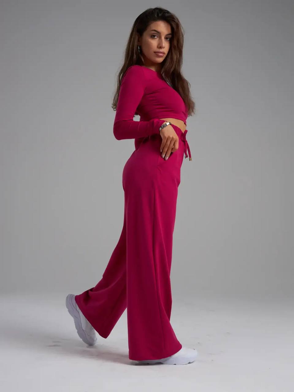 Стильные брюки палаццо — идеальный выбор для женщин, которые ценят комфорт и моду в любое время года. Благодаря мягкому трикотажу с добавлением хлопка они приятно ощущаются на теле, не вызывают раздражения и подходят как взрослым девушкам, так и подросткам. За счет свободного кроя изделие не стесняет движений, позволяет создать современный образ для учебы, работы или отдыха дома. Классические прямые линии визуально вытягивают силуэт, а высокая посадка подчеркивает талию и сочетается с пиджаком или свитшотом. Брючки подойдут для повседневных деловых встреч в офисе или стильных прогулок по городу. Удобная резинка обеспечивает хорошую посадку на любой рост и фигуру — это особенно важно для тех, кто выбирает одежду оверсайз размера. Дизайн универсален: можно носить штаны в школу, использовать как часть домашнего гардероба или выбрать их для праздника благодаря нарядному силуэту. Вещь подойдет тем, кто любит модные тренды и ищет самые удобные варианты без лишних деталей.