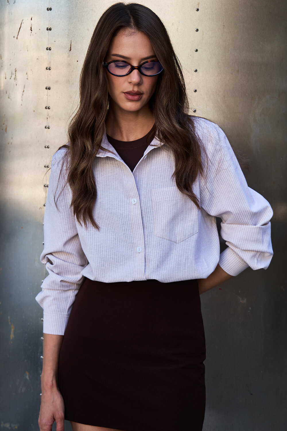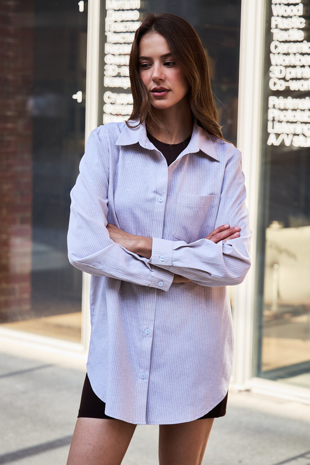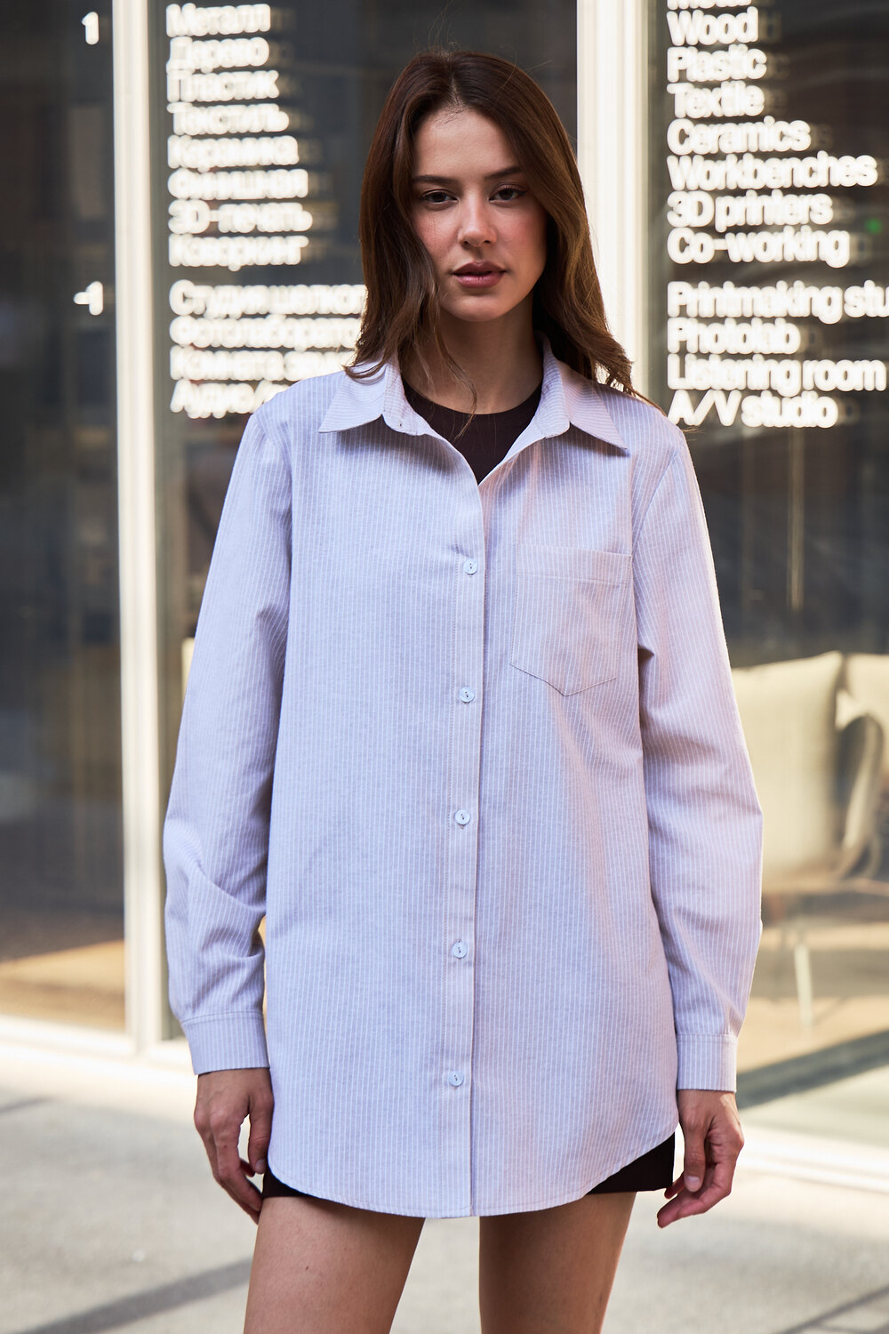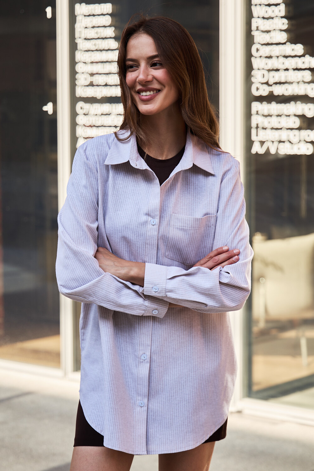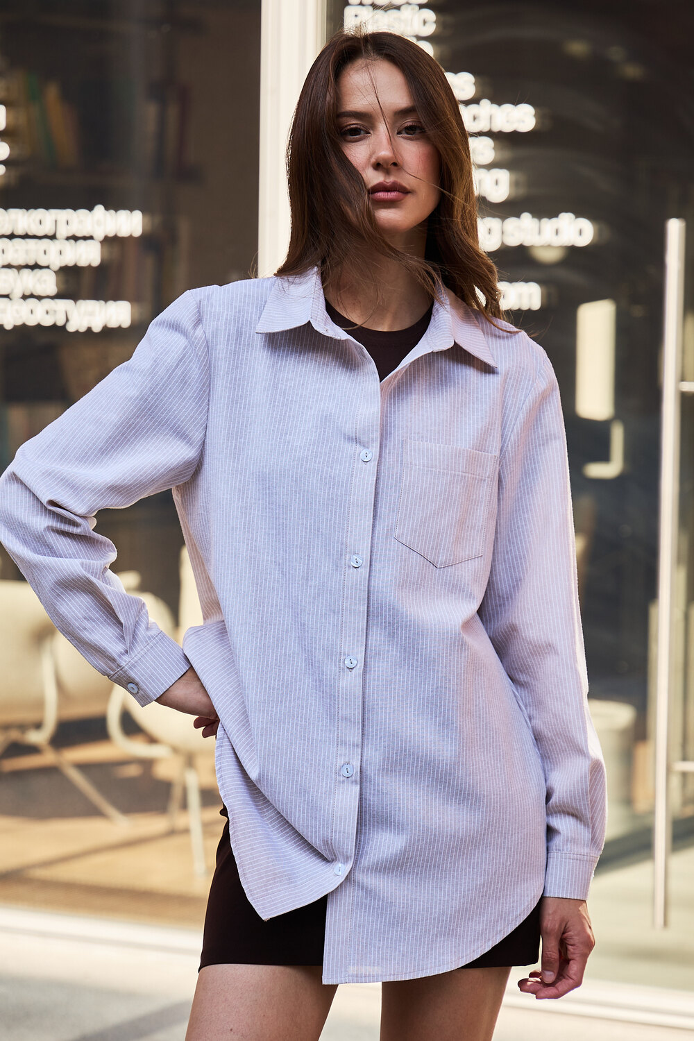 Модель: Рубашка оверсайз в полоску хлопковая