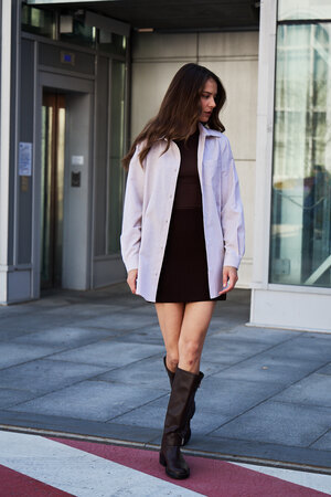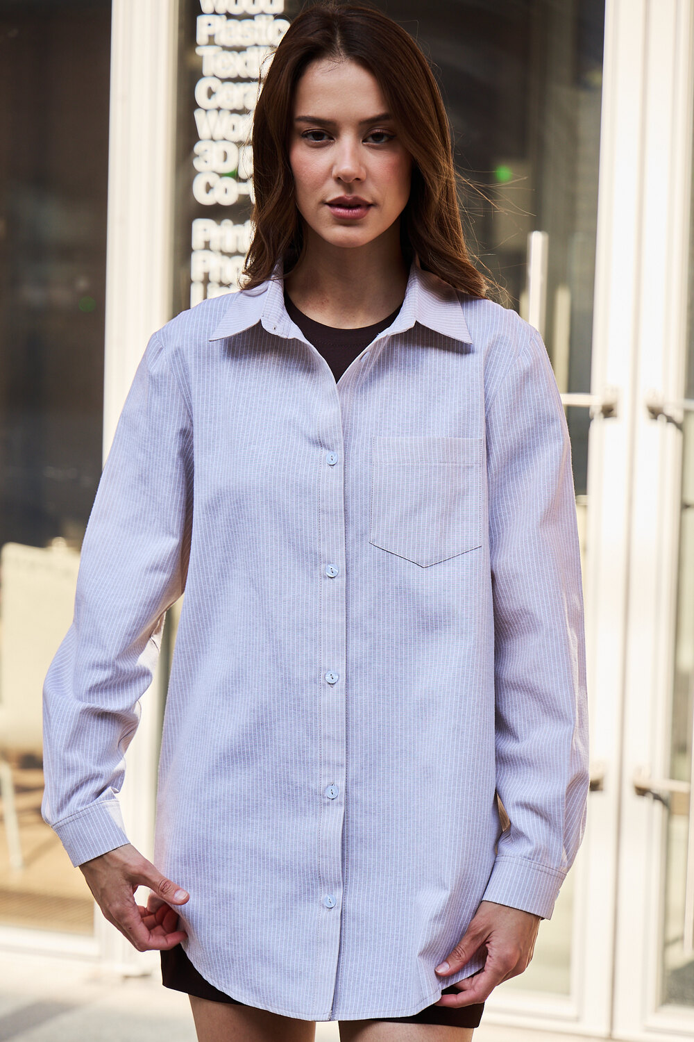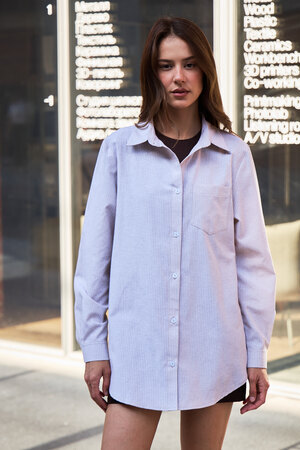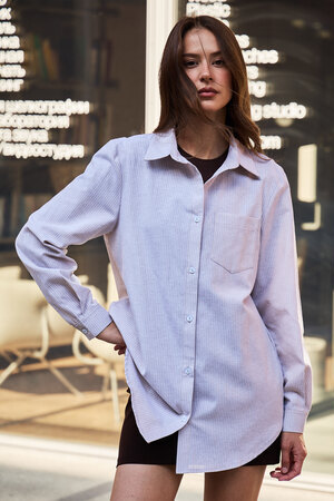 Ваш идеальный весенний образ начинается с нее: женская рубашка в полоску. Эта базовая модель из натурального хлопка – настоящее воплощение комфорта и стиля.