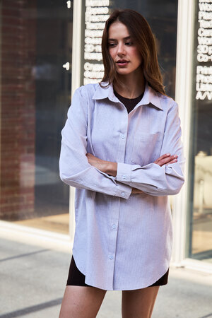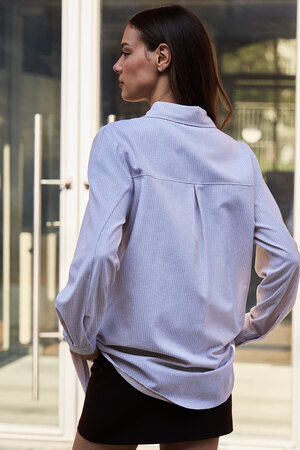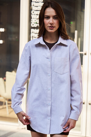 Изысканность в каждой детали: удлиненный силуэт, элегантный длинный рукав и широкий воротник придают этой полосатой рубашке особый шарм. Она станет вашим верным спутником на романтических свиданиях, обеспечит комфорт в школе и подчеркнет профессионализм в офисе. Легкость и дышащие свойства хлопка гарантируют непревзойденное ощущение свежести.