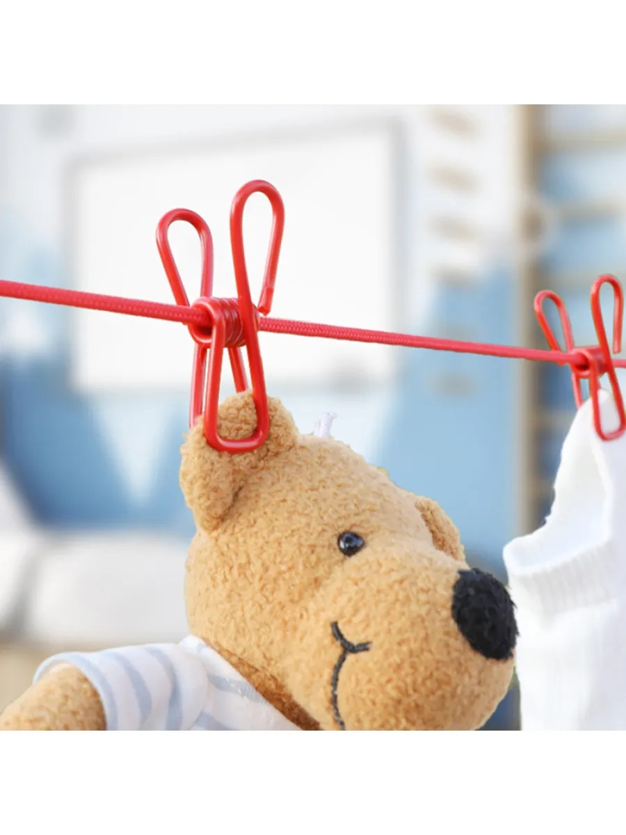 Прищепки бельевые на верёвке - резинке предлагают невероятное удобство и практичность для сушки вашего белья. Оснащенная 12 прищепками и 2 крючками, она легко закрепляется в любом месте, главное, что нужно – опоры с 2-х сторон. Это позволяет использовать её как на балконе, так и в любой комнате или на даче. Прищепки из прочного и долговечного металла гарантируют долгий срок службы, что делает эту сушилку идеальным выбором для любого дома. Веревка для сушки белья прекрасно расстягивается от 1.8 метров до 3.5 метров, предоставляя вам достаточно пространства для размещения всего необходимого. Металлические крючки надежно держат конструкцию, легко крепясь к опорам. Даже если вы собираетесь в поход с палатками, наша веревка для белья с прищепками поможет вам быстро и удобно организовать сушку одежды на природе. Кроме того, бельевая веревка на балкон изготовлена из высококачественных долговечных материалов, что обеспечивает её надежность и устойчивость к внешним условиям. Сушилка для белья с прищепками станет идеальным решением для ванной, а компактный шнур для сушки белья гораздо проще убрать при необходимости, не занимая много места. В дополнение ко всему, веревочка представлена в рандомном цвете, что добавляет ярких акцентов в ваш интерьер.