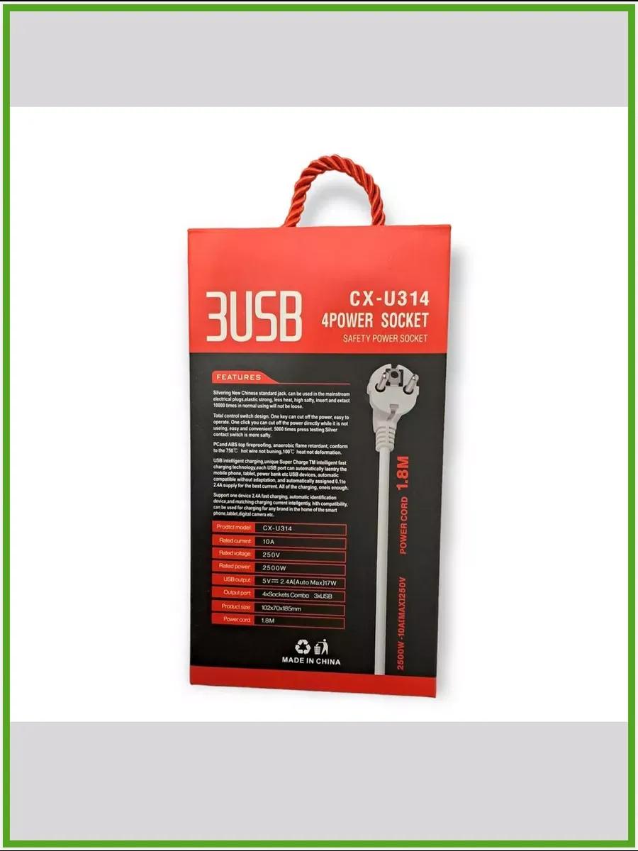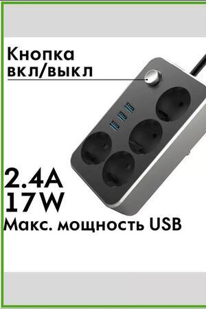 Мы предлагаем современный компактный блок - сетевой адаптер на 4 розетки и 3 USB порта. Корпус черного цвета. Аксессуар поставляется в картонной коробке с ознакомительной информацией на ней. Евровилка, стандартное соединение для России. Удлинитель силовой имеет защиту предохранителем и пониженный нагрев. Верхняя огнестойкость основания защищает от возгорания. Интеллектуальная технология Super Charge позволяет быстро заряжать устройства через юэсби. Имеется кнопка вкл/выкл пилота. Размер удобный комфортный для хранения в ящике стола или для переноски/первевозки в поездках и путешествиях, когда есть необходимость для питания такой техники, как: мобильный телефон, планшет, компьютер, смартфон, наушники, ноутбук. Тройник для розетки изготовлен из прочного пластика, который не подвержен коррозии и не теряет своих свойств со временем. Очень нужная вещь для загородного дома, квартиры. Всегда есть что заряжать.