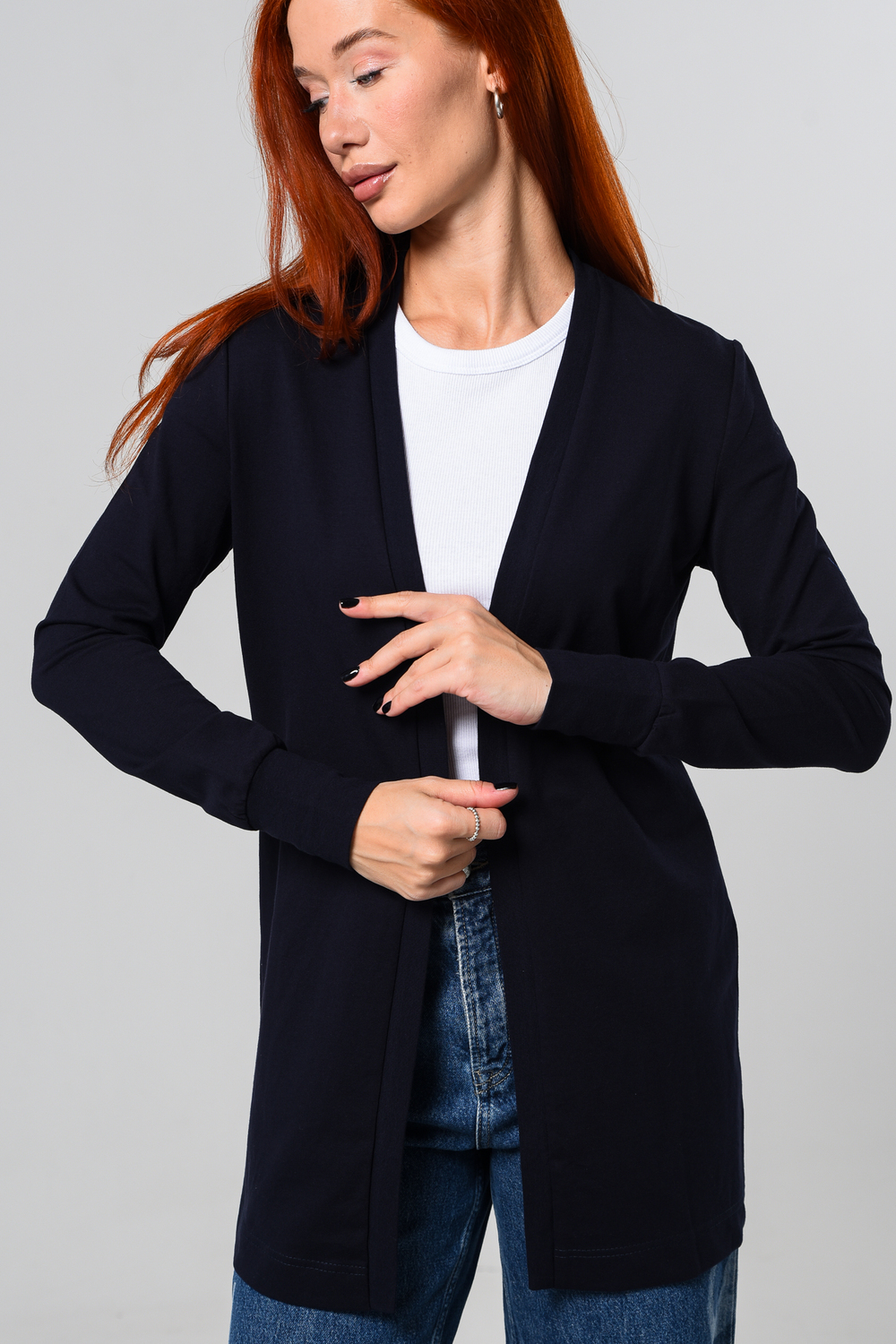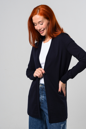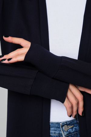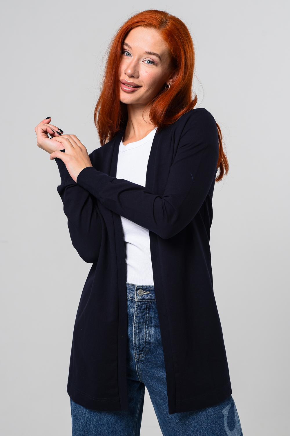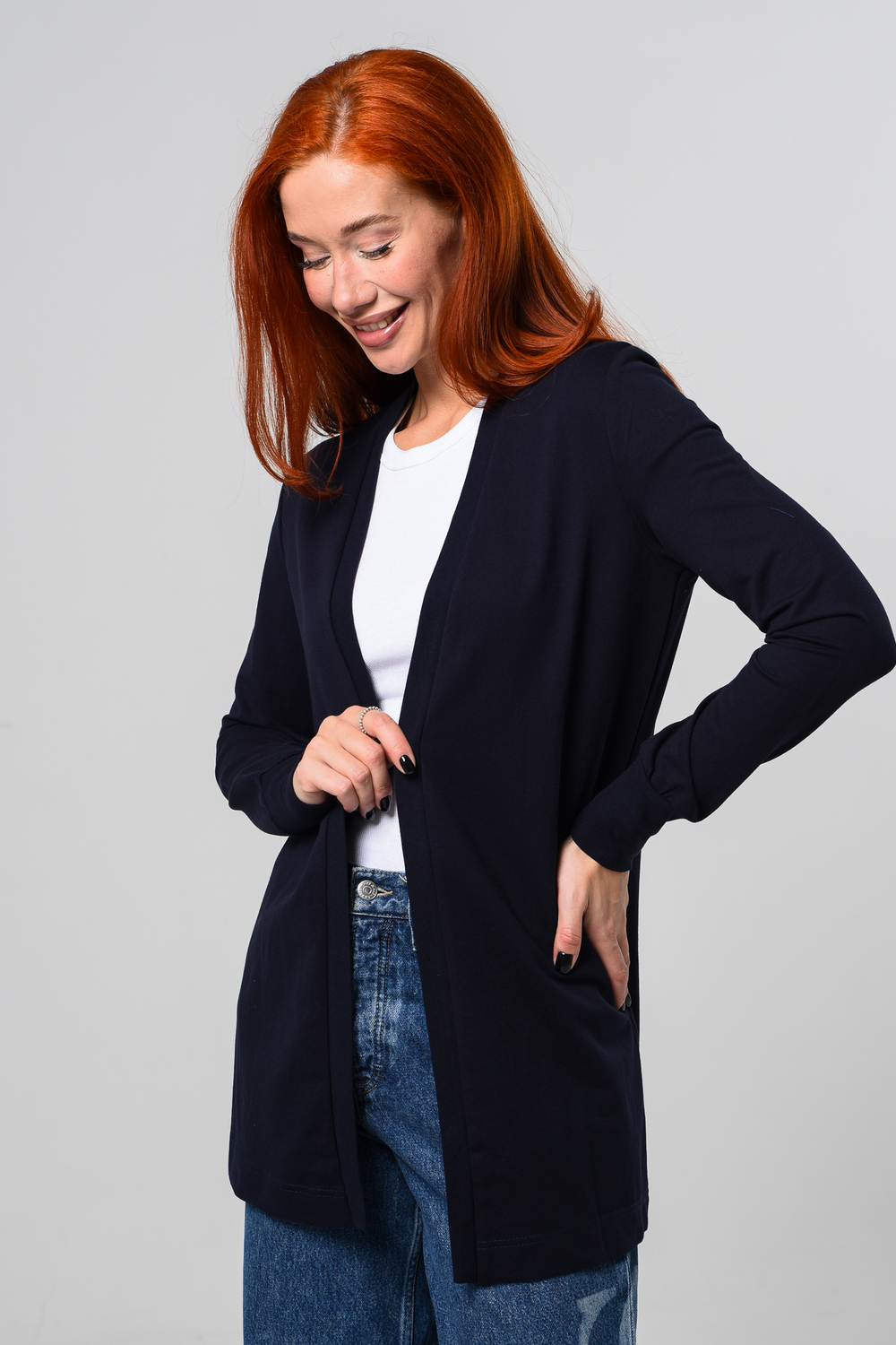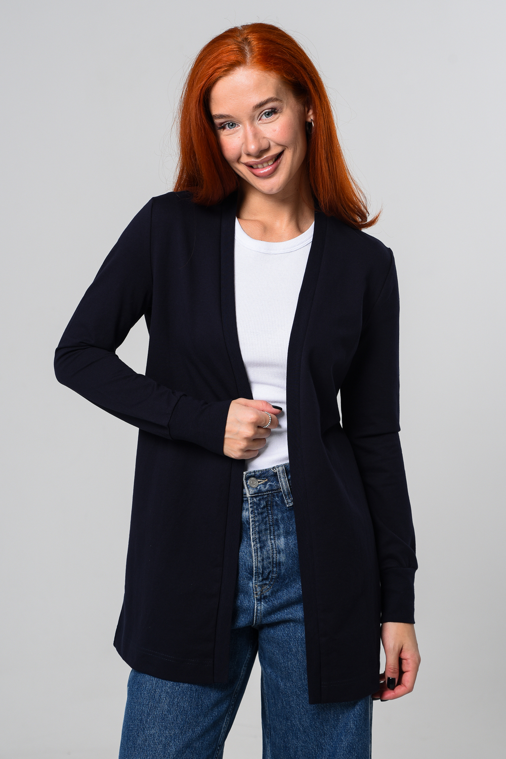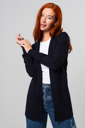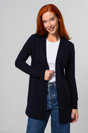 Кардиган женский. Свободный крой — хорошо сядет на любой рост и комплекцию. Расцветка - темно-синий.