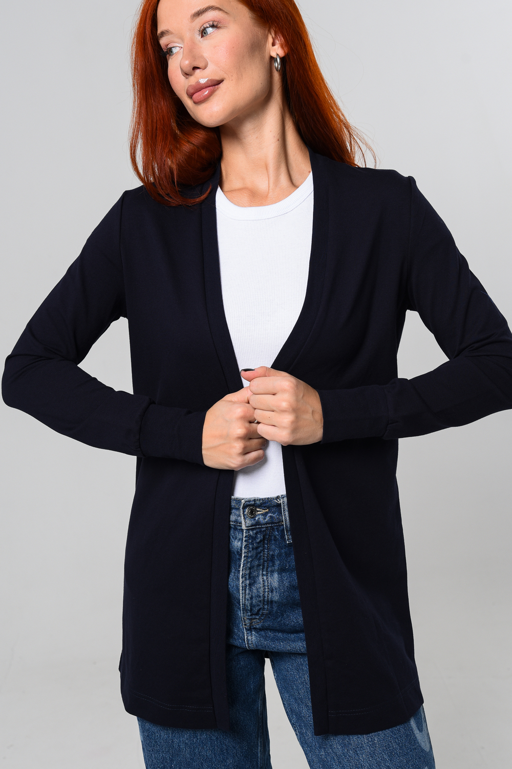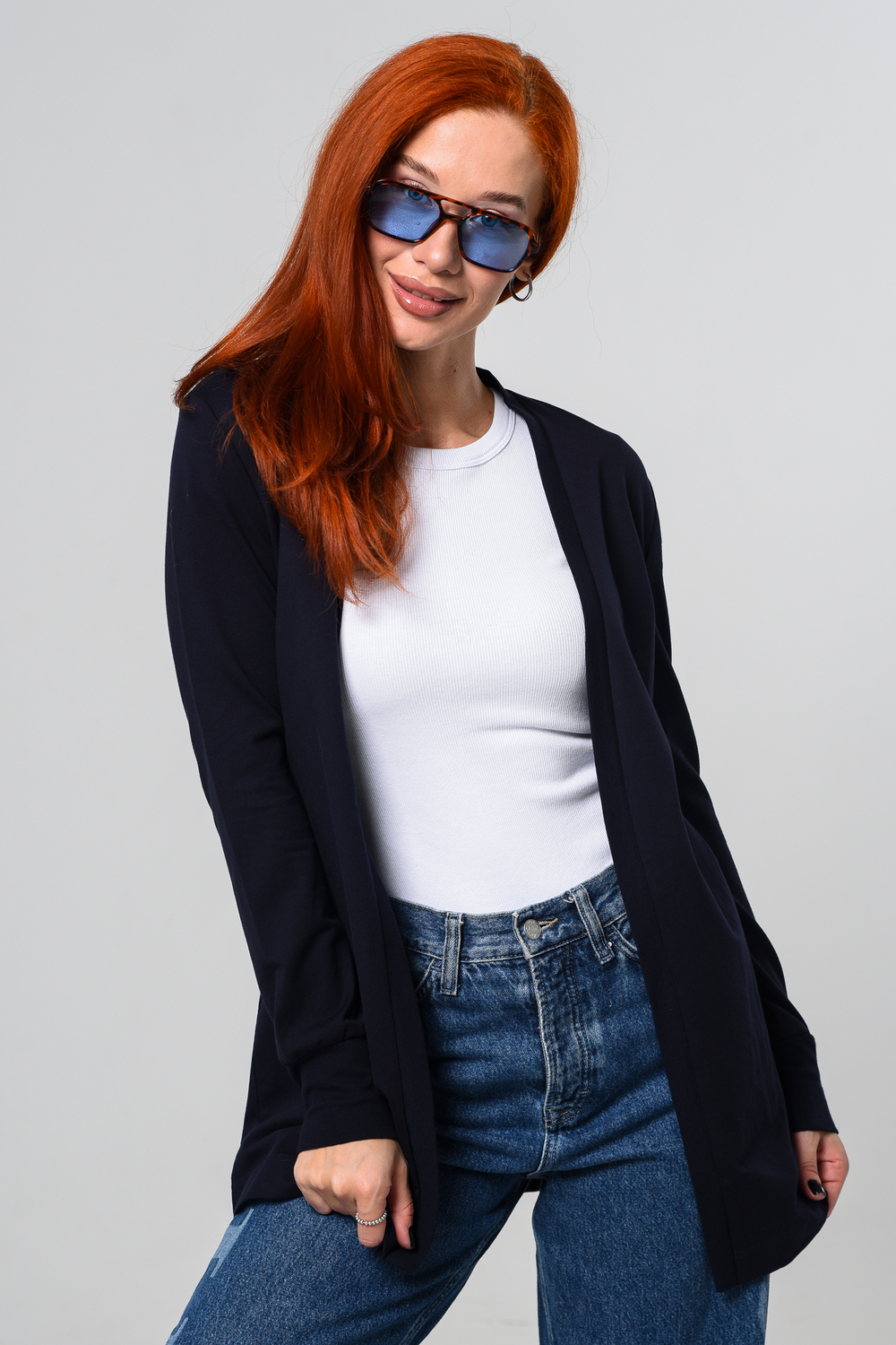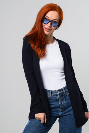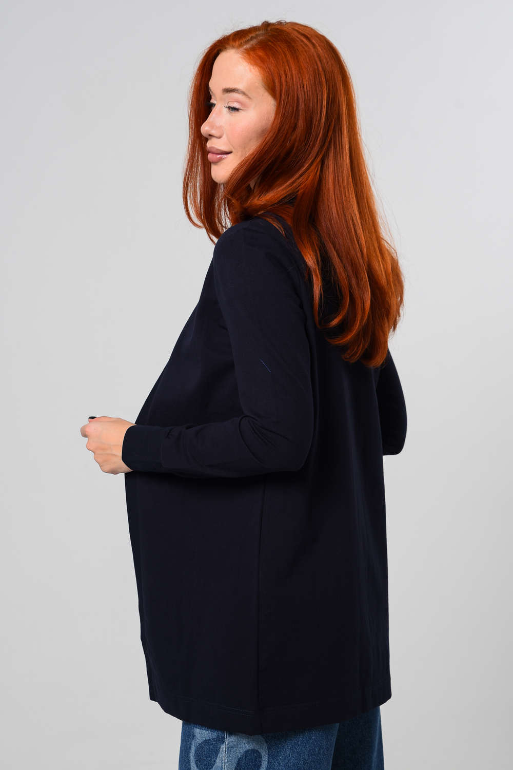 Кардиган женский. Свободный крой — хорошо сядет на любой рост и комплекцию. Расцветка - темно-синий.