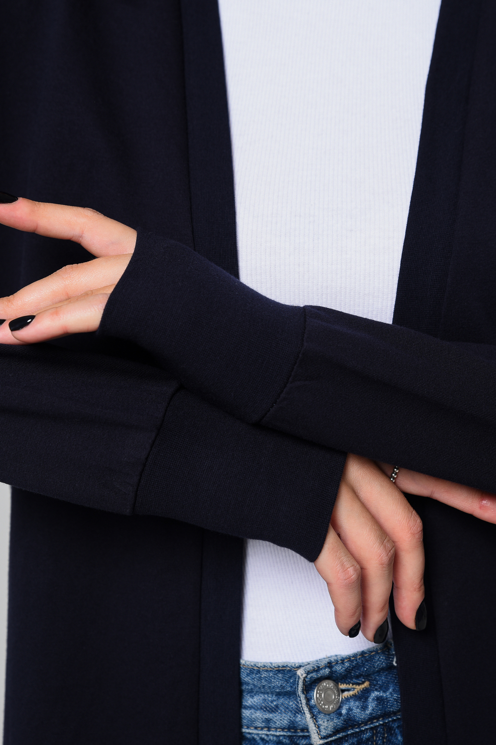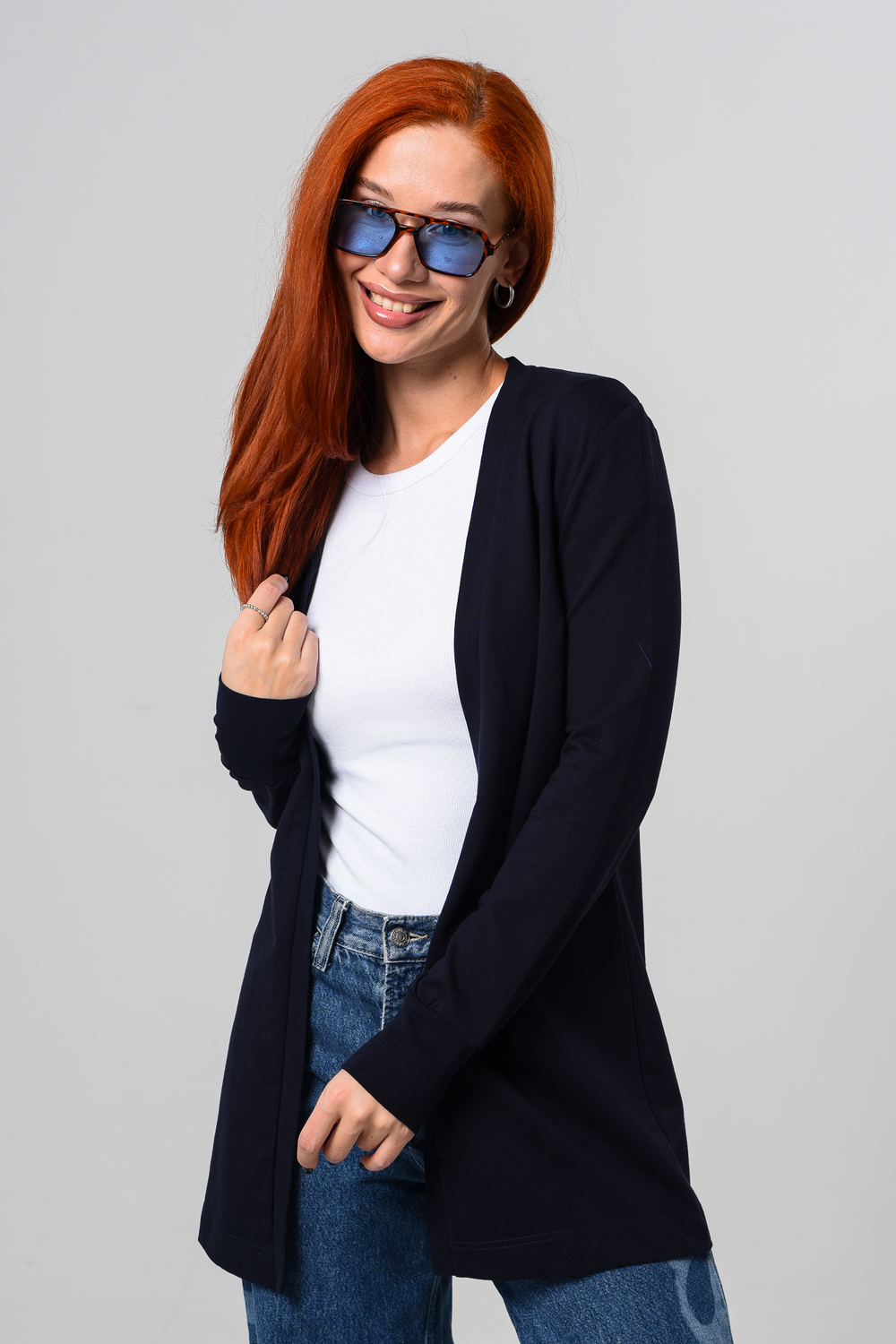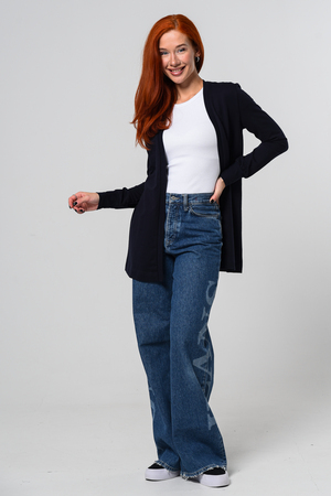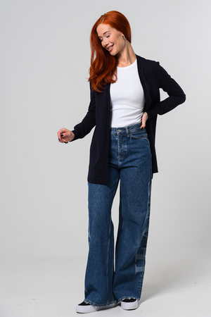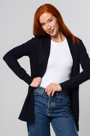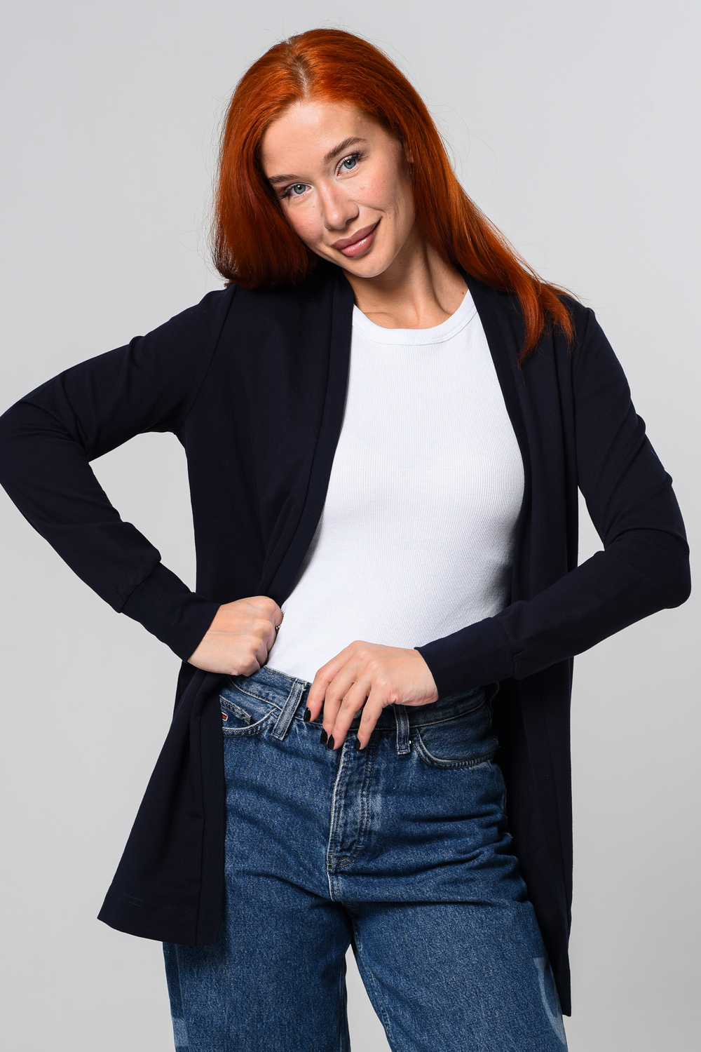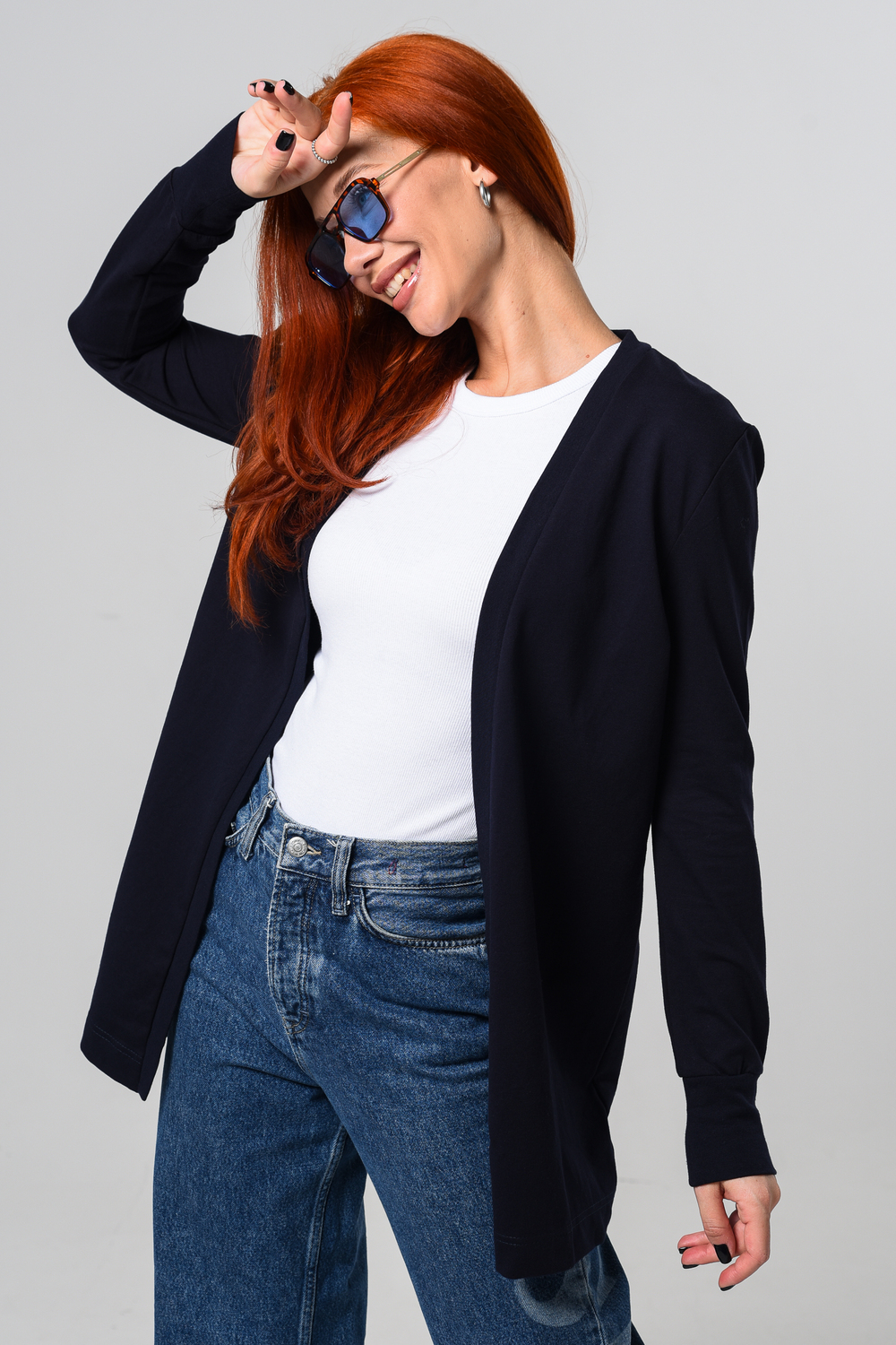 Кардиган женский. Свободный крой — хорошо сядет на любой рост и комплекцию. Расцветка - темно-синий.