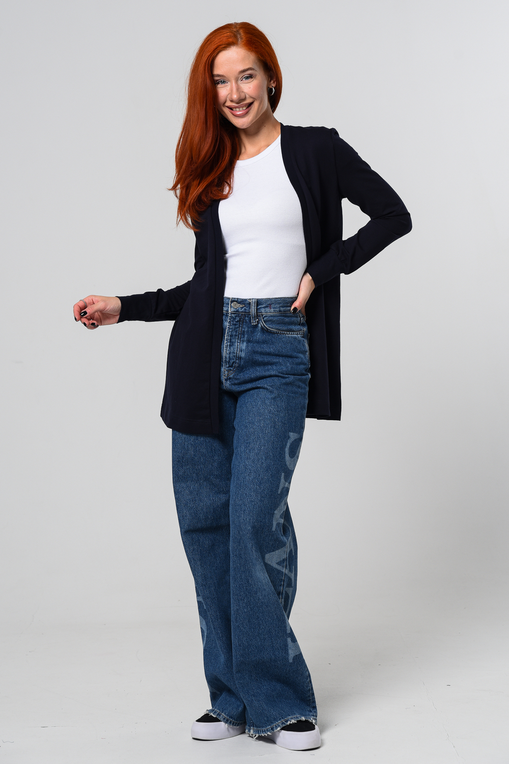 Материал: 75% хлопок, 20% полиэстер, 5% полиуретан. Ткань мягкая, но держит форму. Подойдет для прохладной погоды или как акцентный слой в образе.