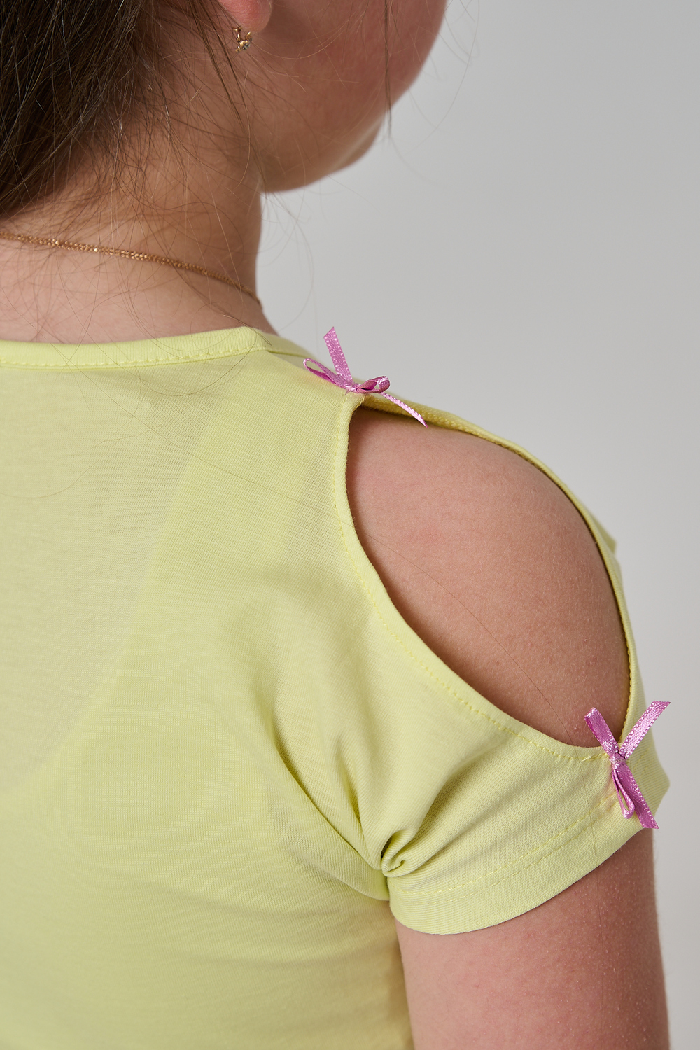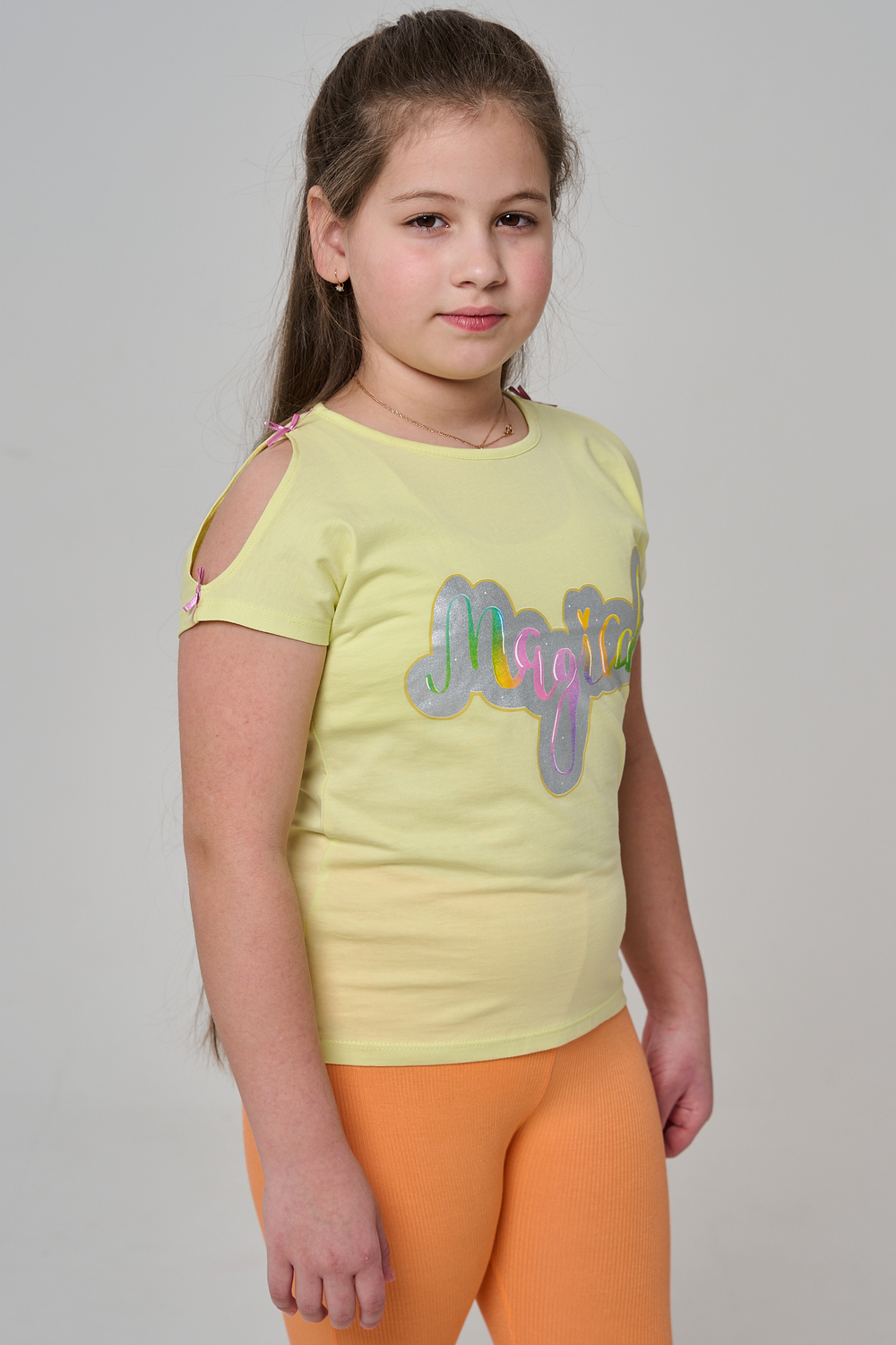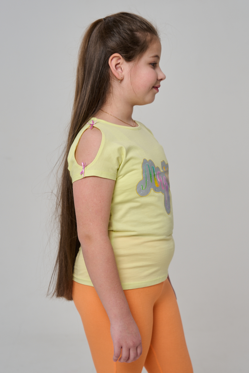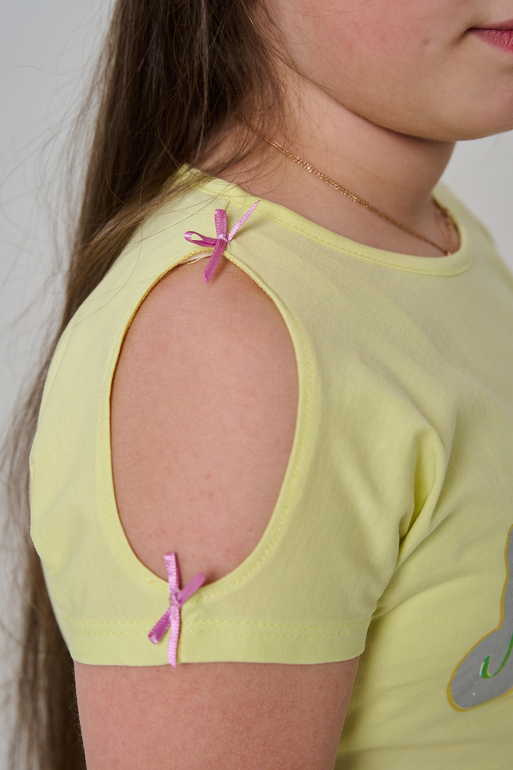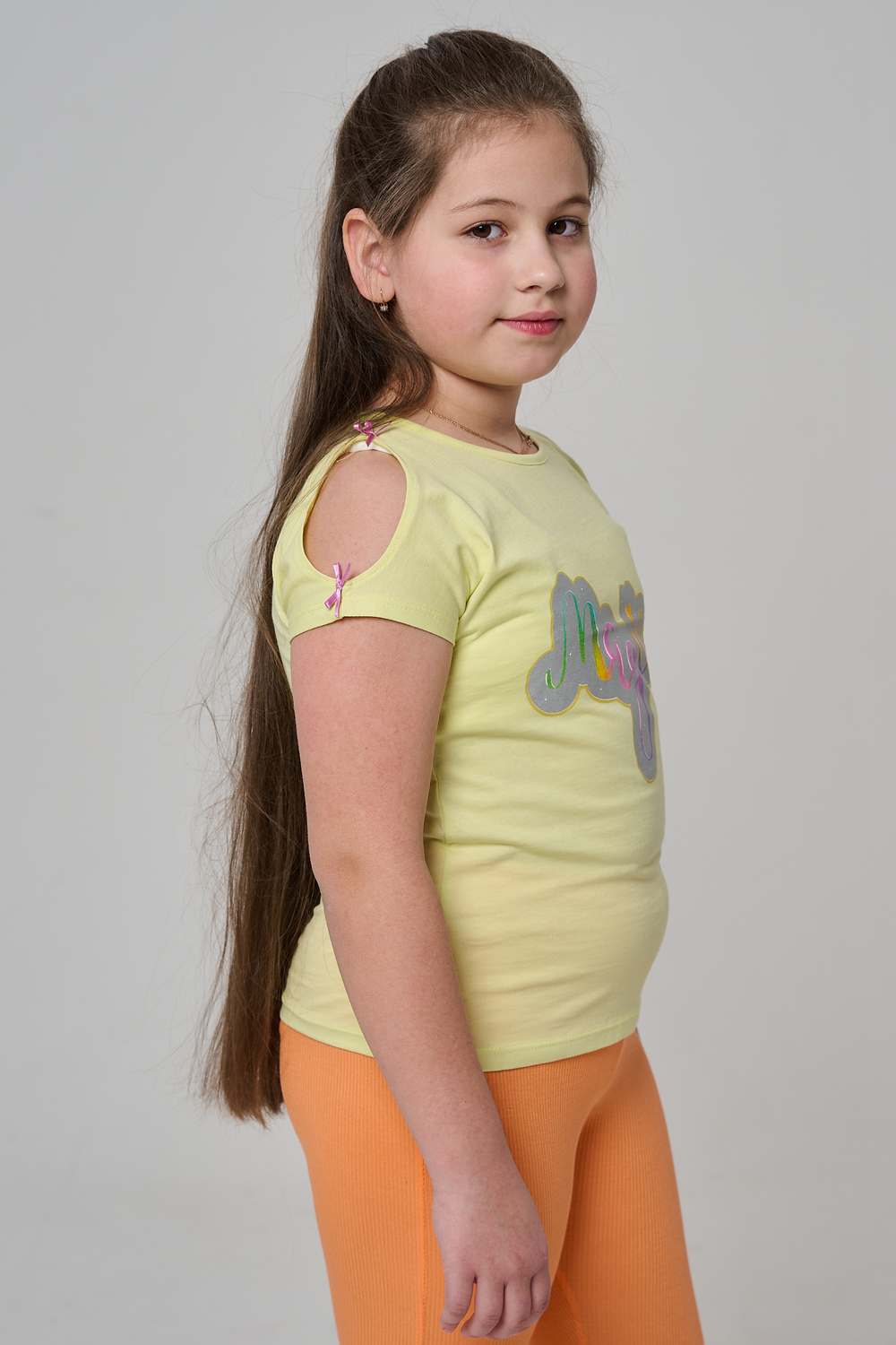 Футболка для девочек. Изготовлена из натурального хлопка (100%). Материал дышащий, мягкий и гипоаллергенный — идеально для чувствительной детской кожи.