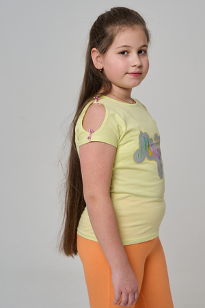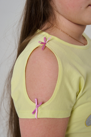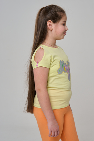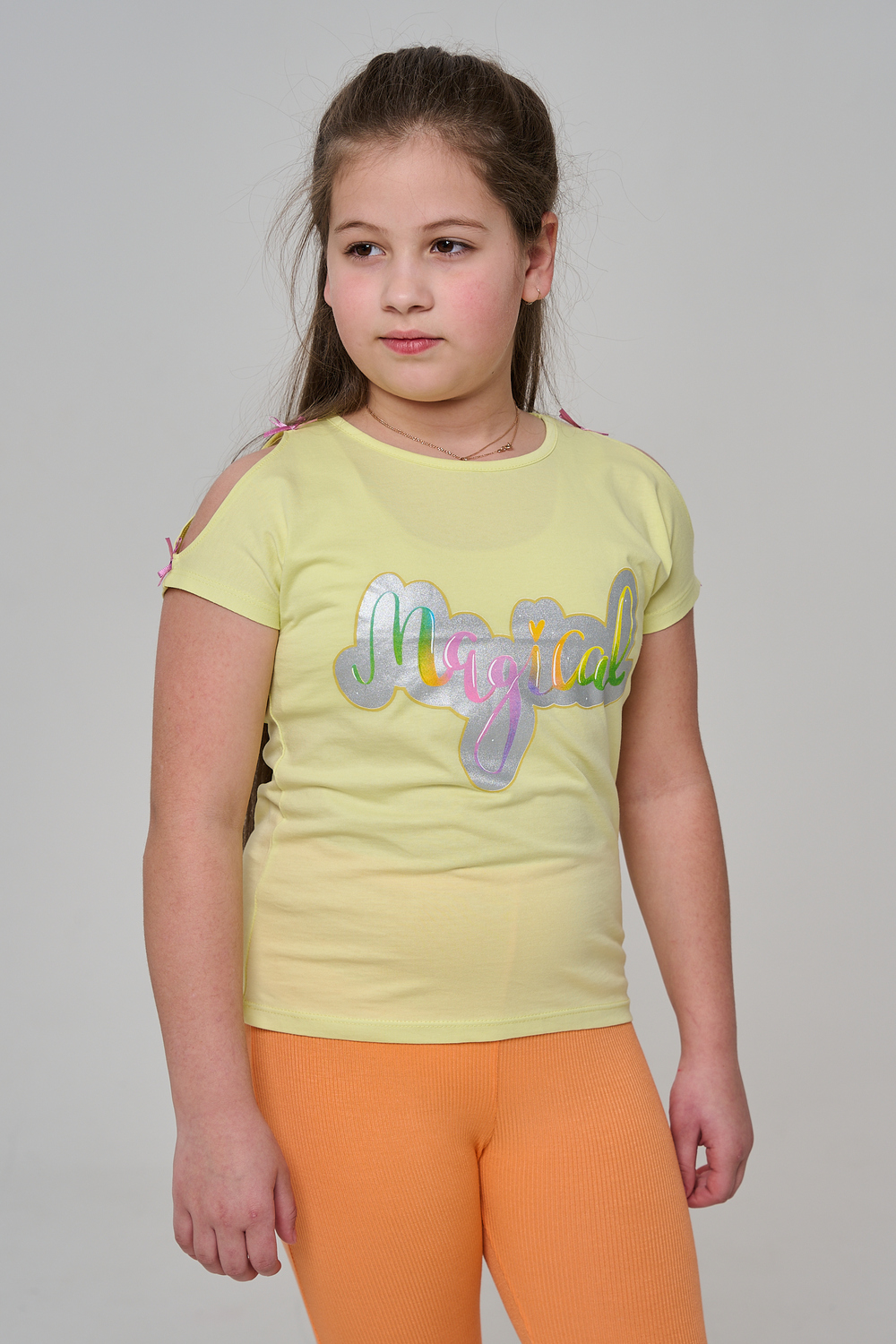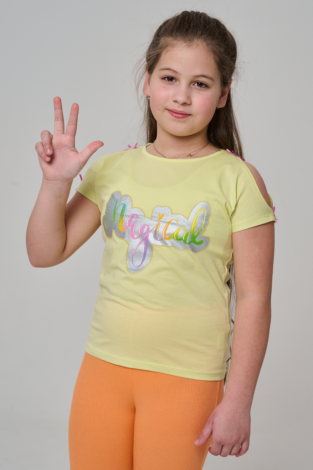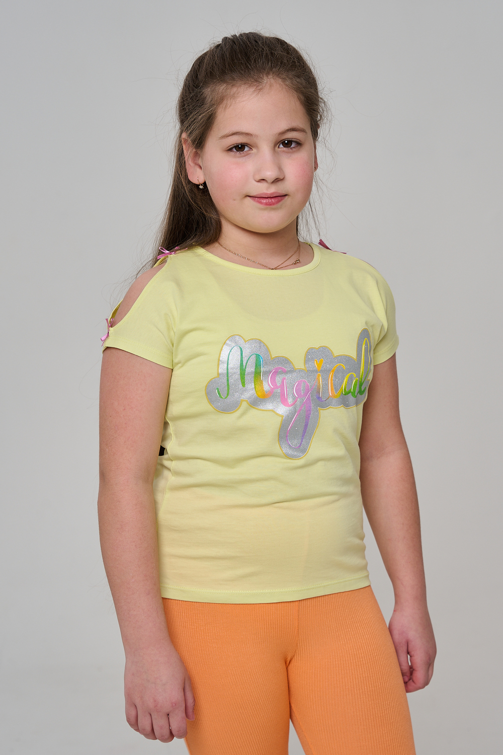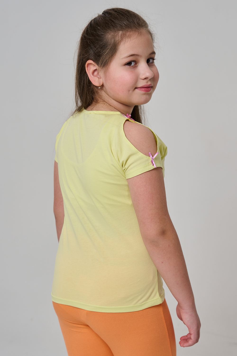 Футболка для девочек. Изготовлена из натурального хлопка (100%). Материал дышащий, мягкий и гипоаллергенный — идеально для чувствительной детской кожи.