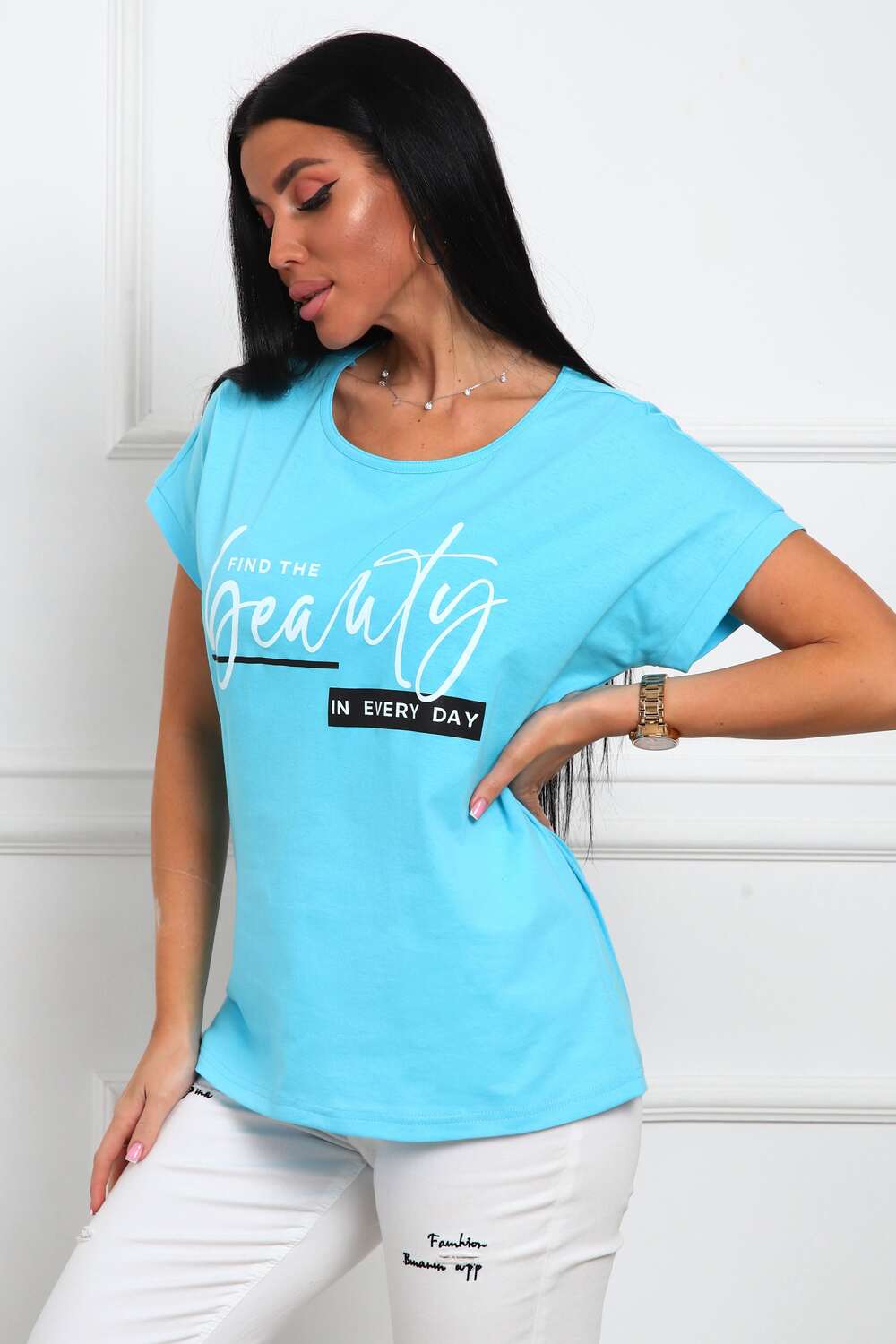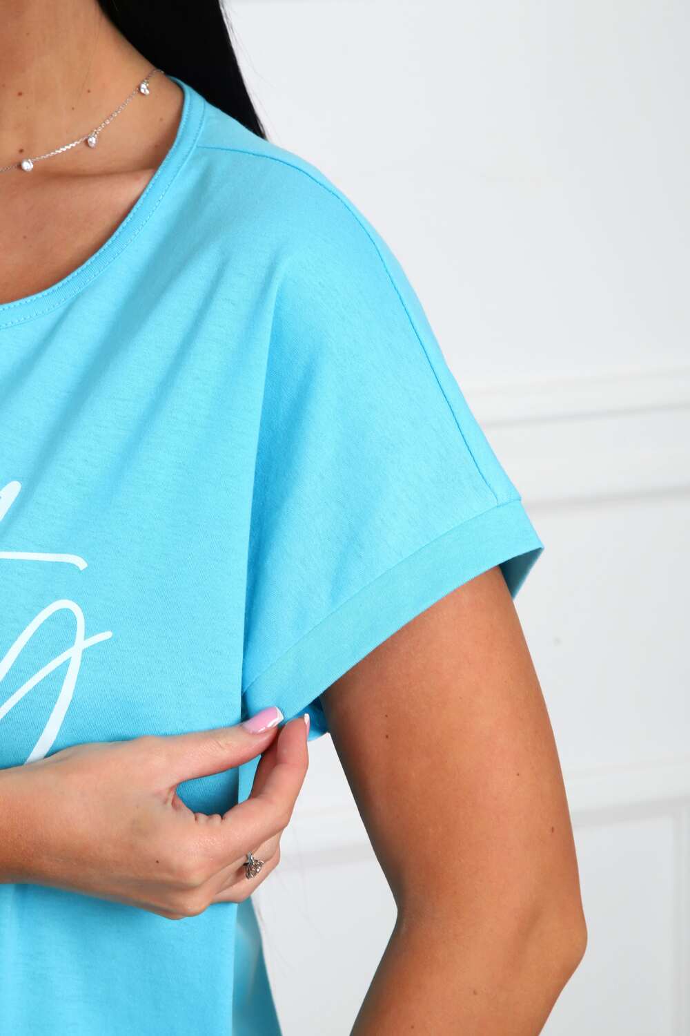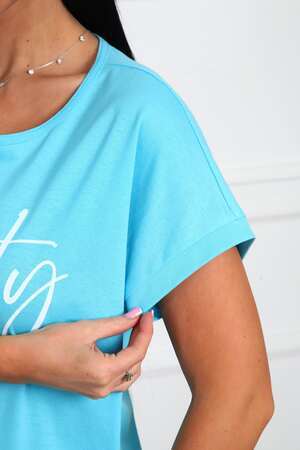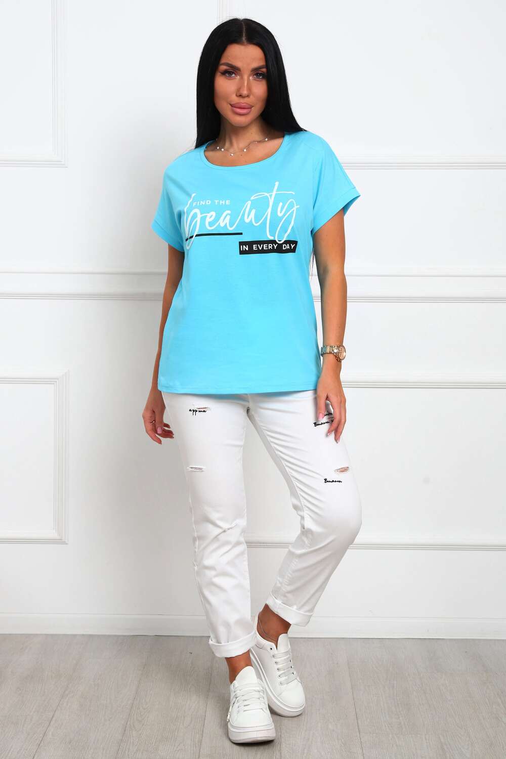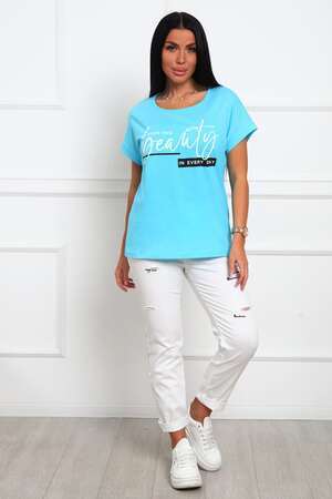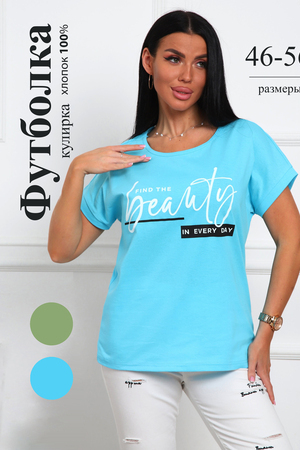 Футболка женская прямого силуэта, из натурального трикотажа - хлопок 100%. Линия плеч спущена, горловина круглой формы . Низ изделия прямой, на полочке располагается большой принт (шелкография).