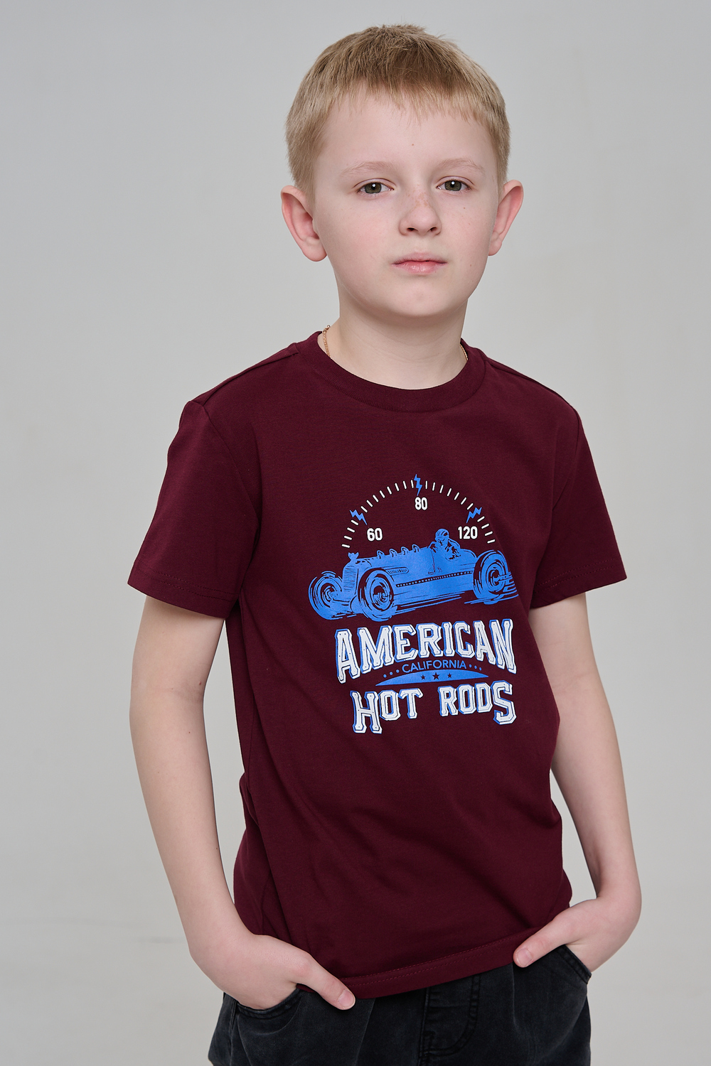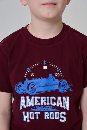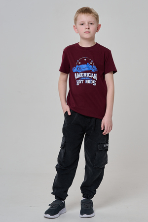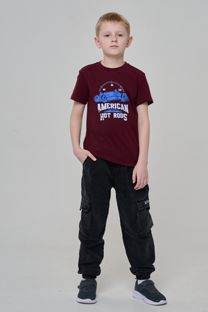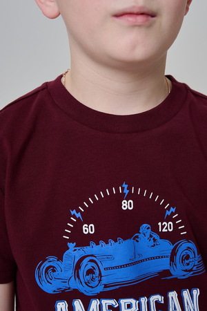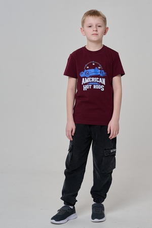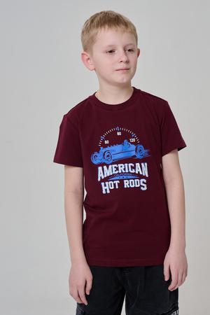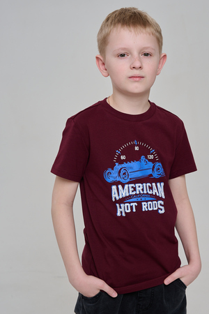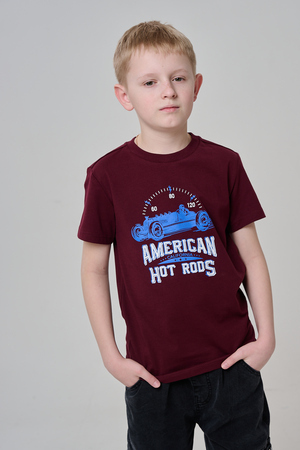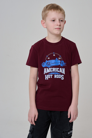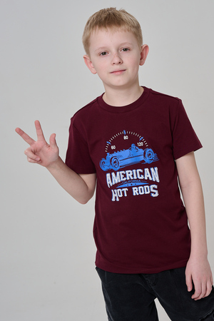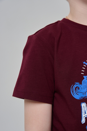 Футболка для мальчика бордовая с принтом. Свободный крой, дышащий материал - 100% хлопок. Подходит для повседневной носки.