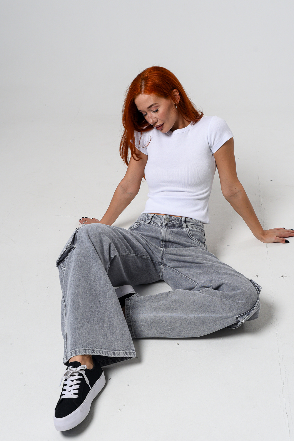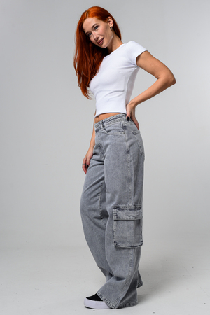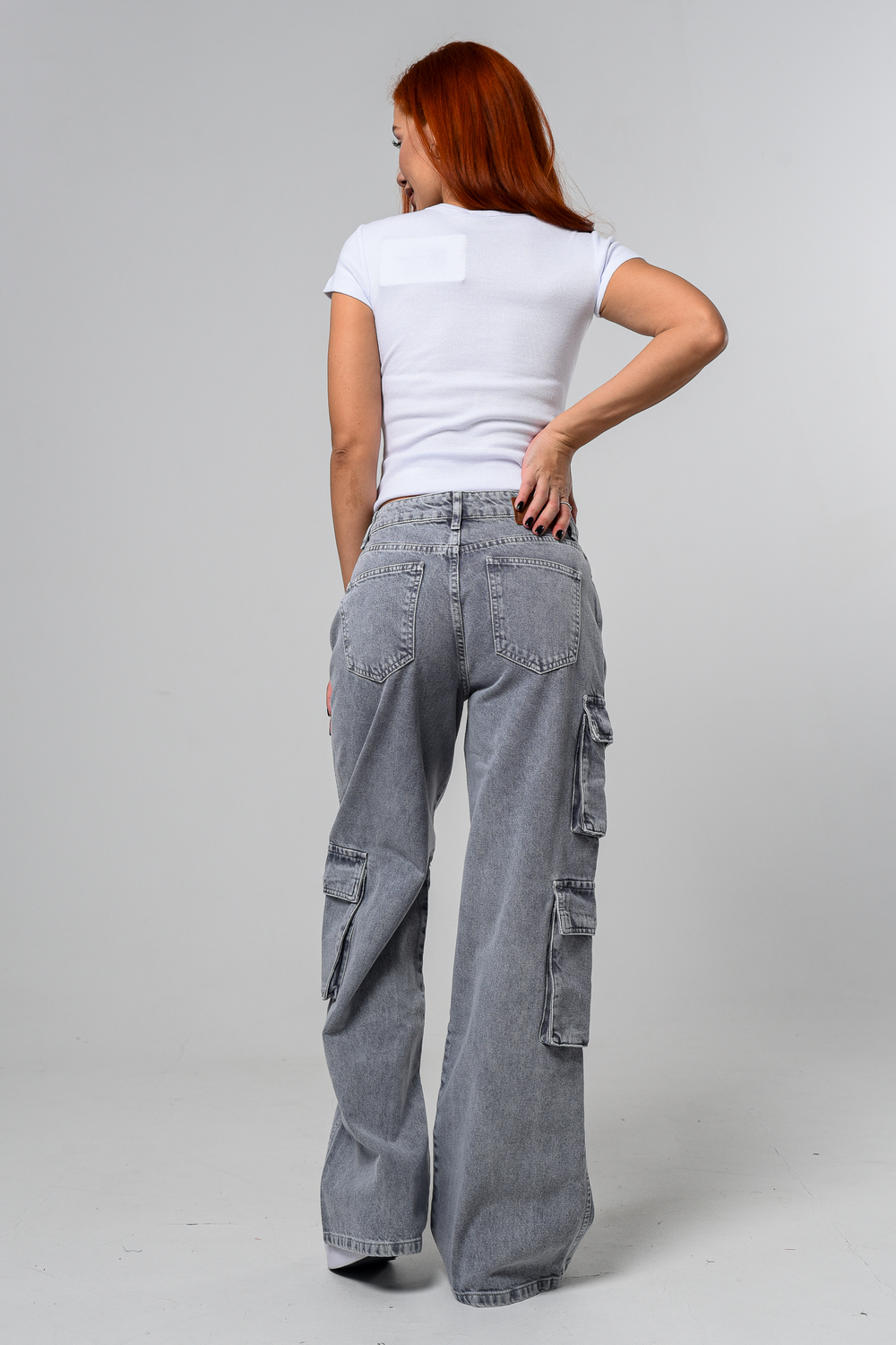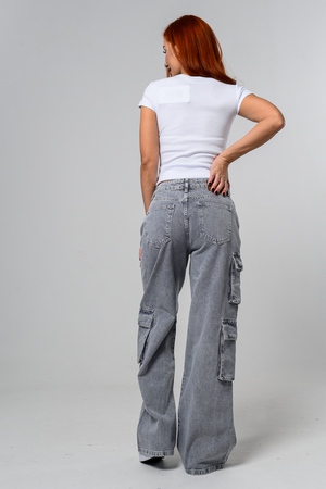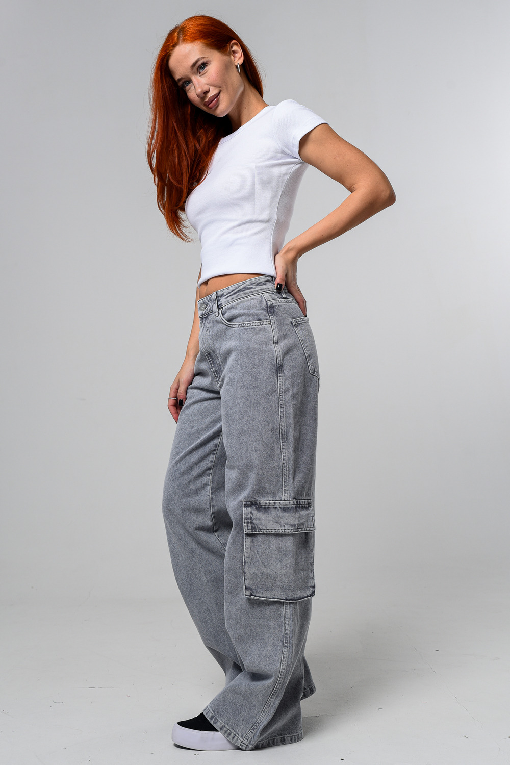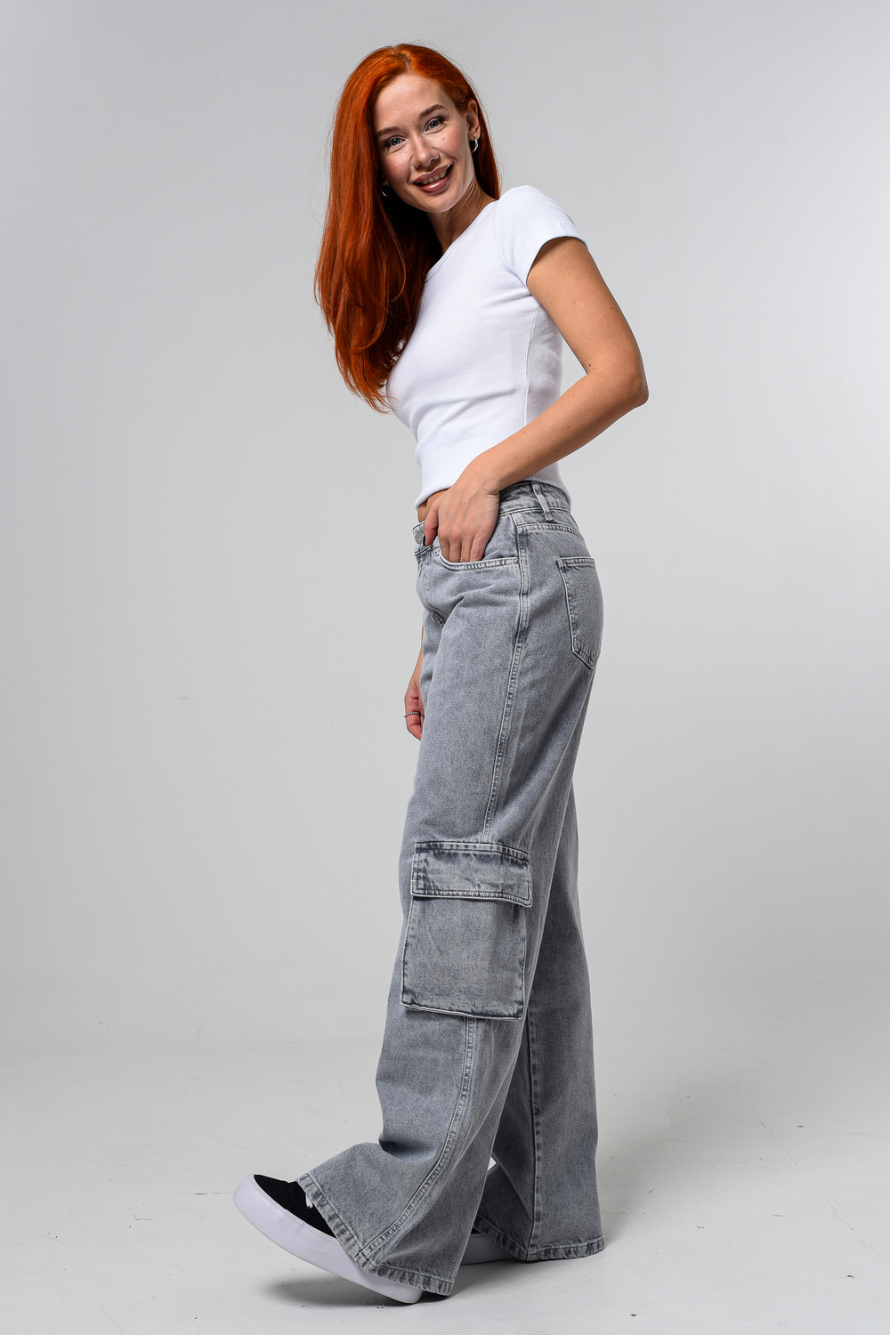 Джинсы женские серые с эффектными карманами. 100% хлопок, приятные к телу, удобные.
