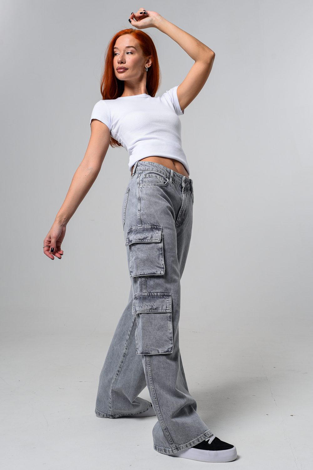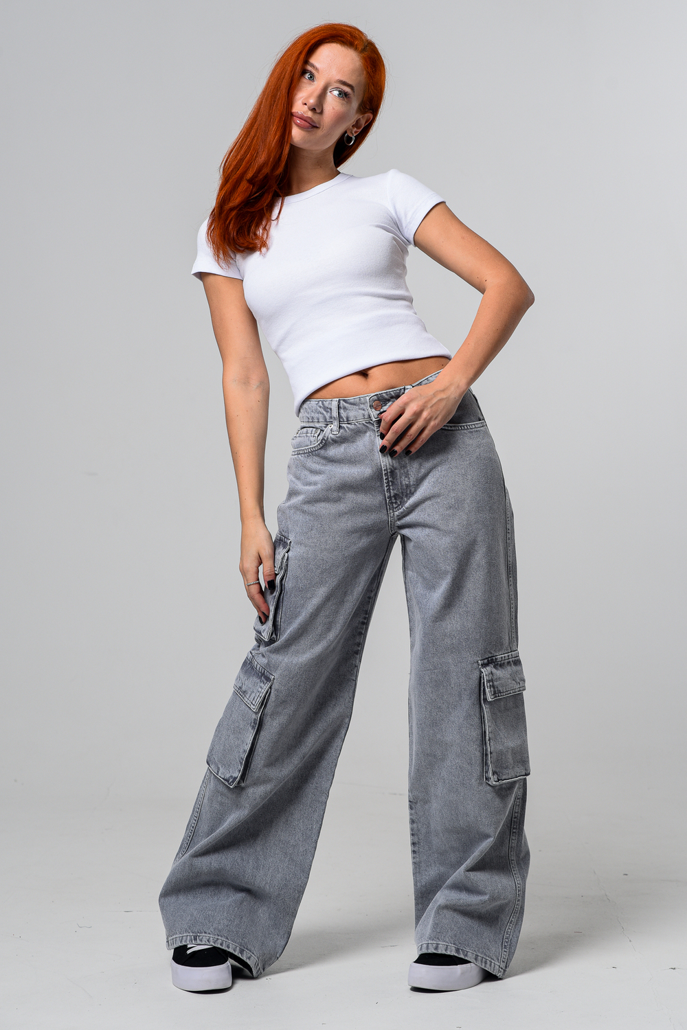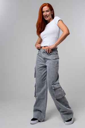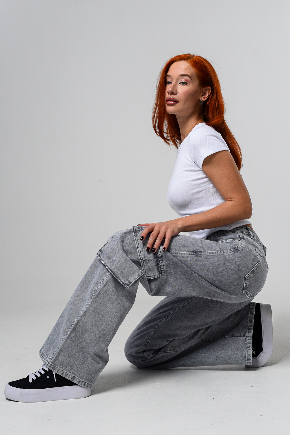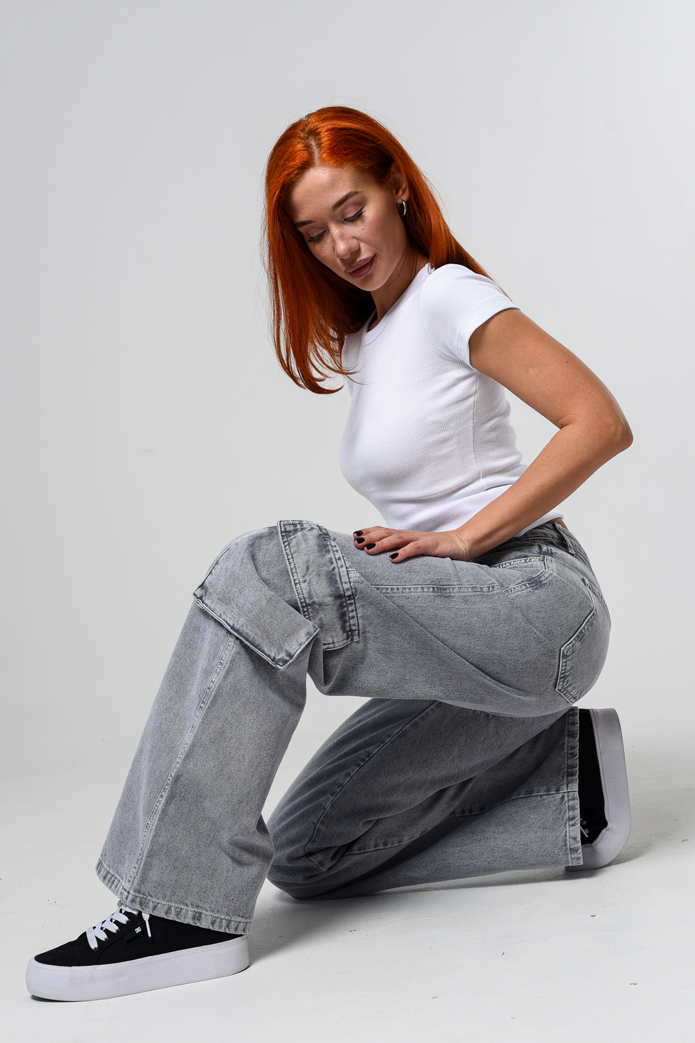 Джинсы женские серые с эффектными карманами. 100% хлопок, приятные к телу, удобные.