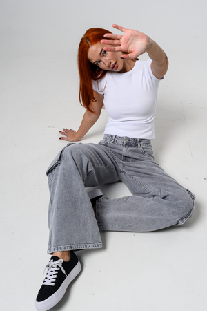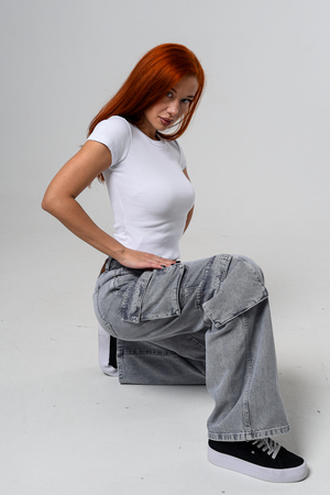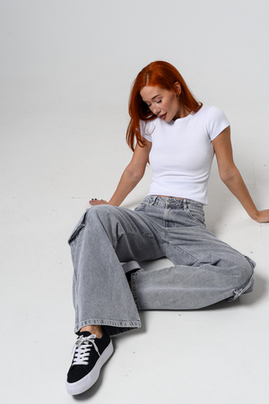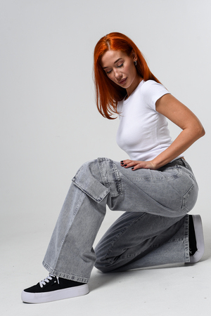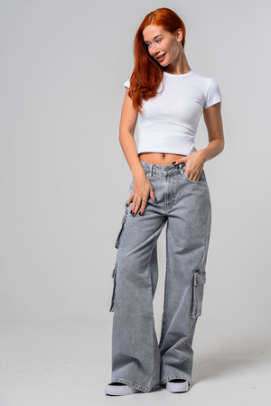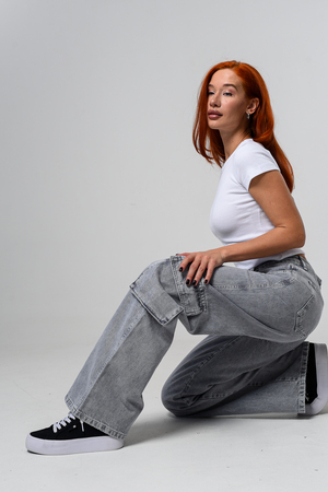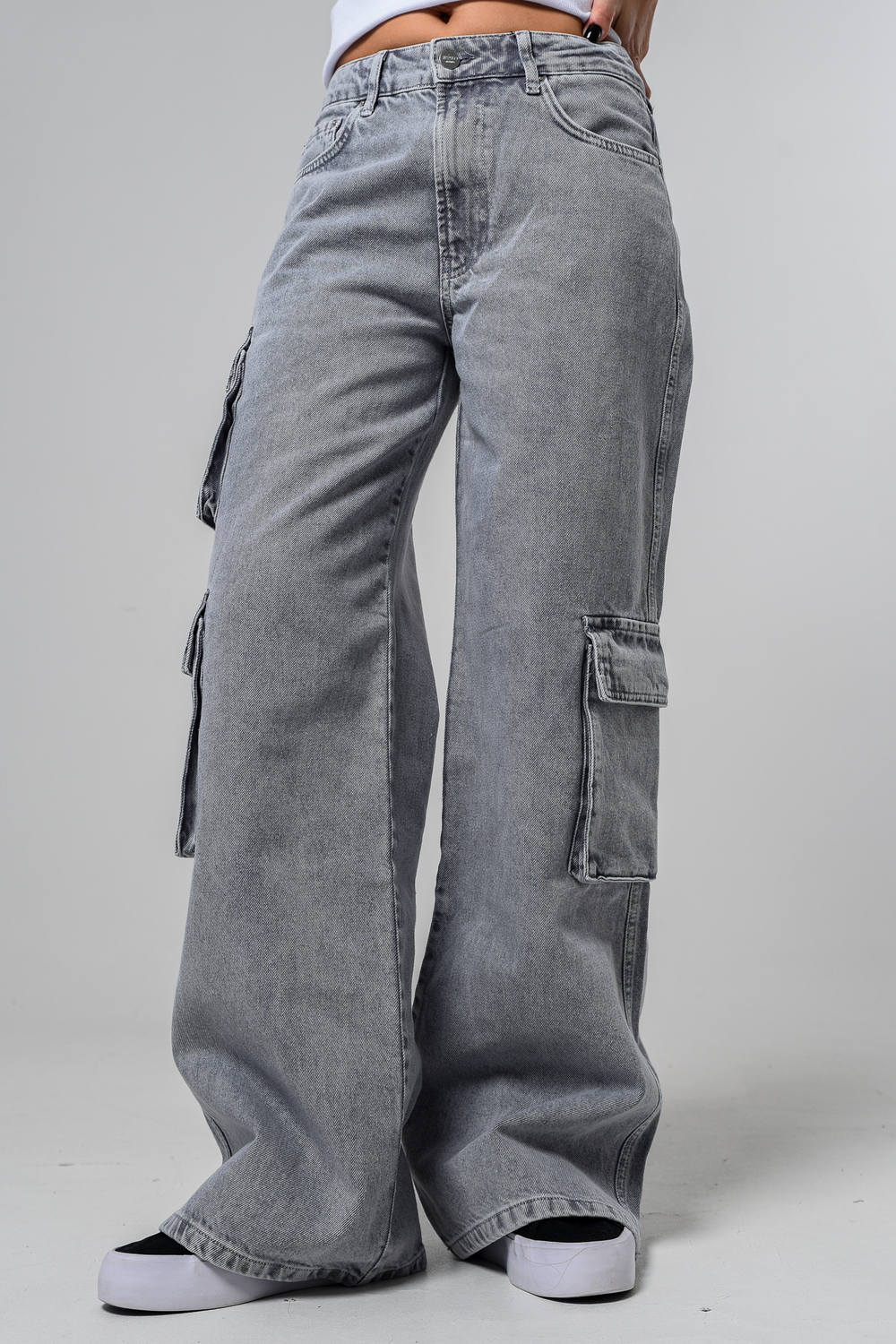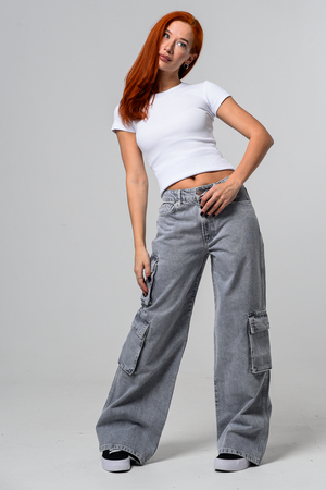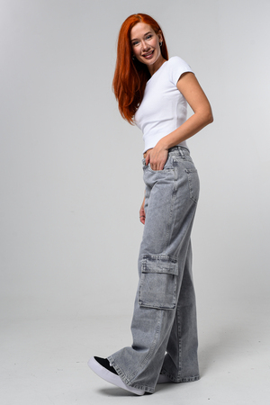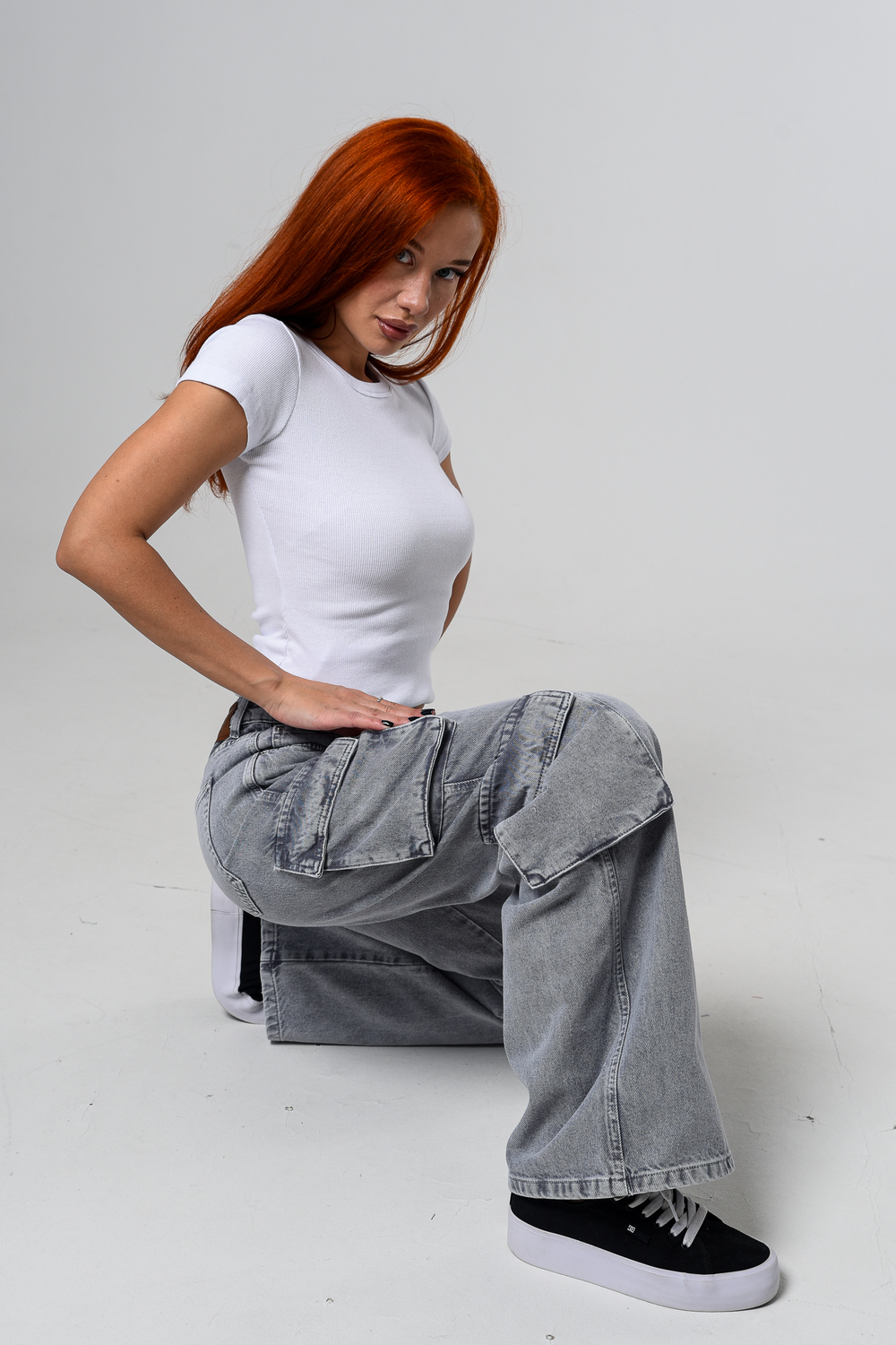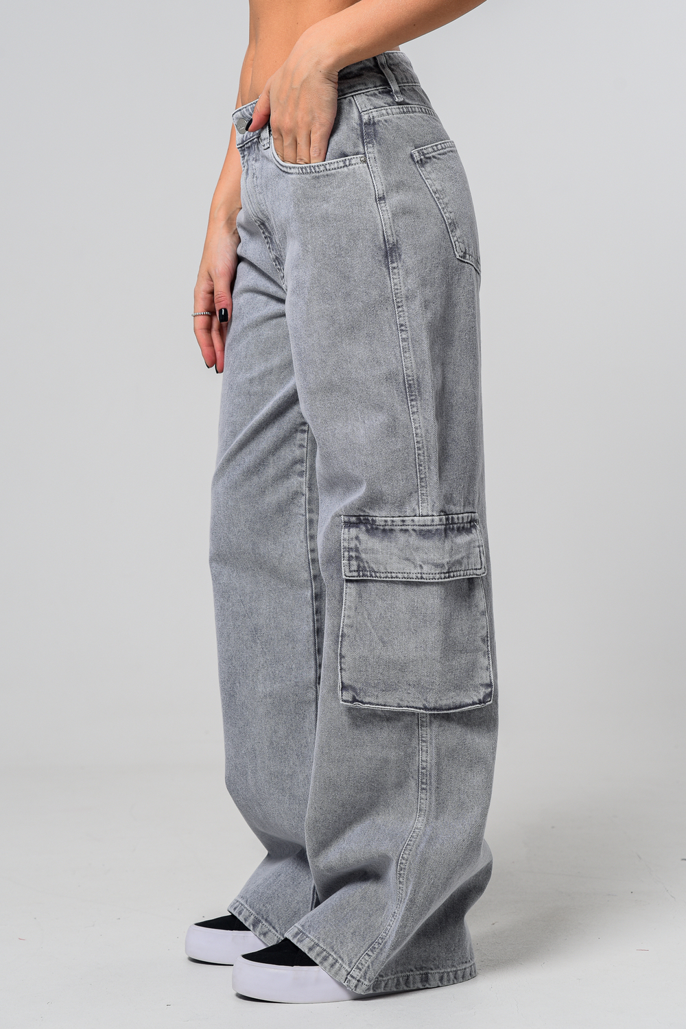 Джинсы женские серые с эффектными карманами. 100% хлопок, приятные к телу, удобные.