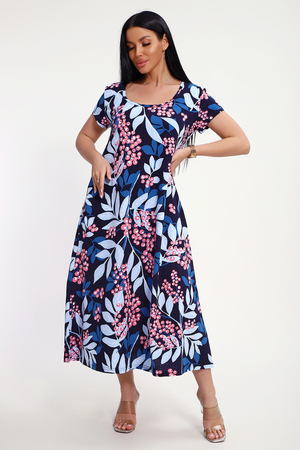 Свободный покрой создает комфортную атмосферу даже в жару. Легкая кулирная гладь обеспечивает мягкость и дышащую поверхность, идеально подходящую для повседневных прогулок. Яркие оттенки — синий, голубой, розовый. Продуманная детализация: классический фасон подчеркивает стройность фигуры. Длина - полноценное миди, подол расклешен, рукава втачные короткие, имеются боковые карманы.