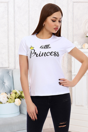 Футболка женская с коротким втачным рукавом, горловина круглой формы, на детали переда печать.