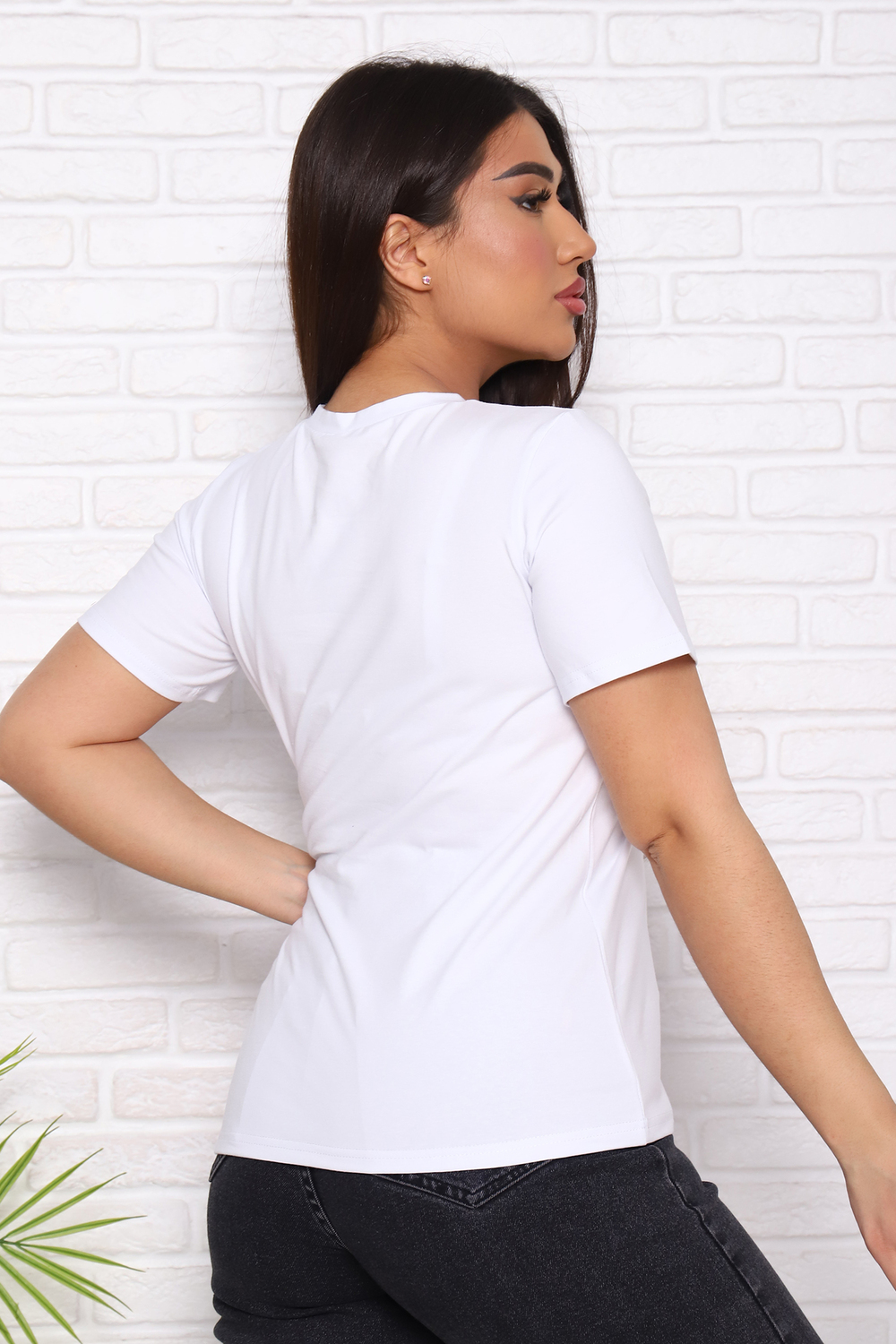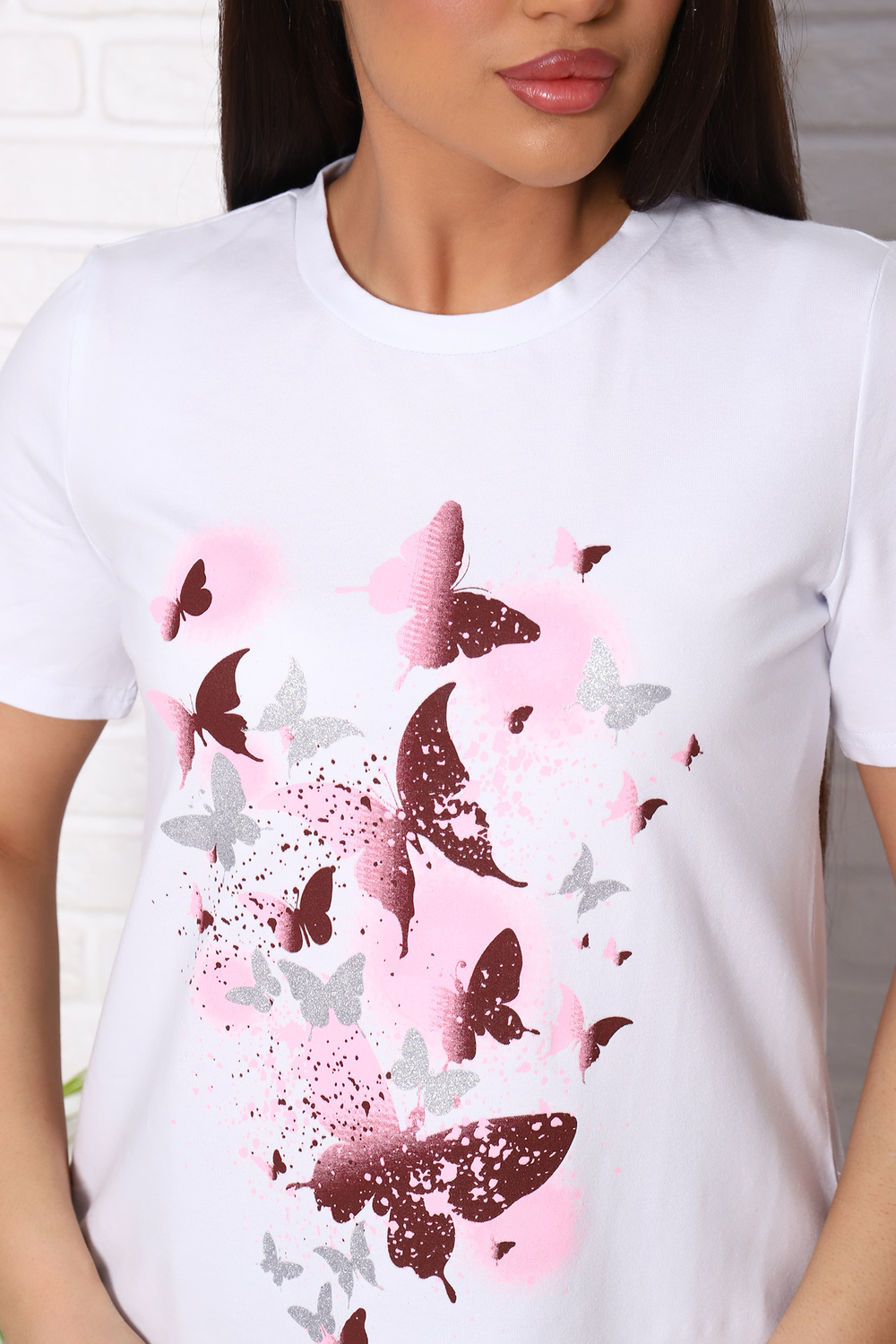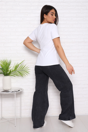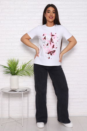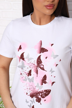 Футболка женская с коротким втачным рукавом, горловина круглой формы.