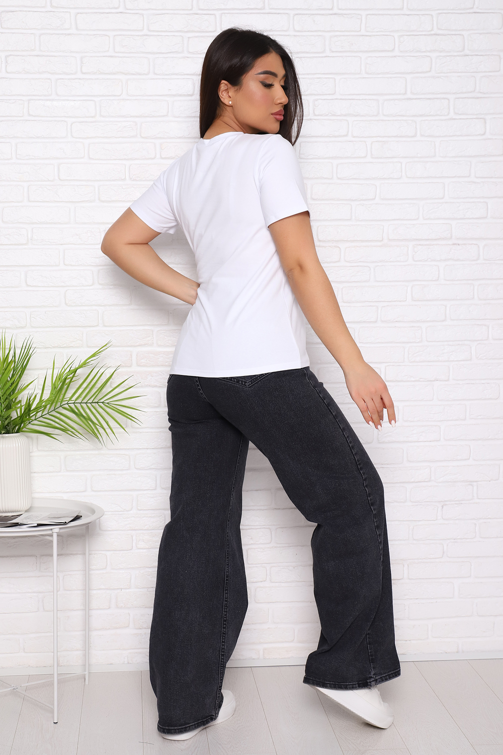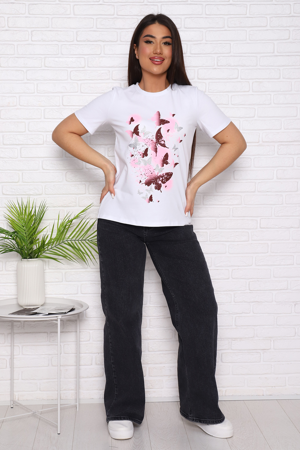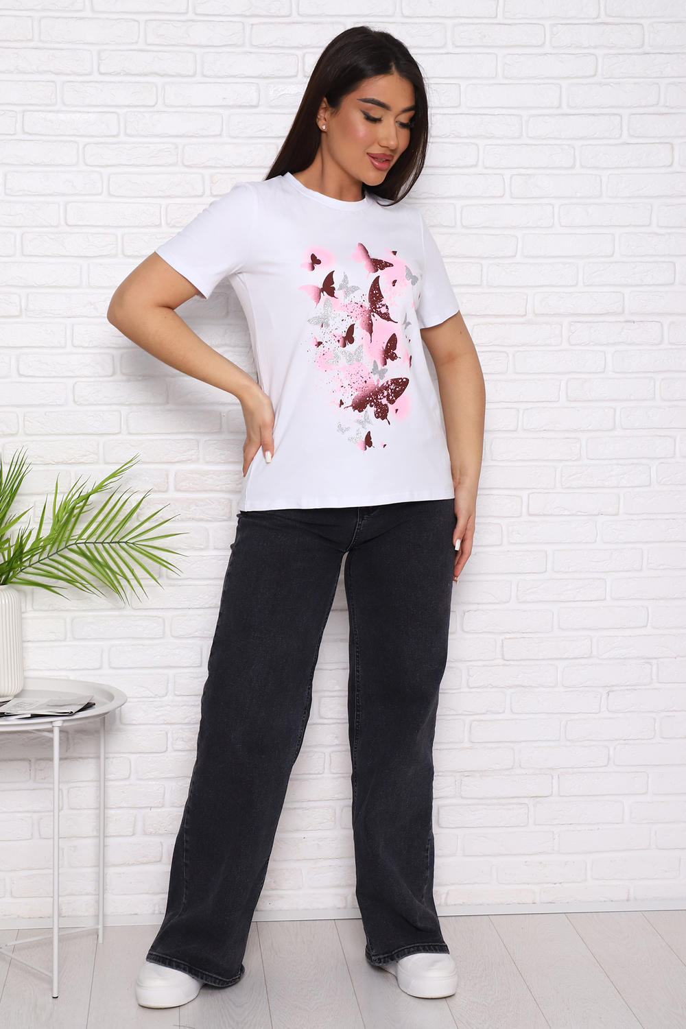 Футболка женская с коротким втачным рукавом, горловина круглой формы.