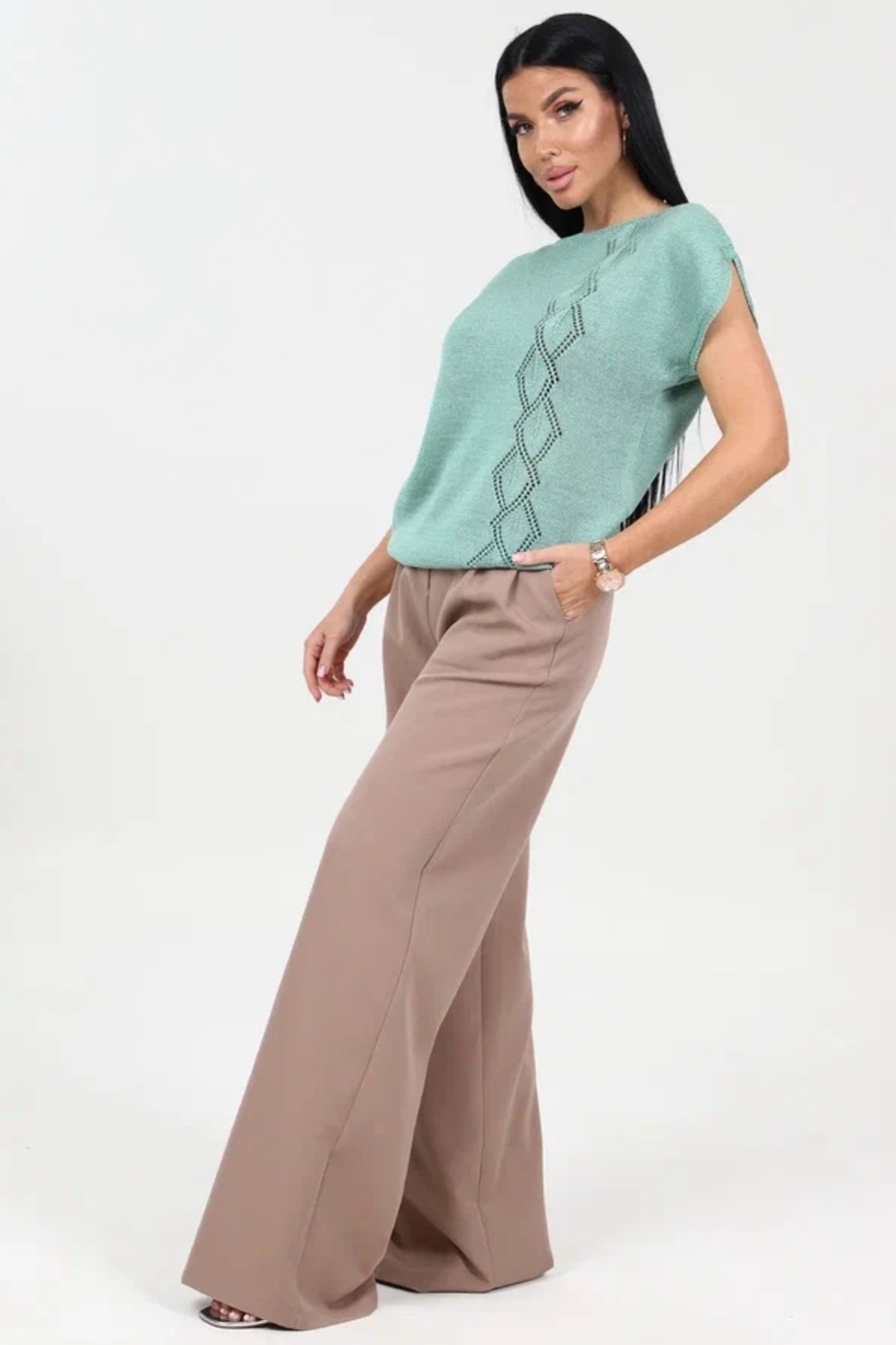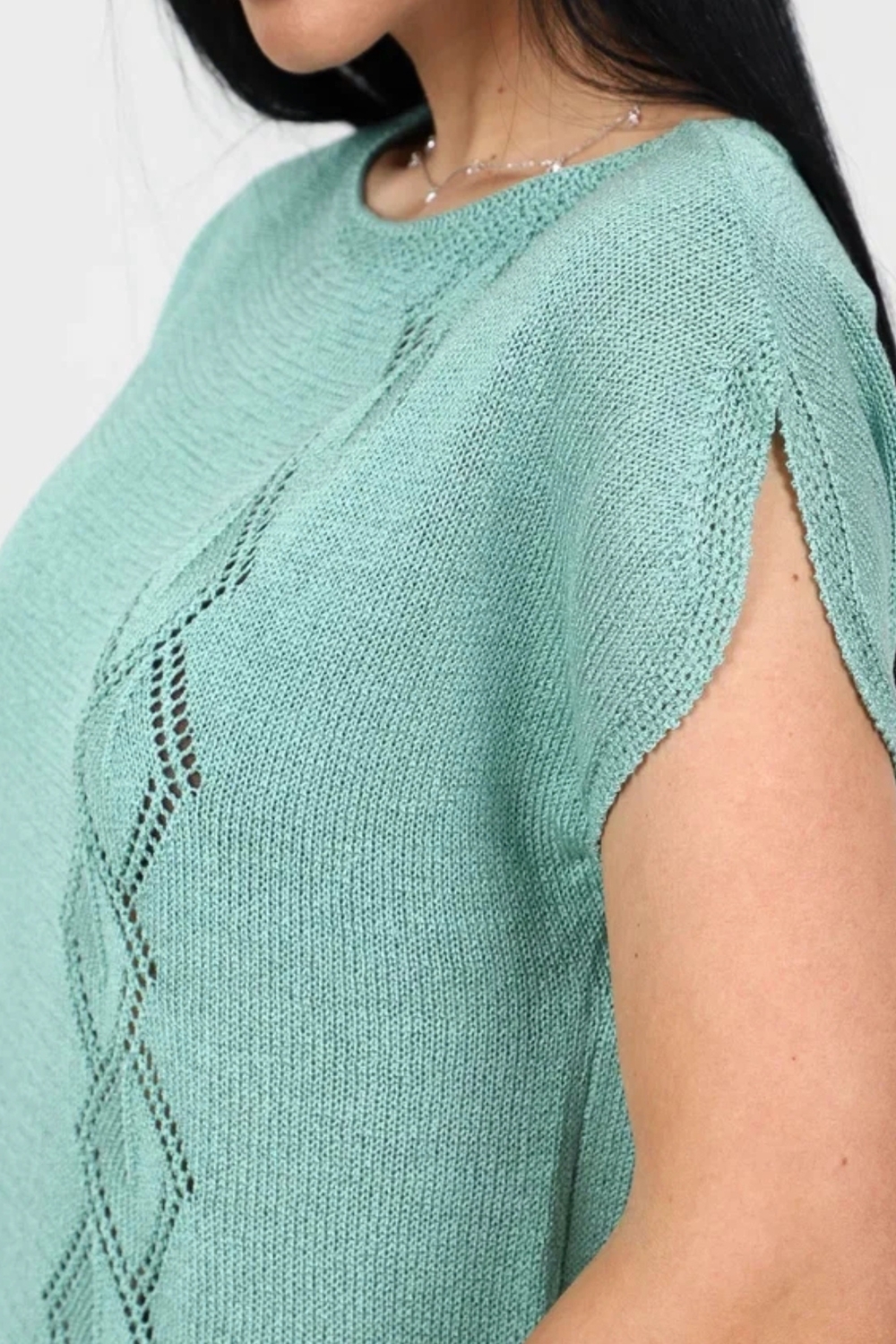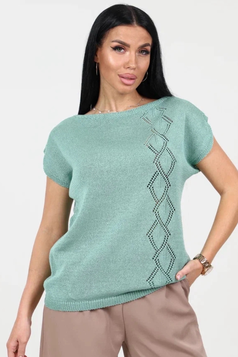 Футболка летняя вязаная - настоящая находка для ценителей стильных и комфортных вещей. Ее ажурная отделка придает изысканный вид, добавляя немного ретро-стиля в ваш образ. Модный дизайн делает базовую футболку универсальной для любого случая - будь то вечерние прогулки или праздничные мероприятия. Нарядная футболка с приталенной посадкой замечательно впишется в образ любой модницы. Однотонная футболка с вырезом лодочка станет замечательным подарком на любой праздник. Большие размеры и удобный свободный крой делают эту оверсайз футболку идеальным выбором как для беременных, так и для высоких и невысоких женщин. Классическая футболка с длинной посадкой и авторским рисунком в виде ромбов подойдет для офиса, школы и для домашнего отдыха. Она подходит для девушек и женщин всех возрастов.