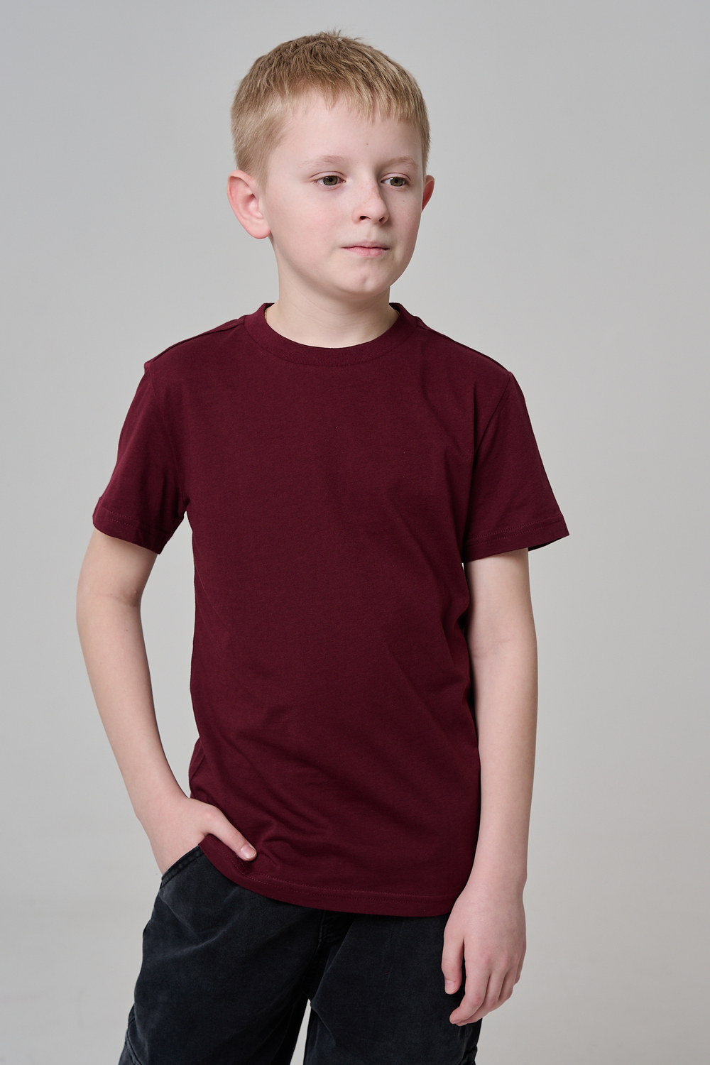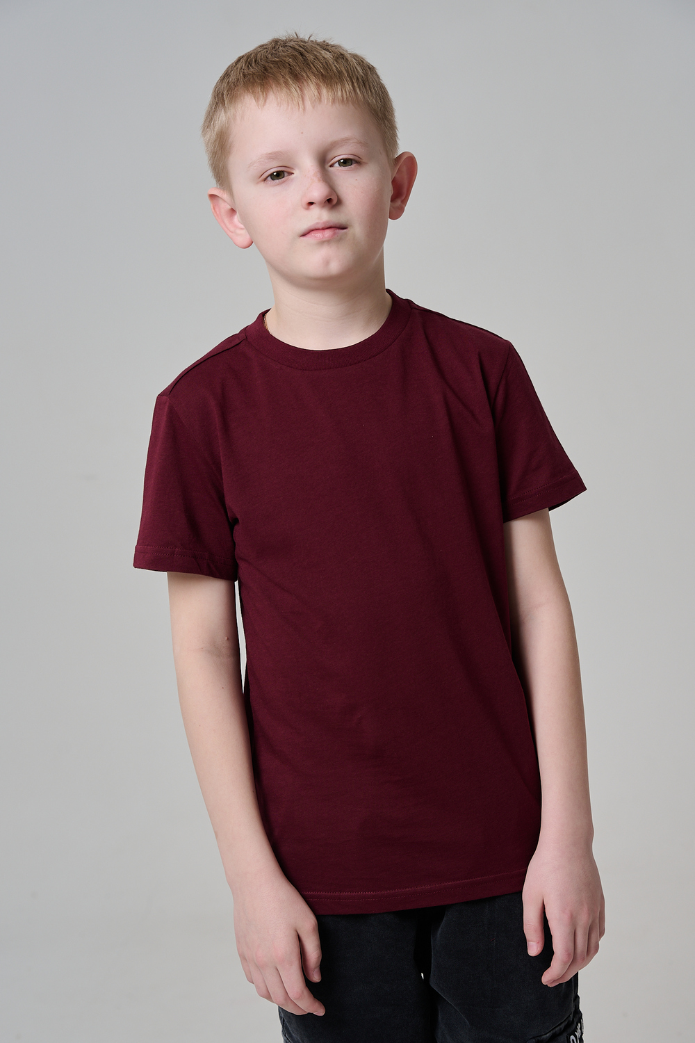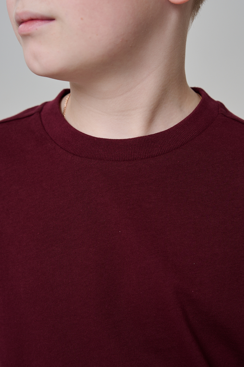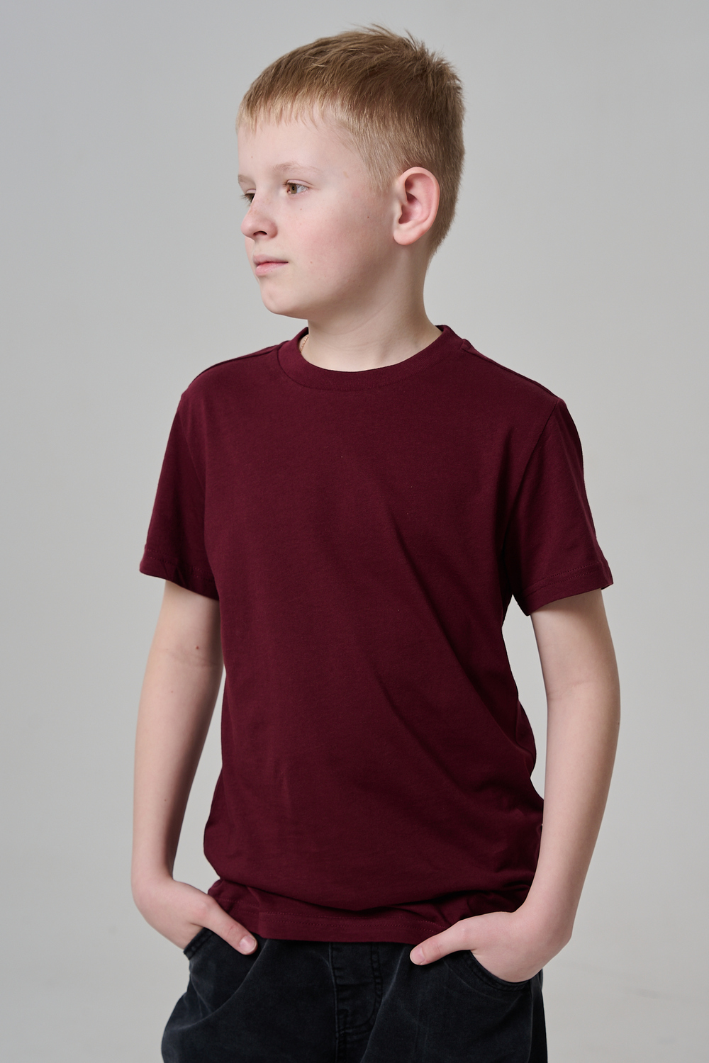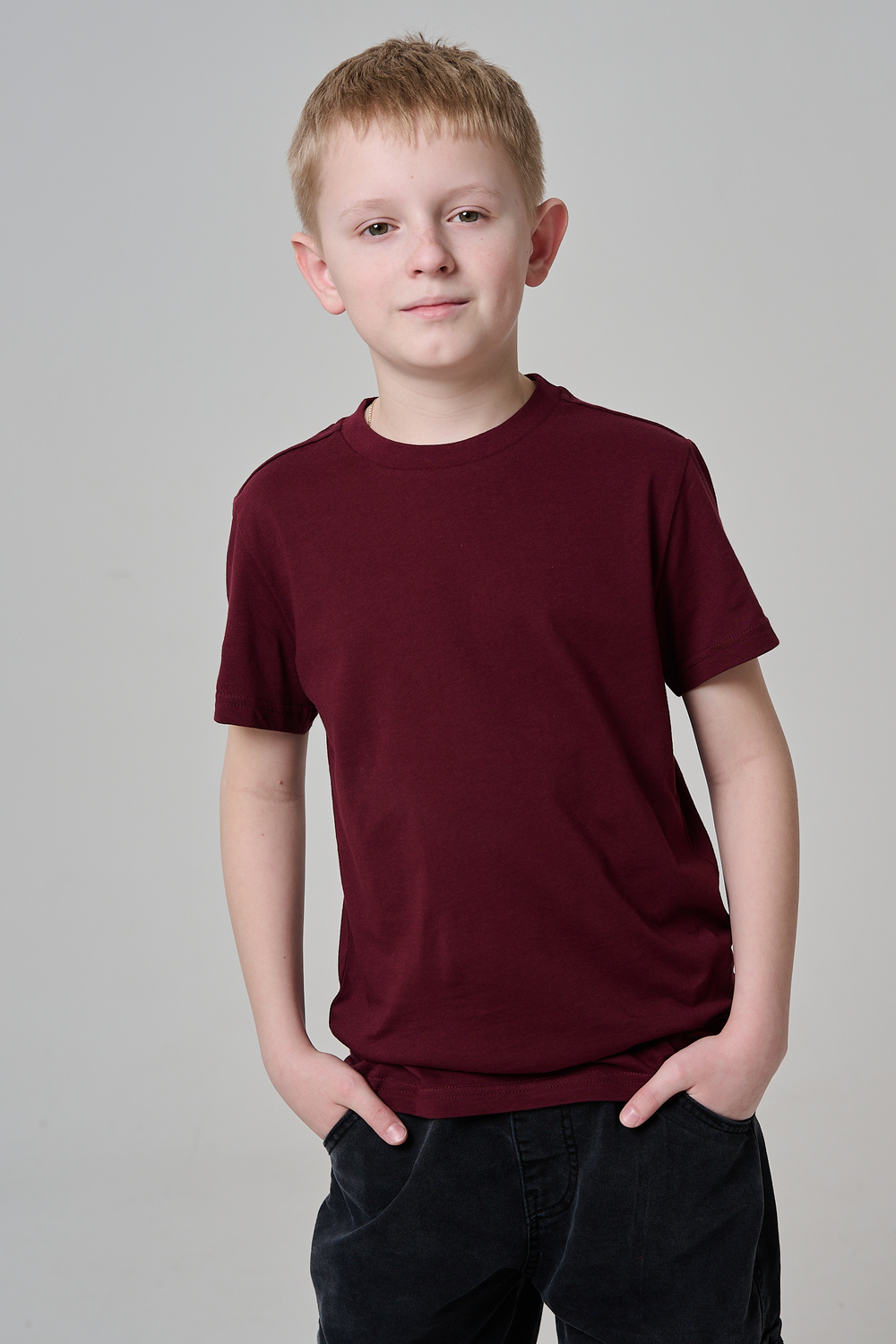 Футболка для мальчика в бордовом цвете. Прямой крой, приятный и дышащий материал. Хлопок 100%
