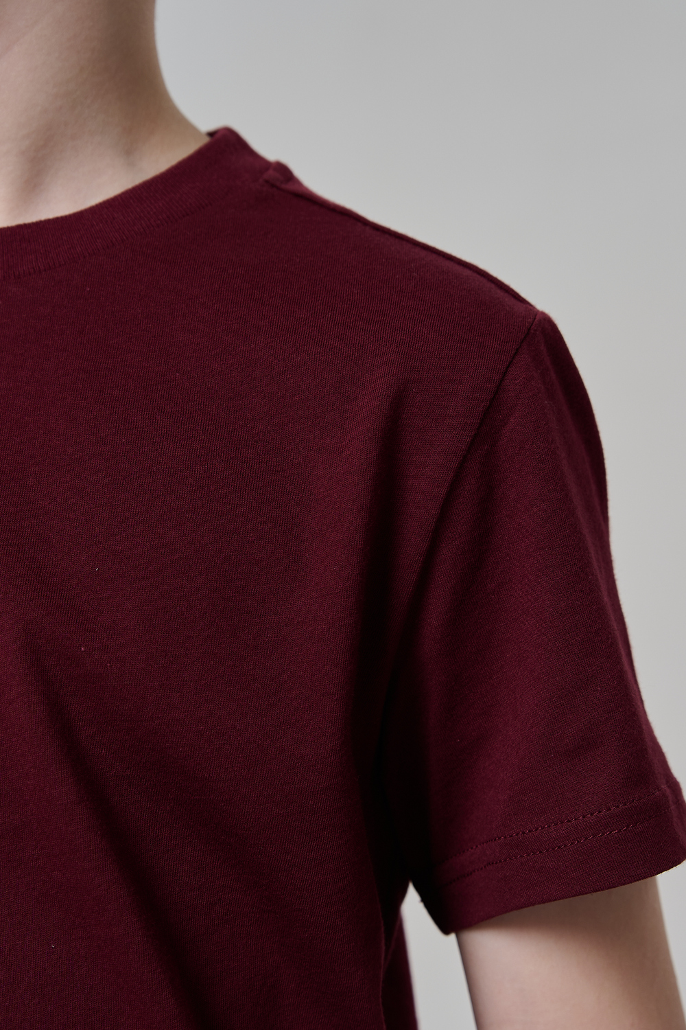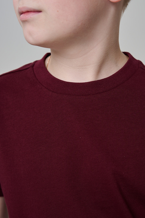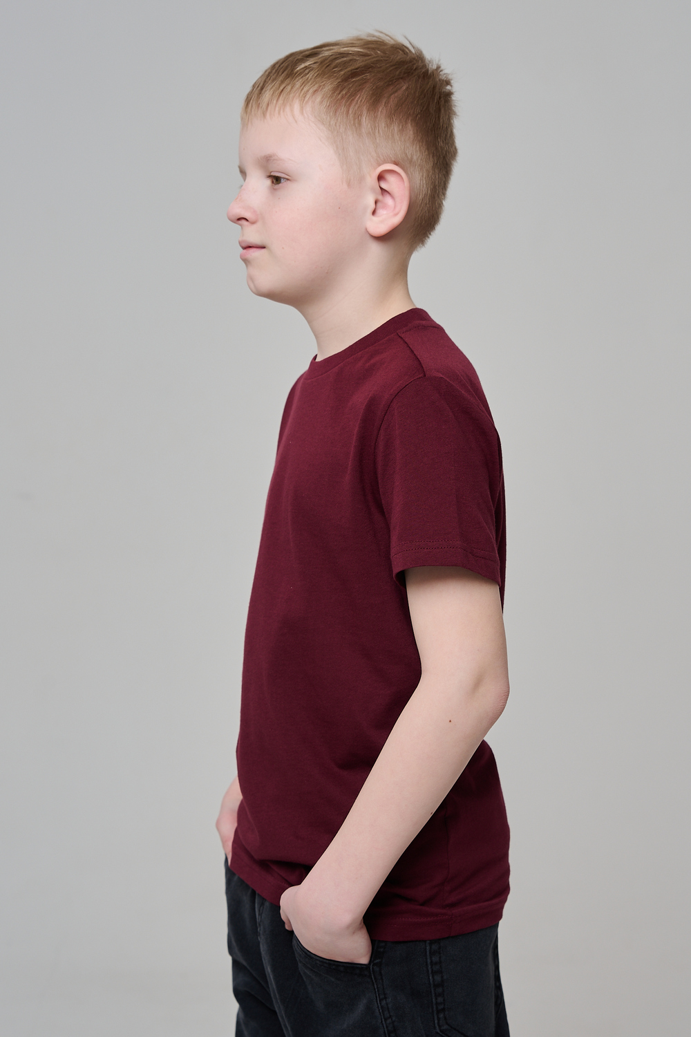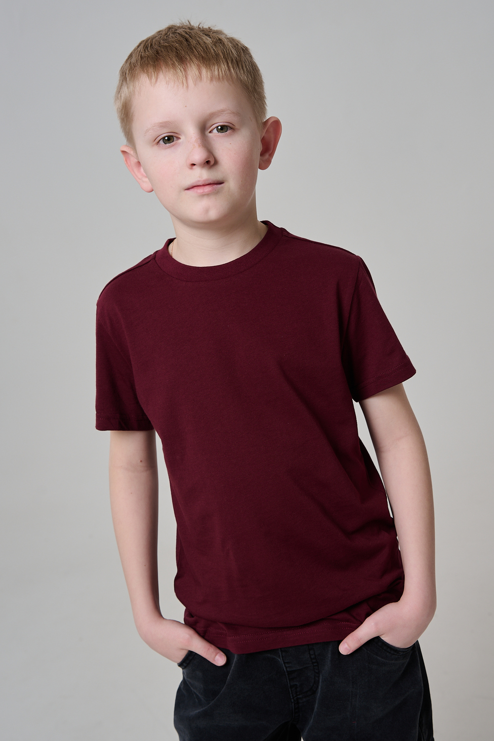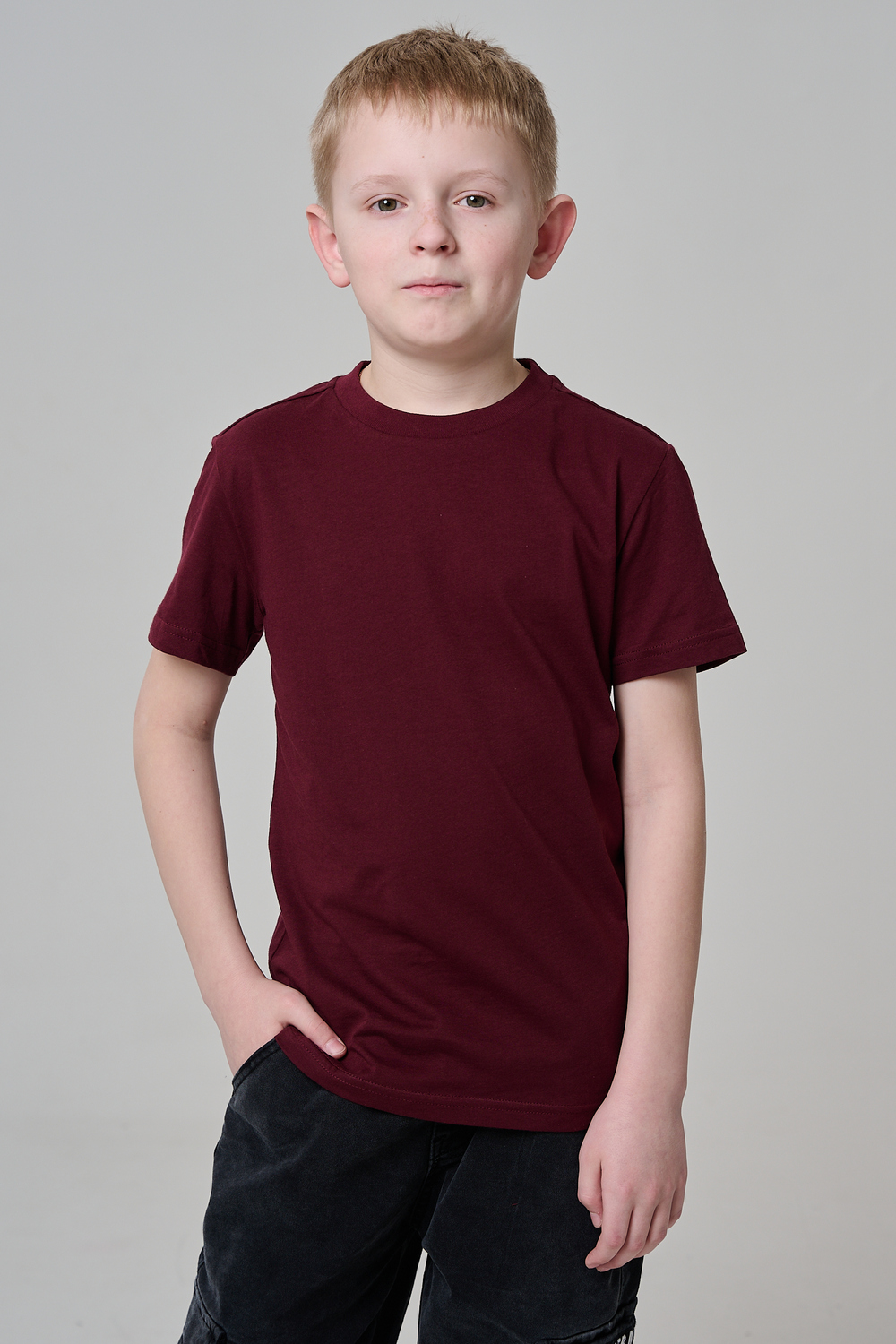 Футболка для мальчика в бордовом цвете. Прямой крой, приятный и дышащий материал. Хлопок 100%